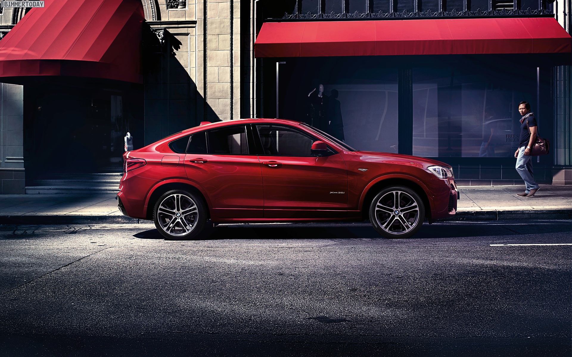 Wie schon auf den offiziellen Launch-Fotos sehen wir den X4 auch auf den Wallpaper-Motiven mit M Paket in Melbourne Rot, zumindest auf einem Bild sehen wir an der Seite der besonders sportlichen X4-Interpretation aber auch die alternative Ausstattungslinie xLine, die eher den SUV-Charakter betont: