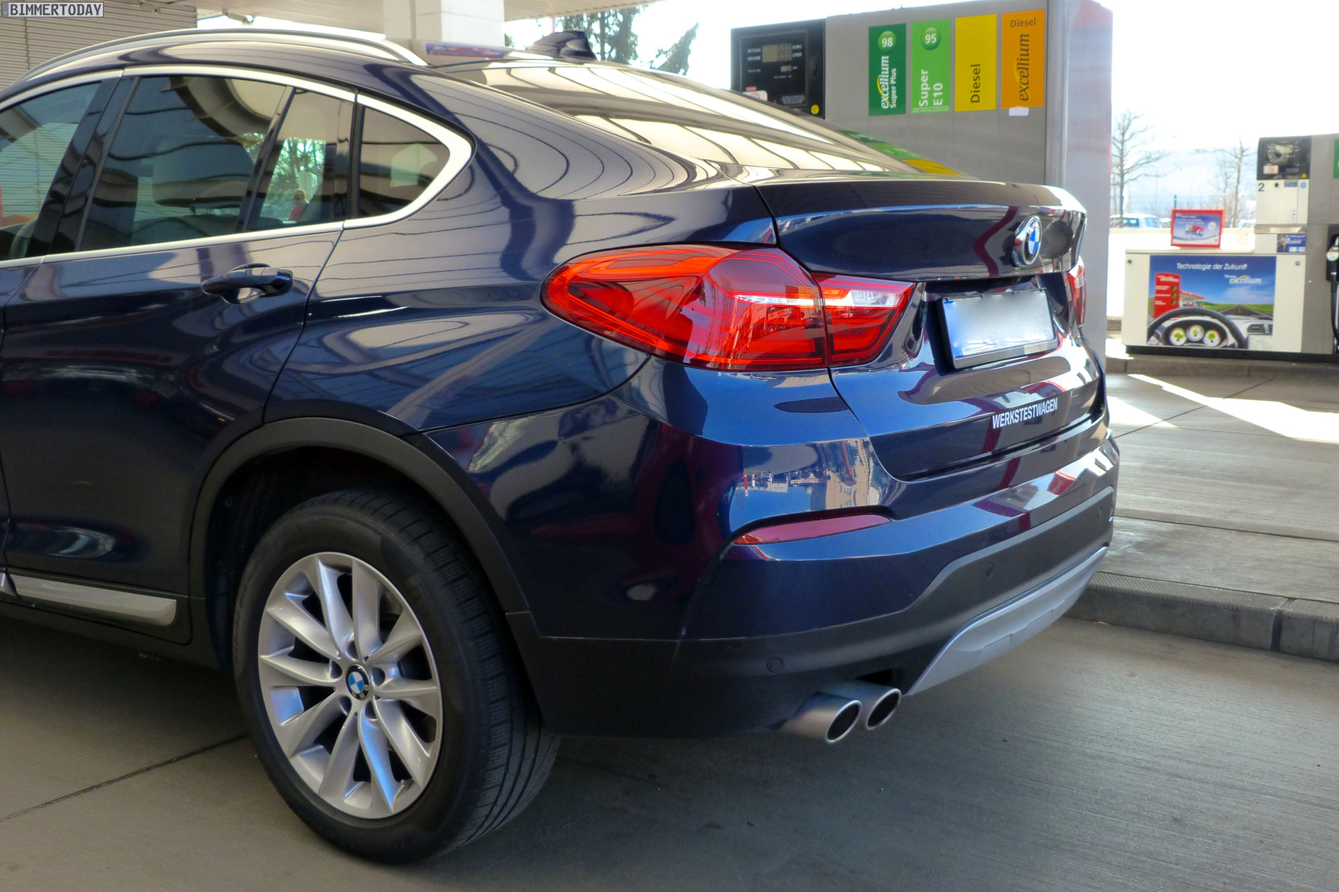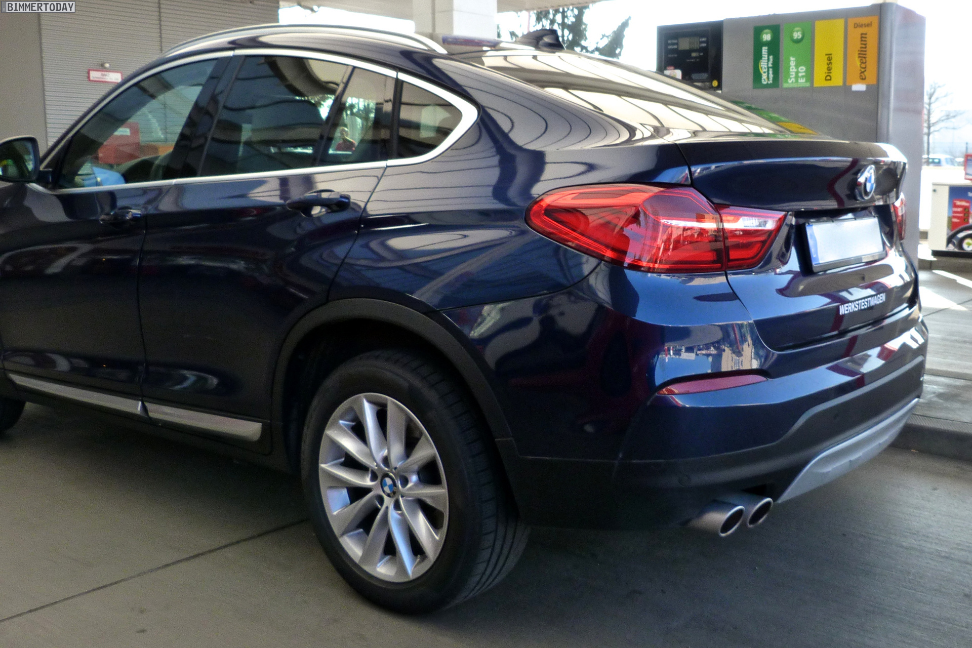 Nicht besonders gut eingrenzen lässt sich die Motorisierung des gezeigten Fahrzeugs, denn das Doppel-Endrohr auf der linken Seite kommt bei zahlreichen X4-Varianten zum Einsatz: Sowohl die zwei stärksten Benziner xDrive28i und xDrive35i als auch die beiden Sechszylinder-Diesel xDrive30d und xDrive35d tragen die gezeigte Konfiguration.