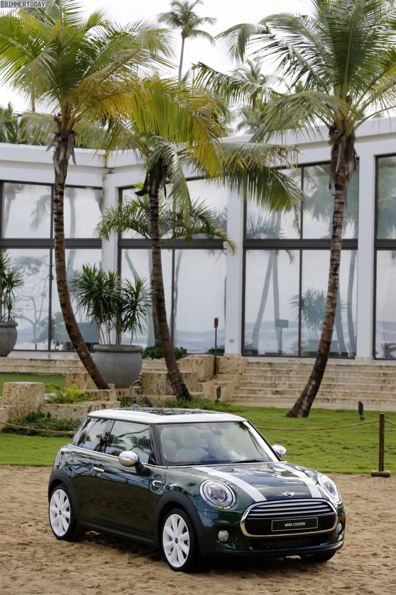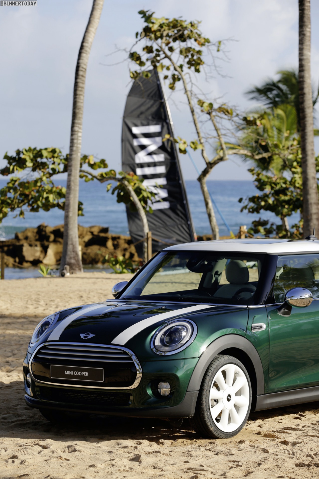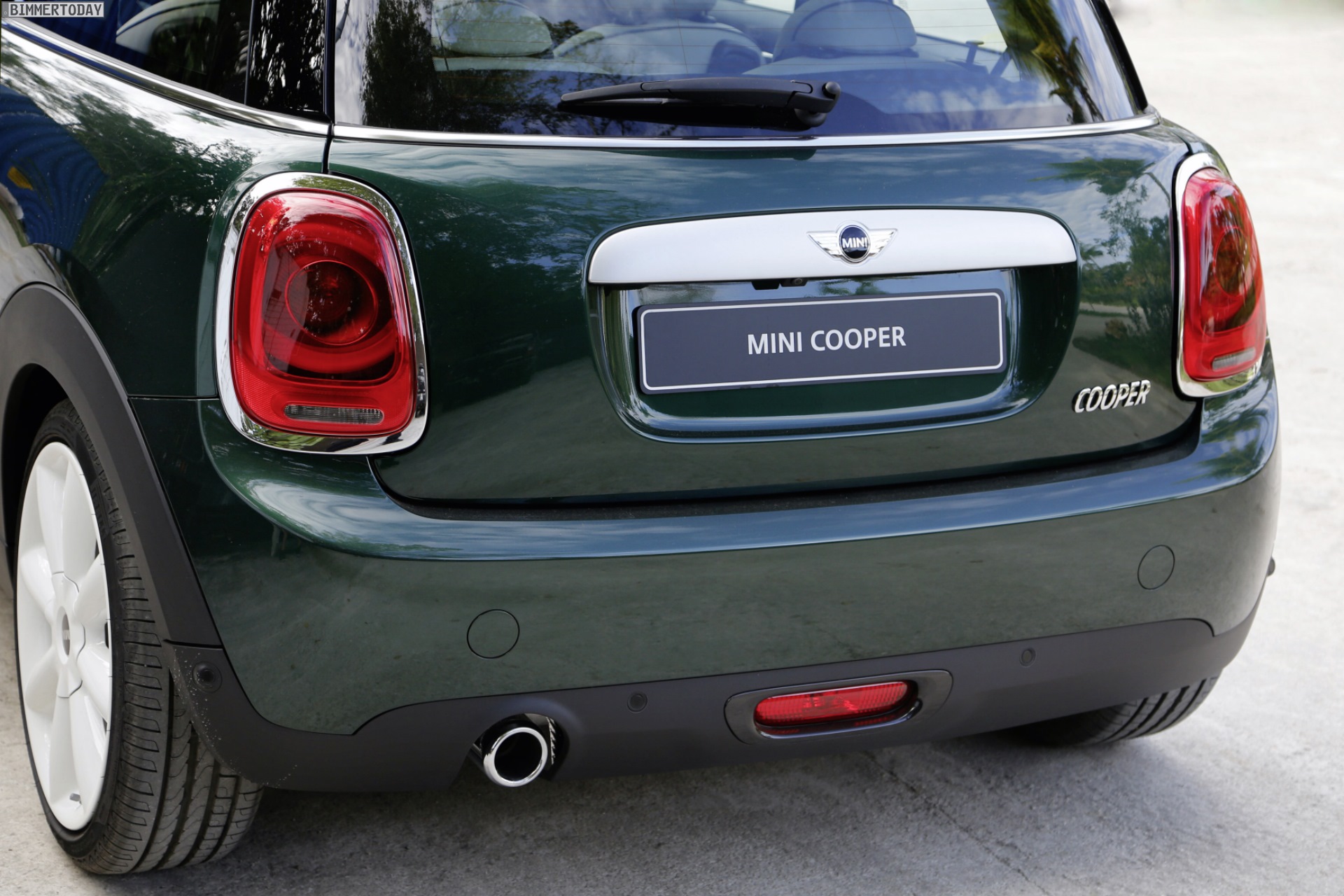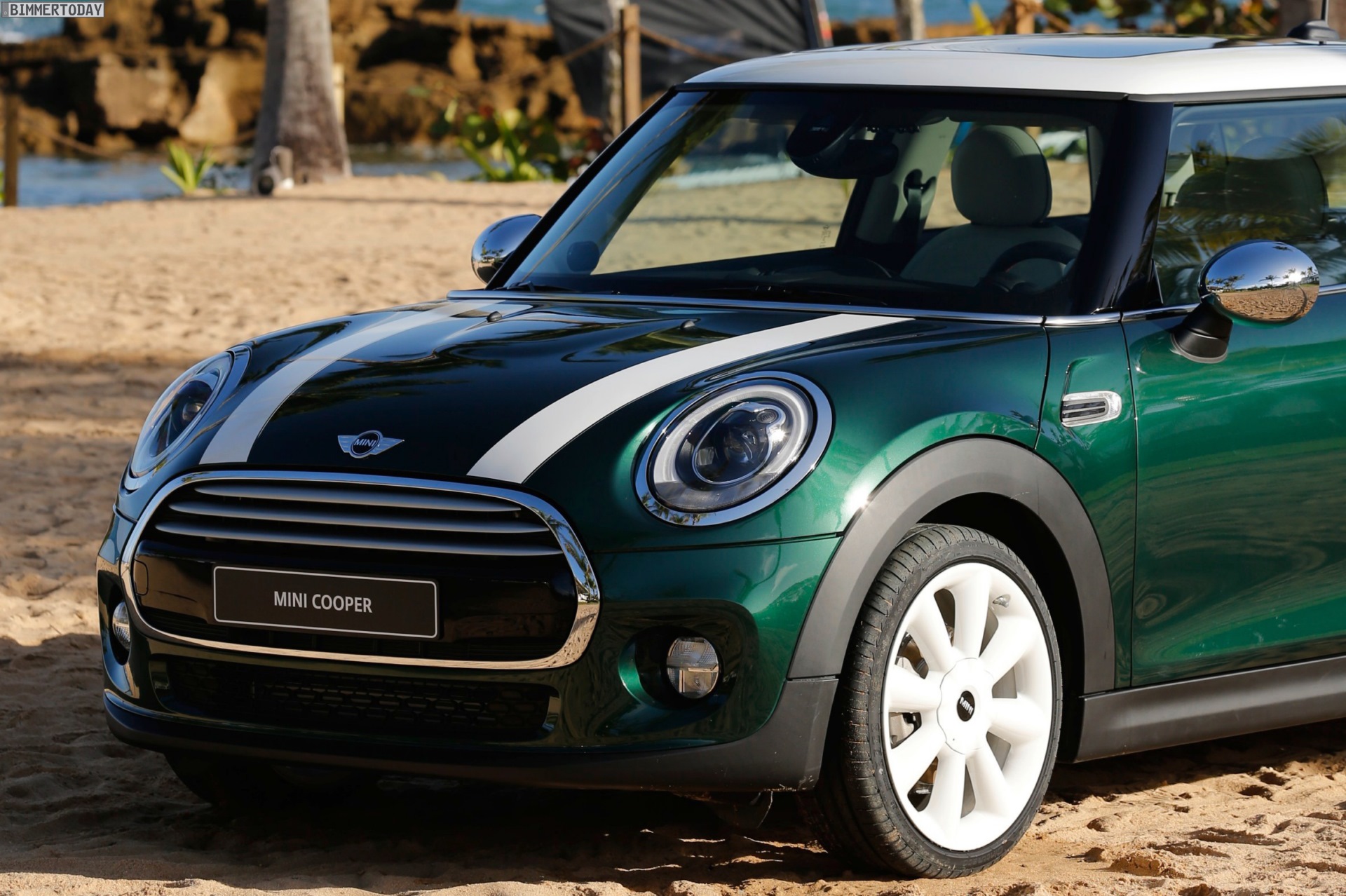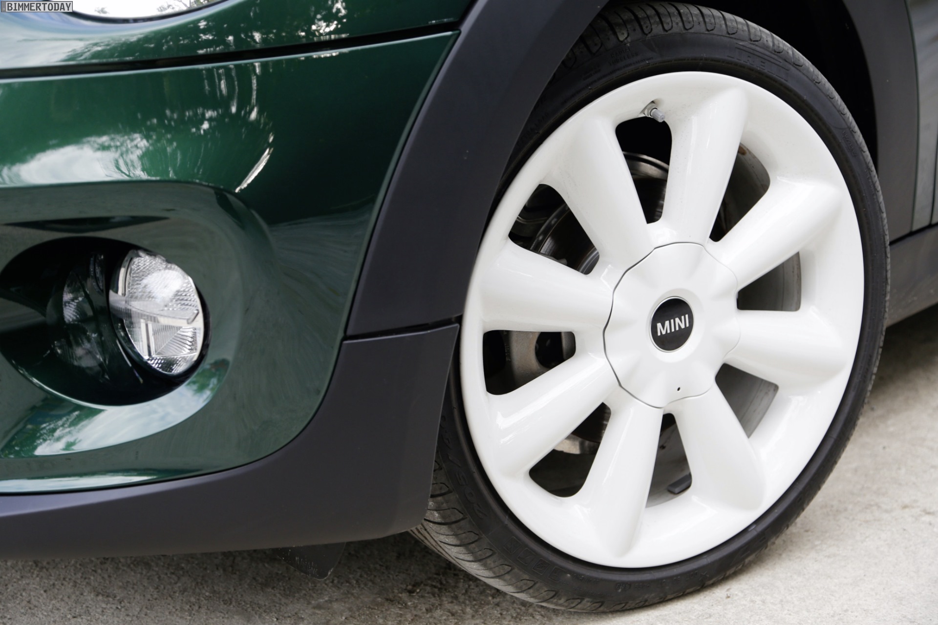 MINI F56 in British Racing Green mit Dach und Felgen in Weiß: