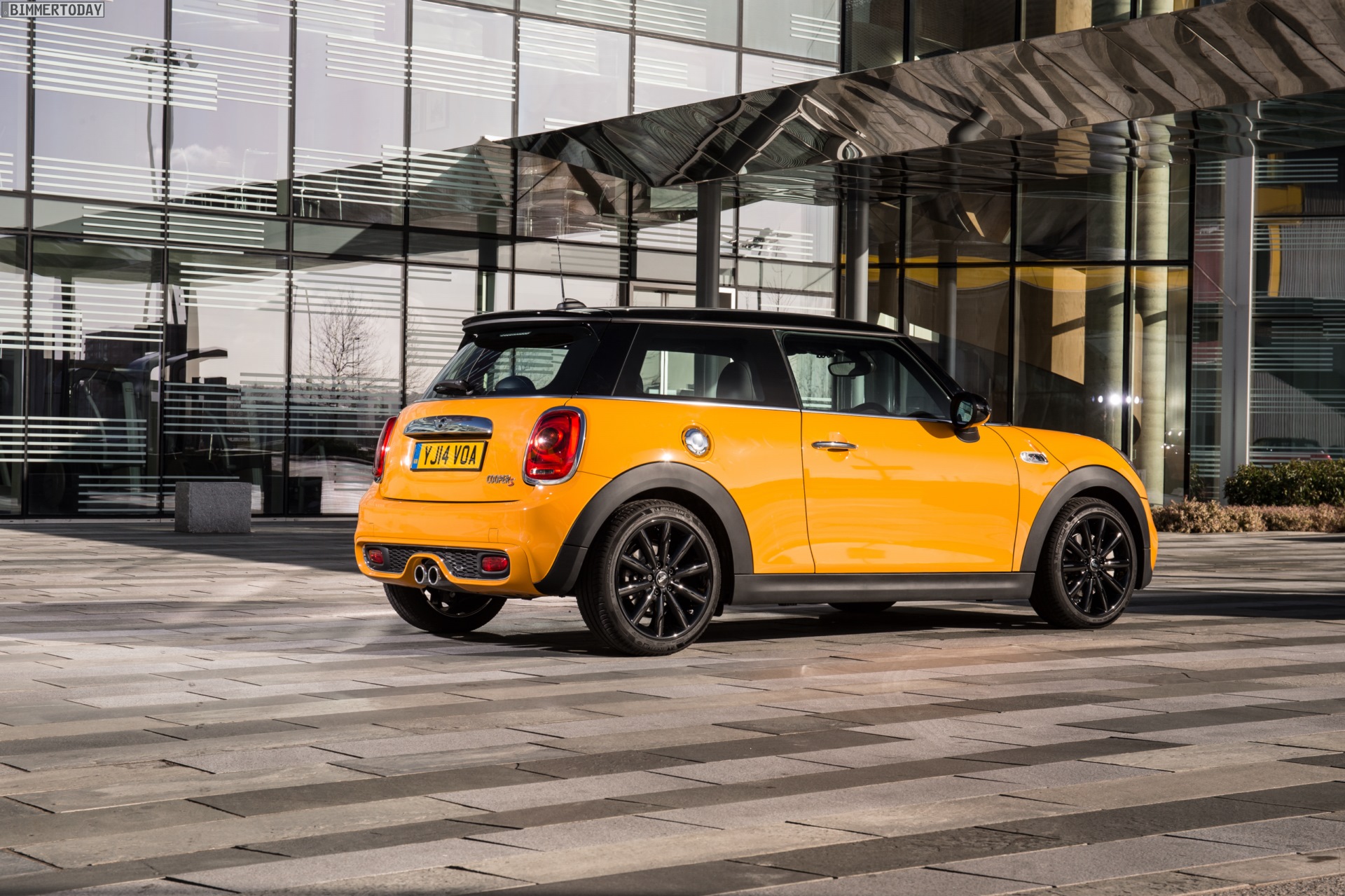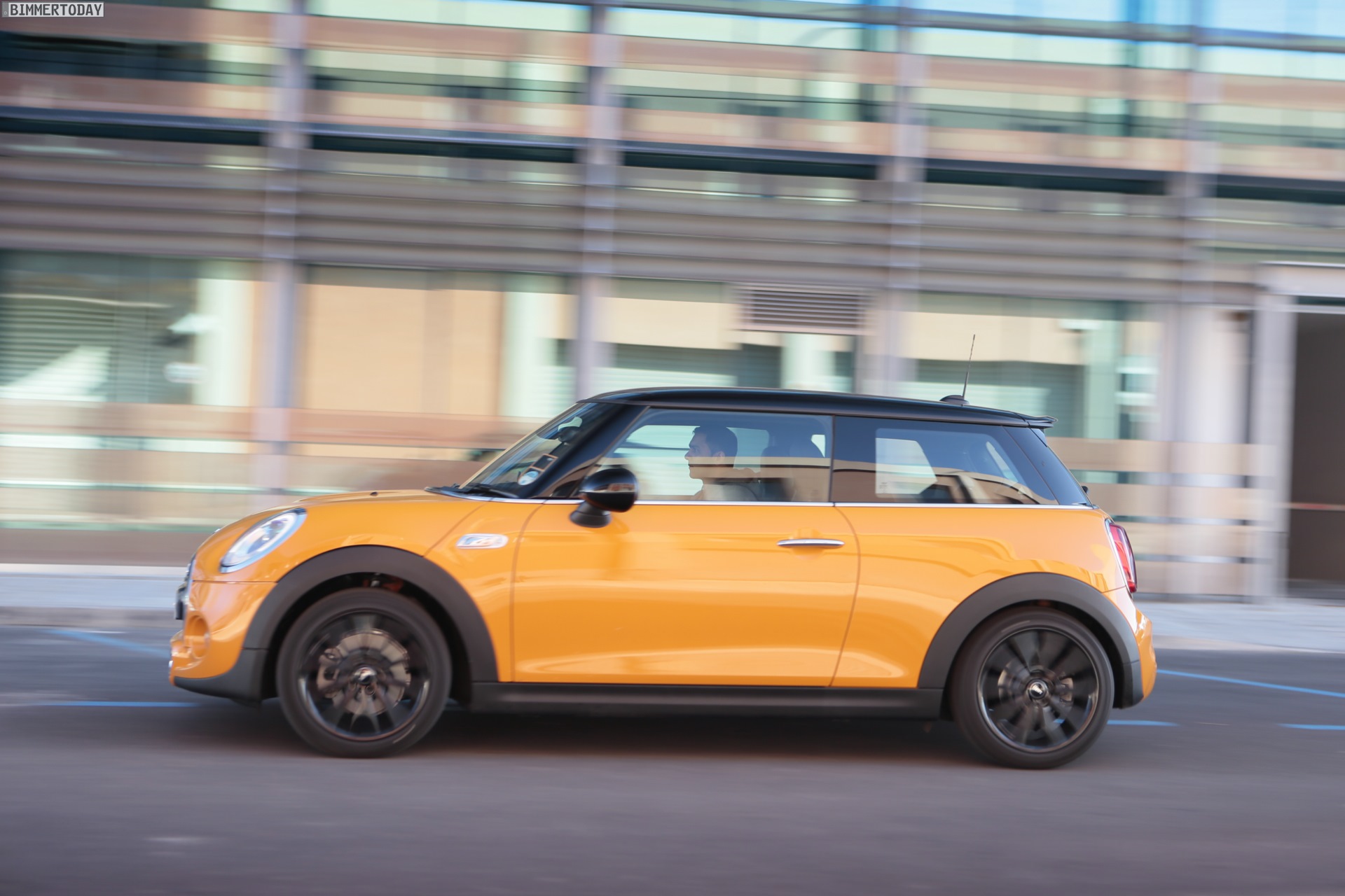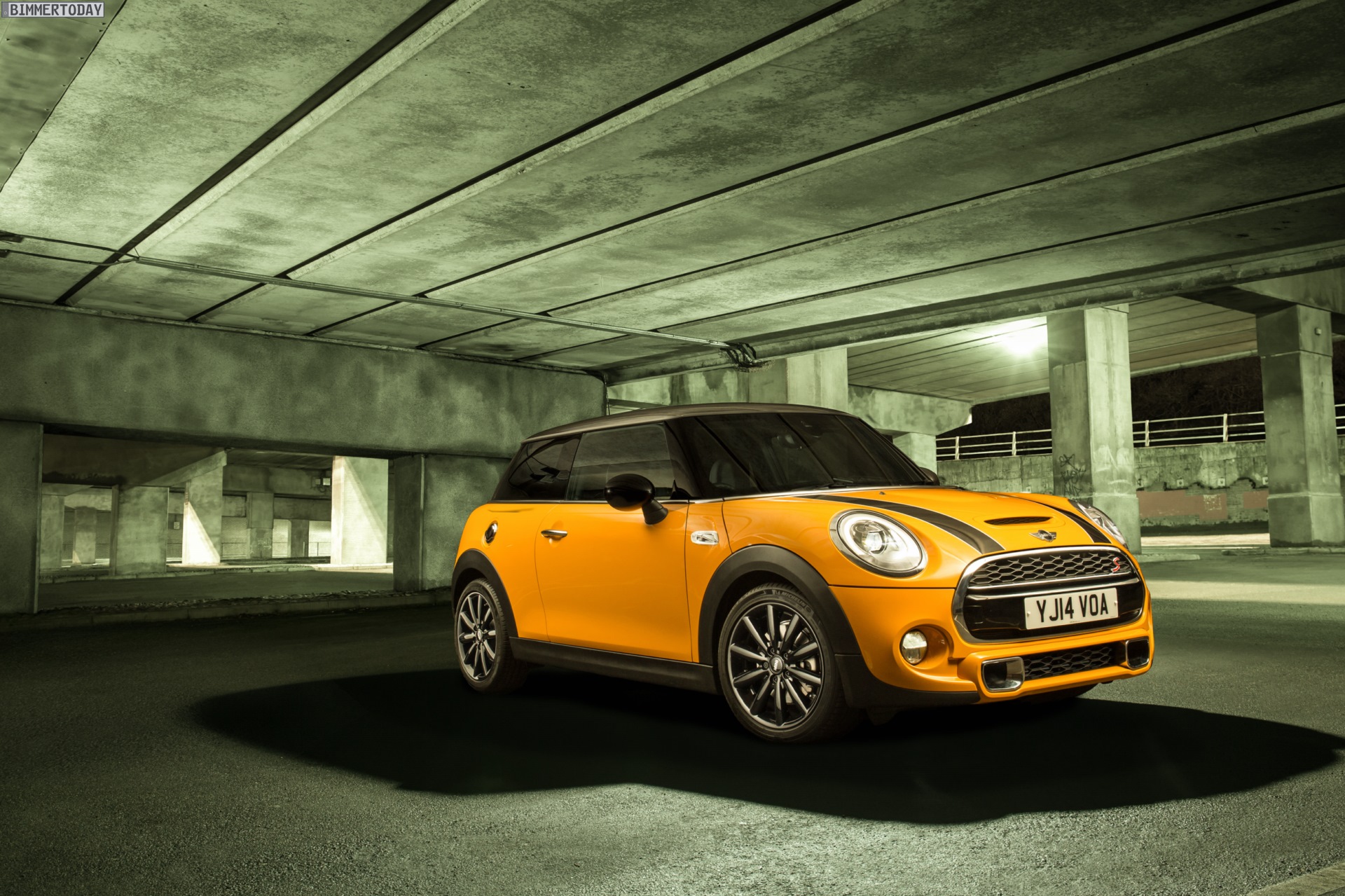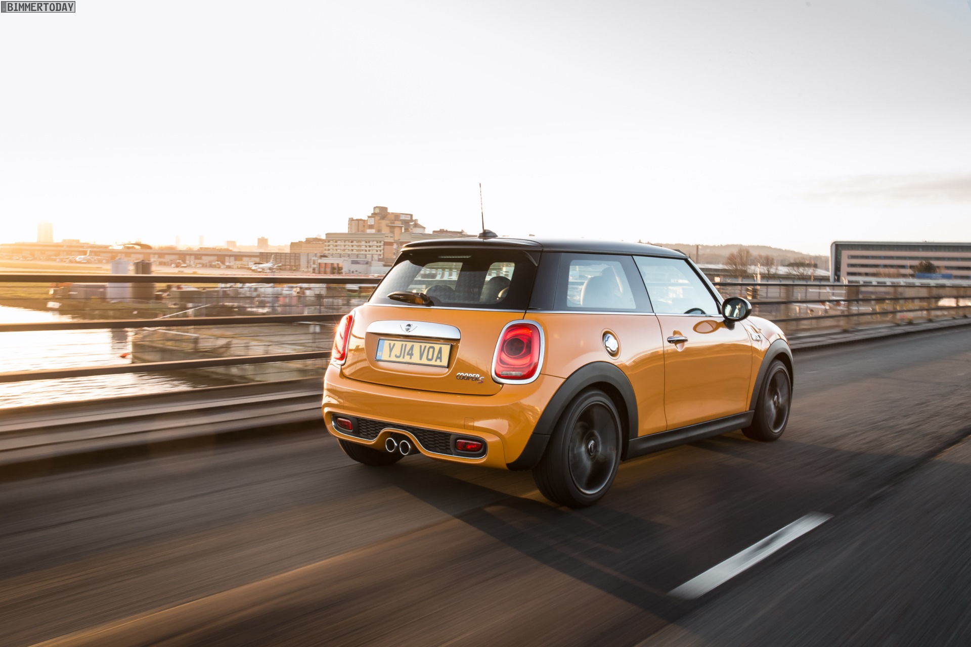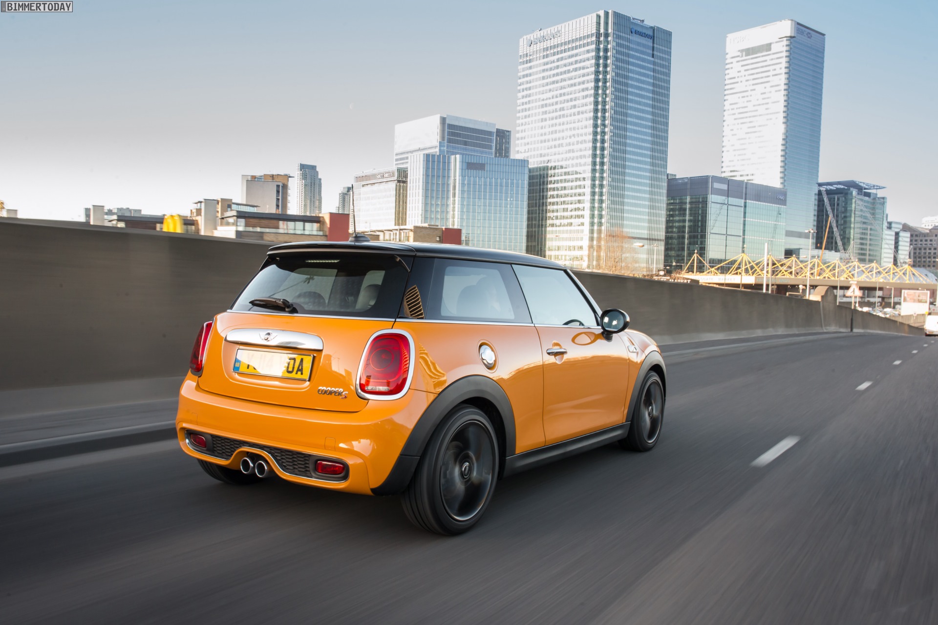 MINI Cooper S F56 in Volcanic Orange mit Dach und Felgen in Schwarz: