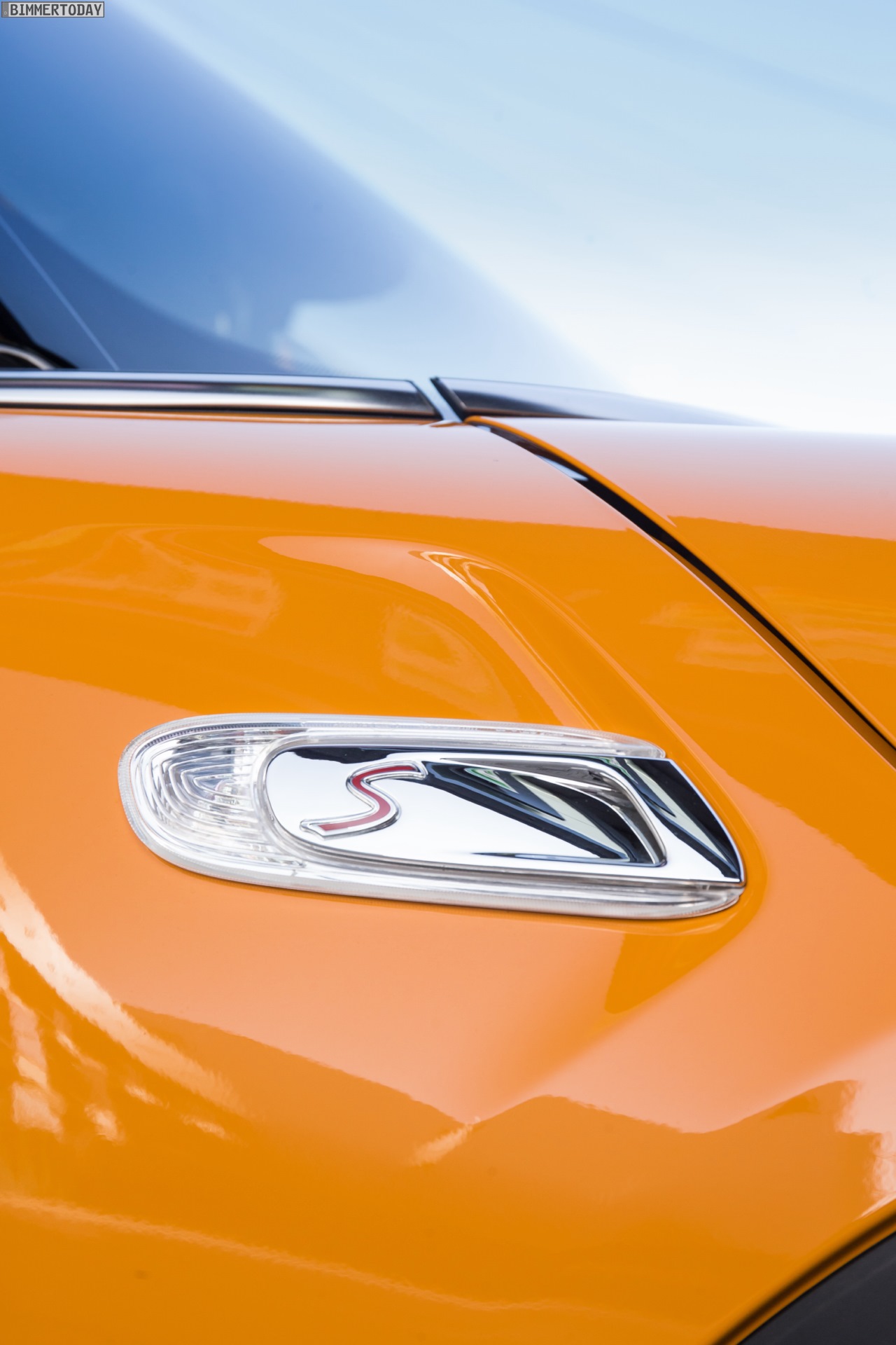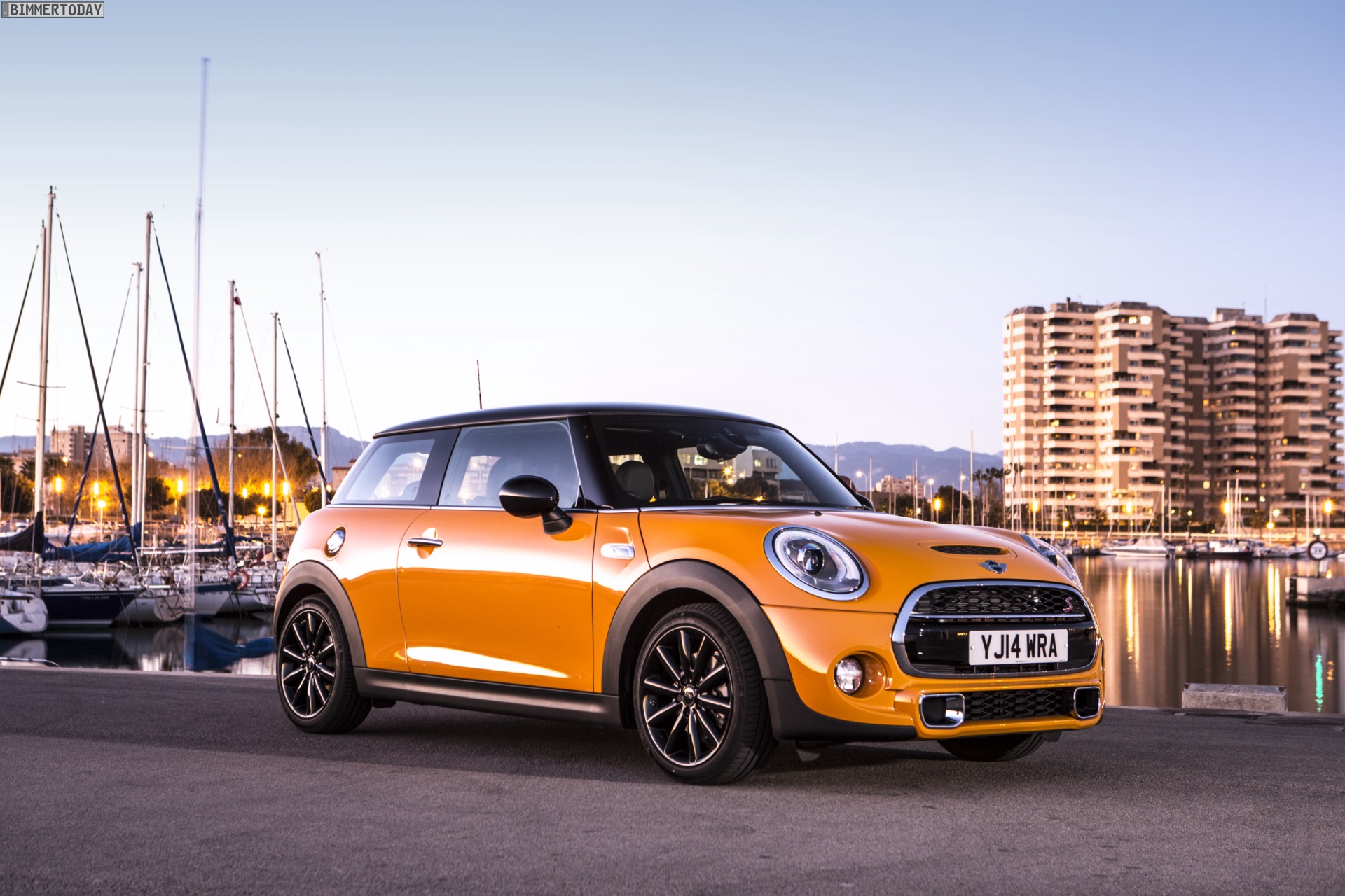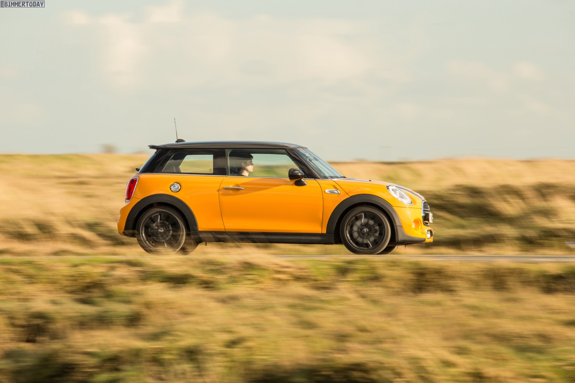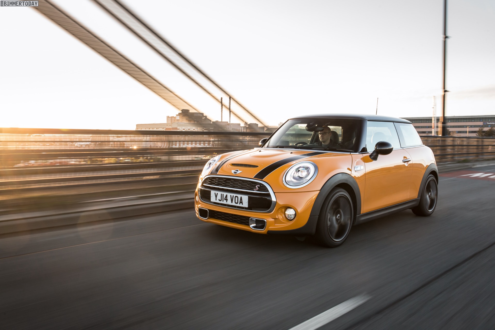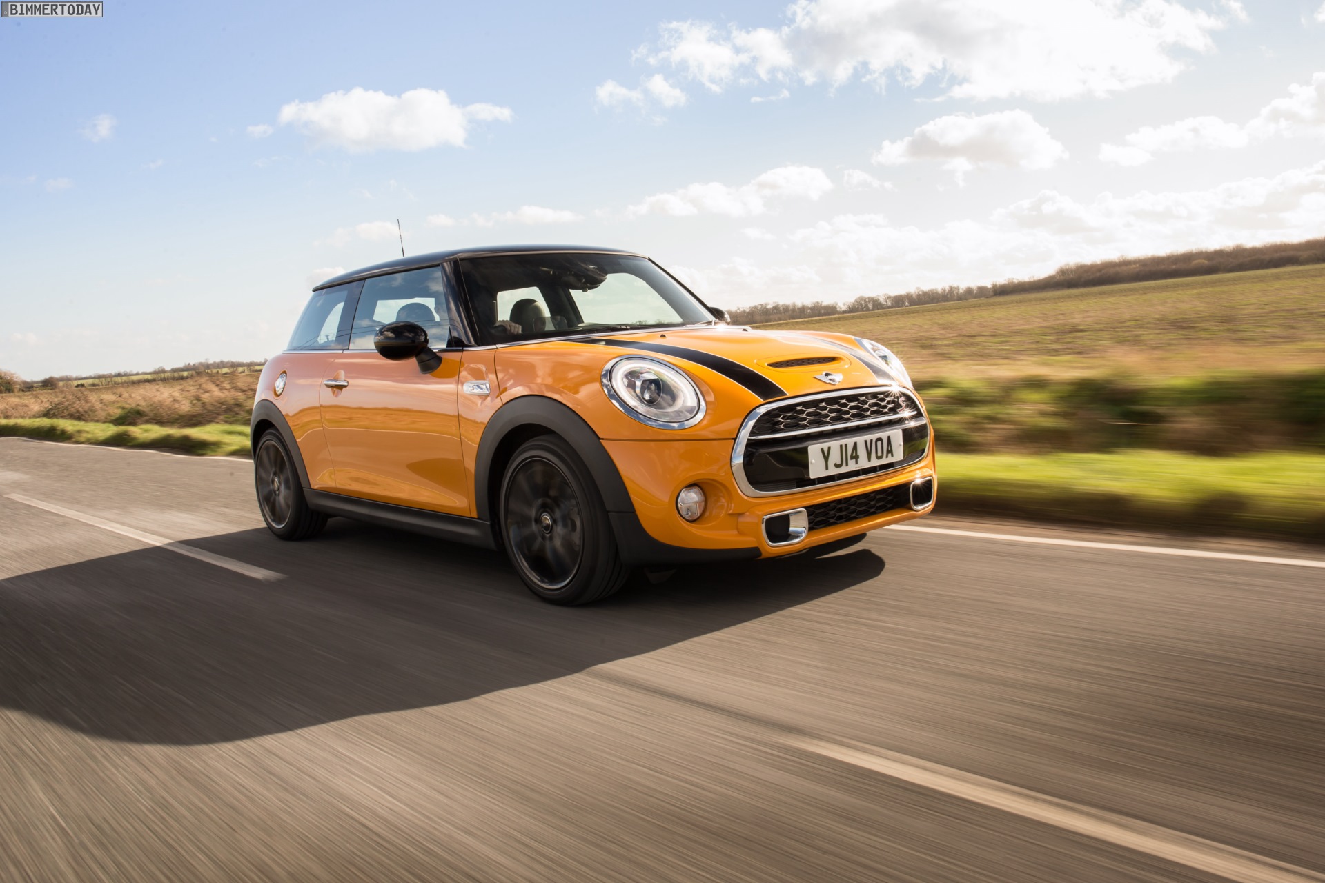 MINI Cooper S F56 in Volcanic Orange mit Dach und Felgen in Schwarz: