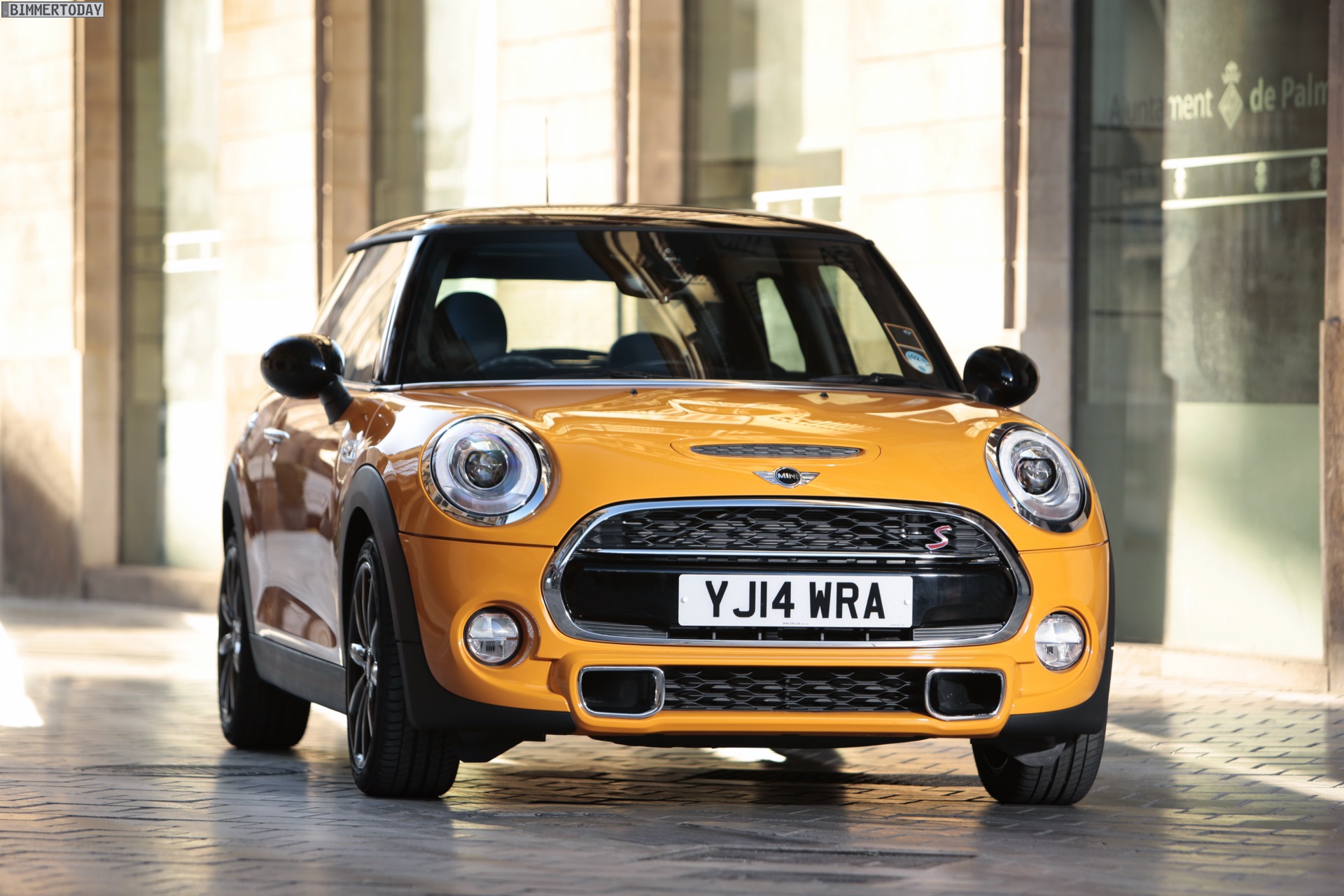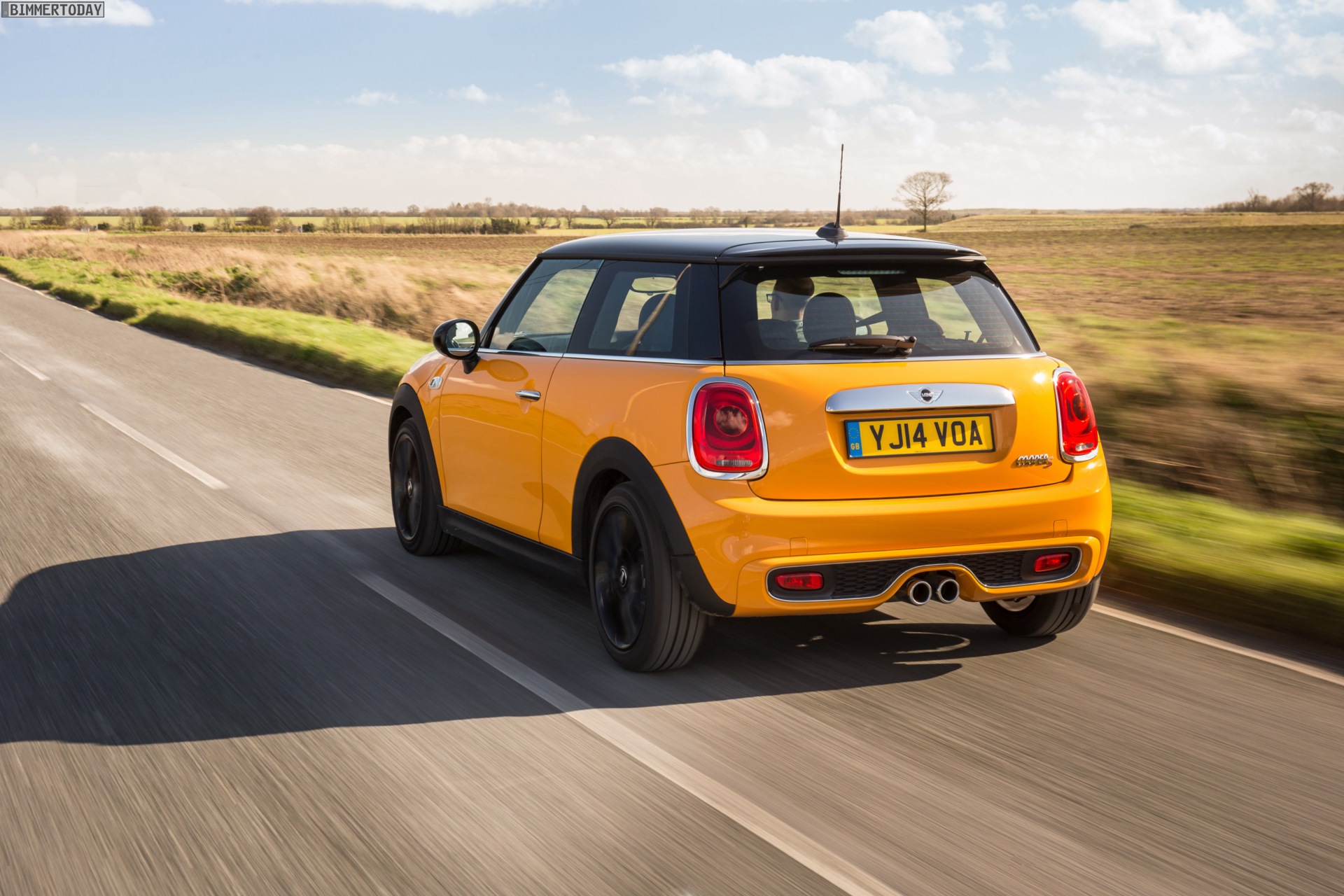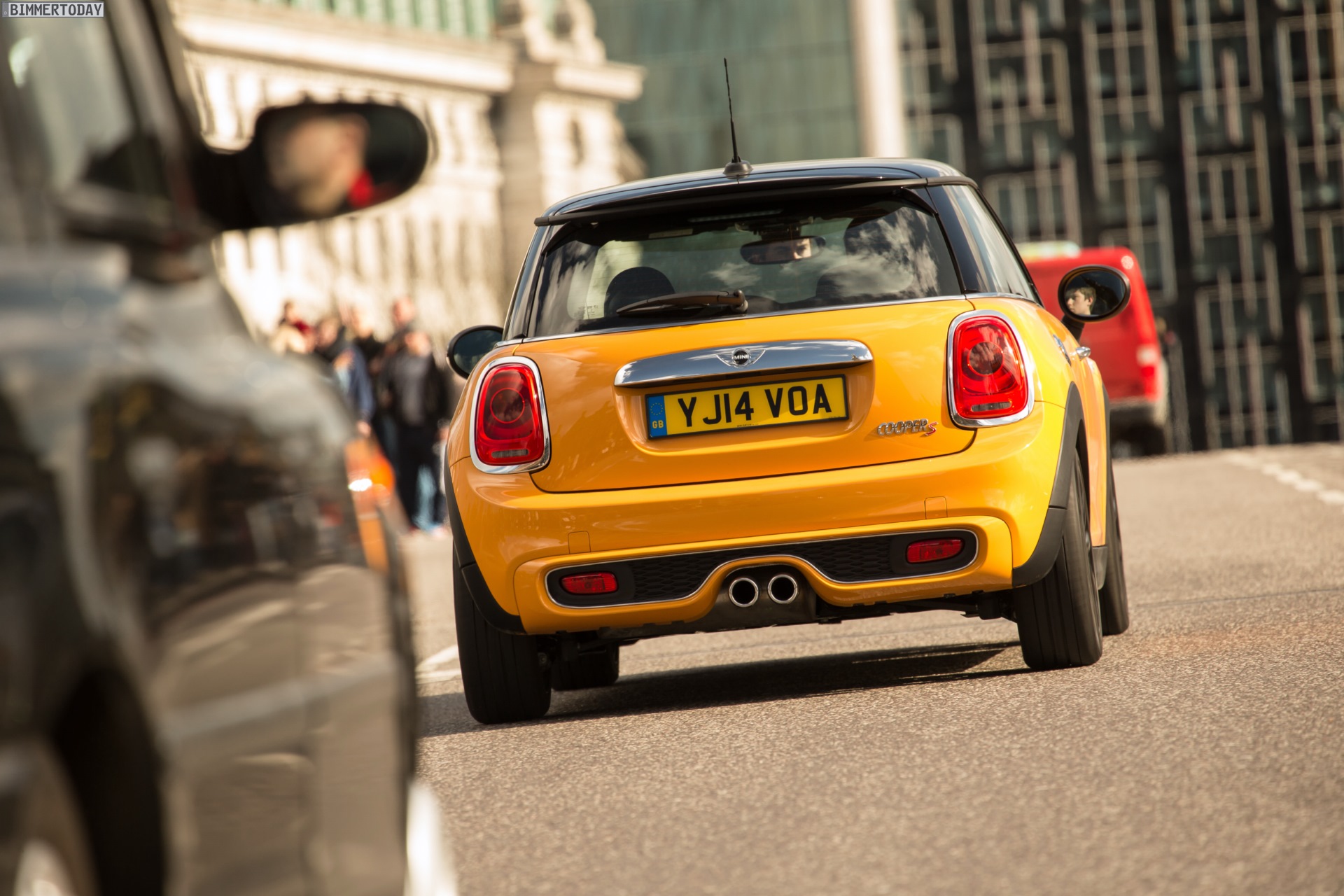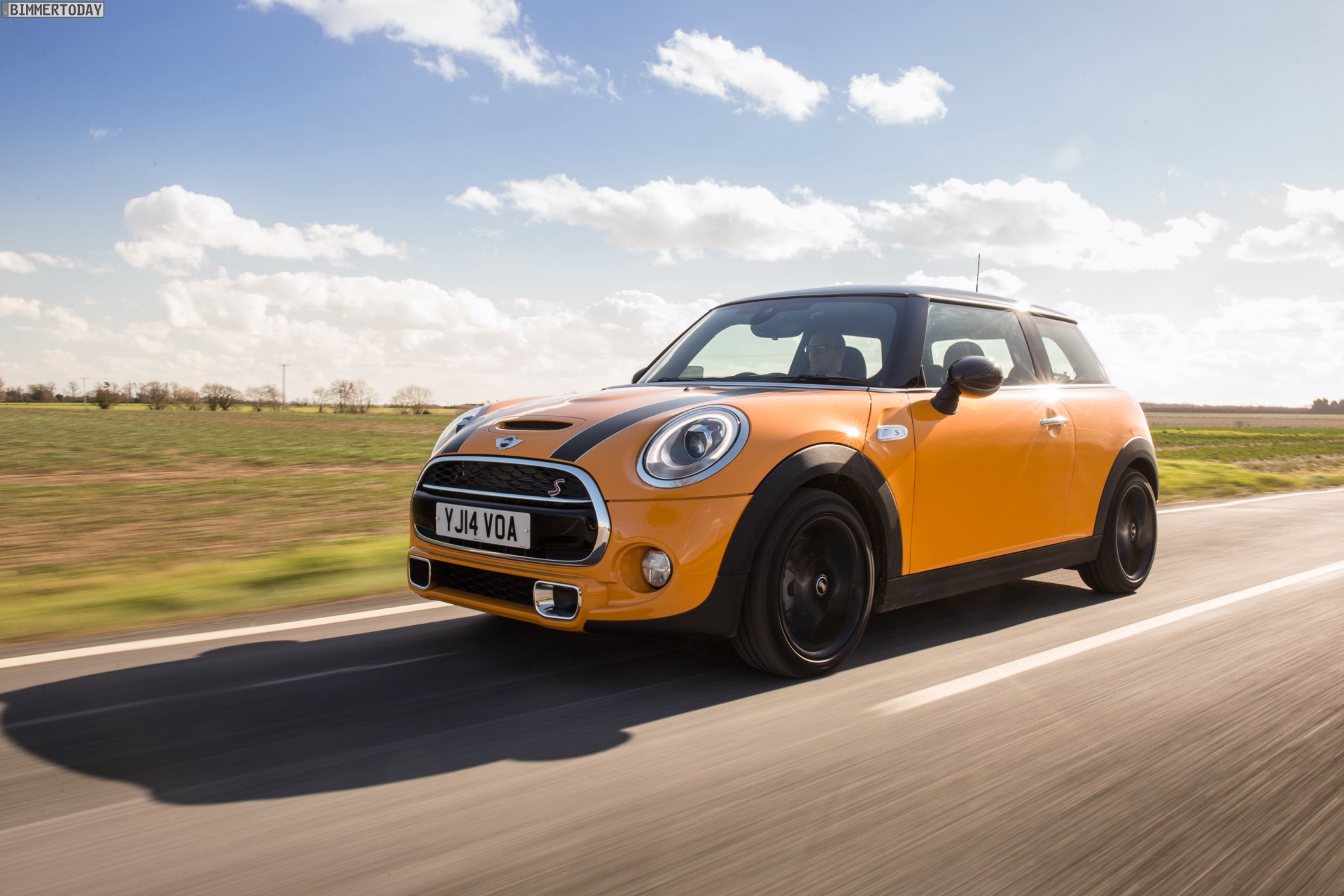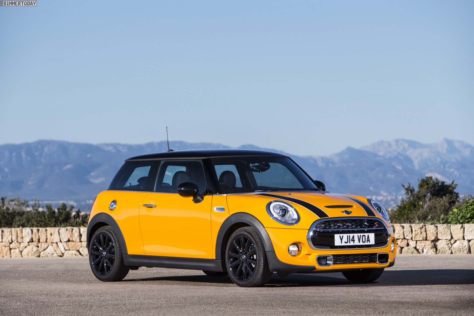 MINI Cooper S F56 in Volcanic Orange mit Dach und Felgen in Schwarz: