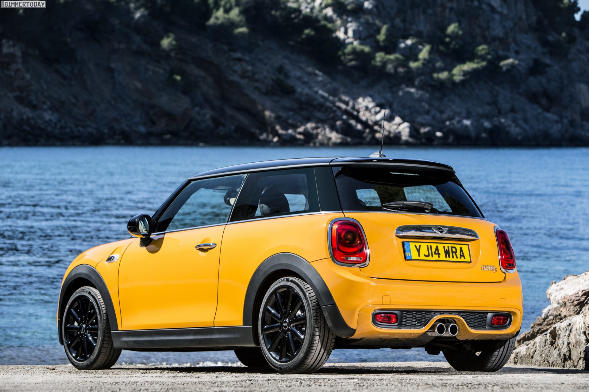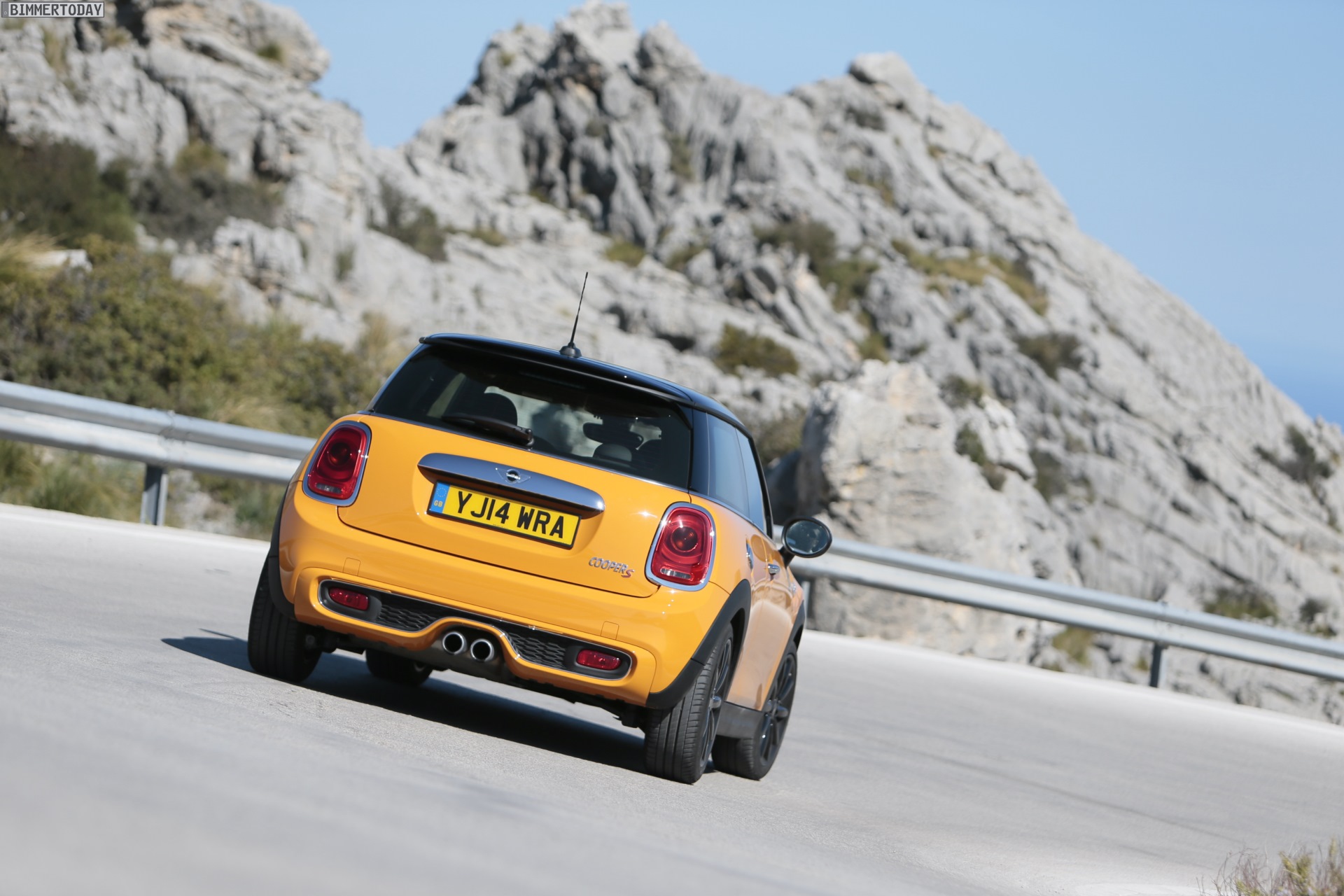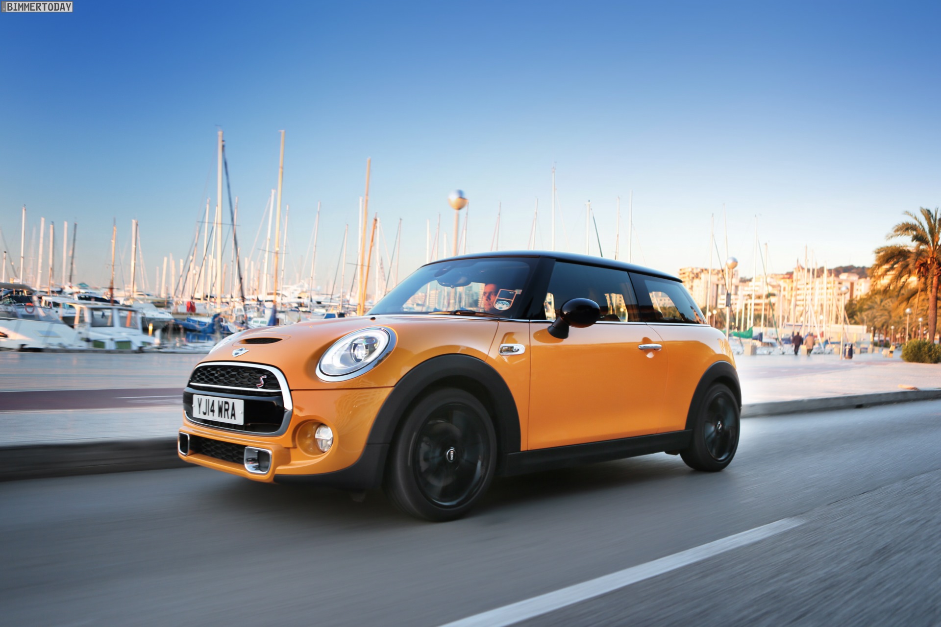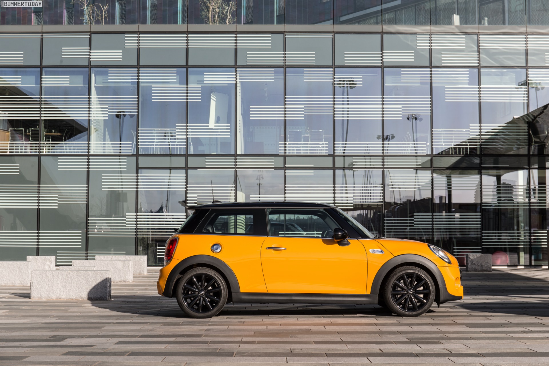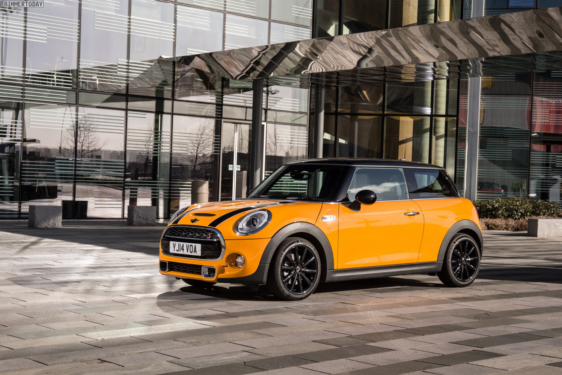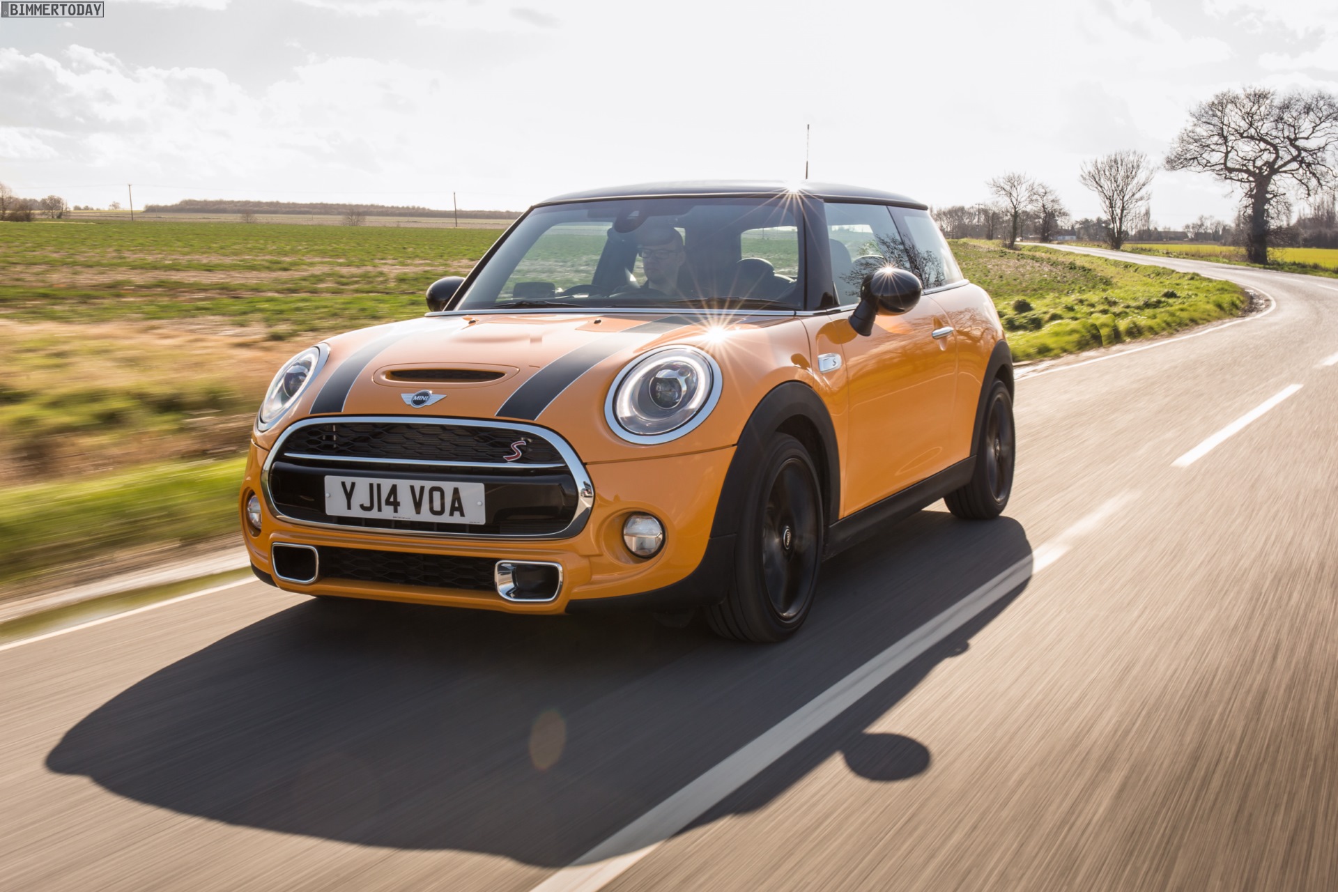 MINI Cooper S F56 in Volcanic Orange mit Dach und Felgen in Schwarz: