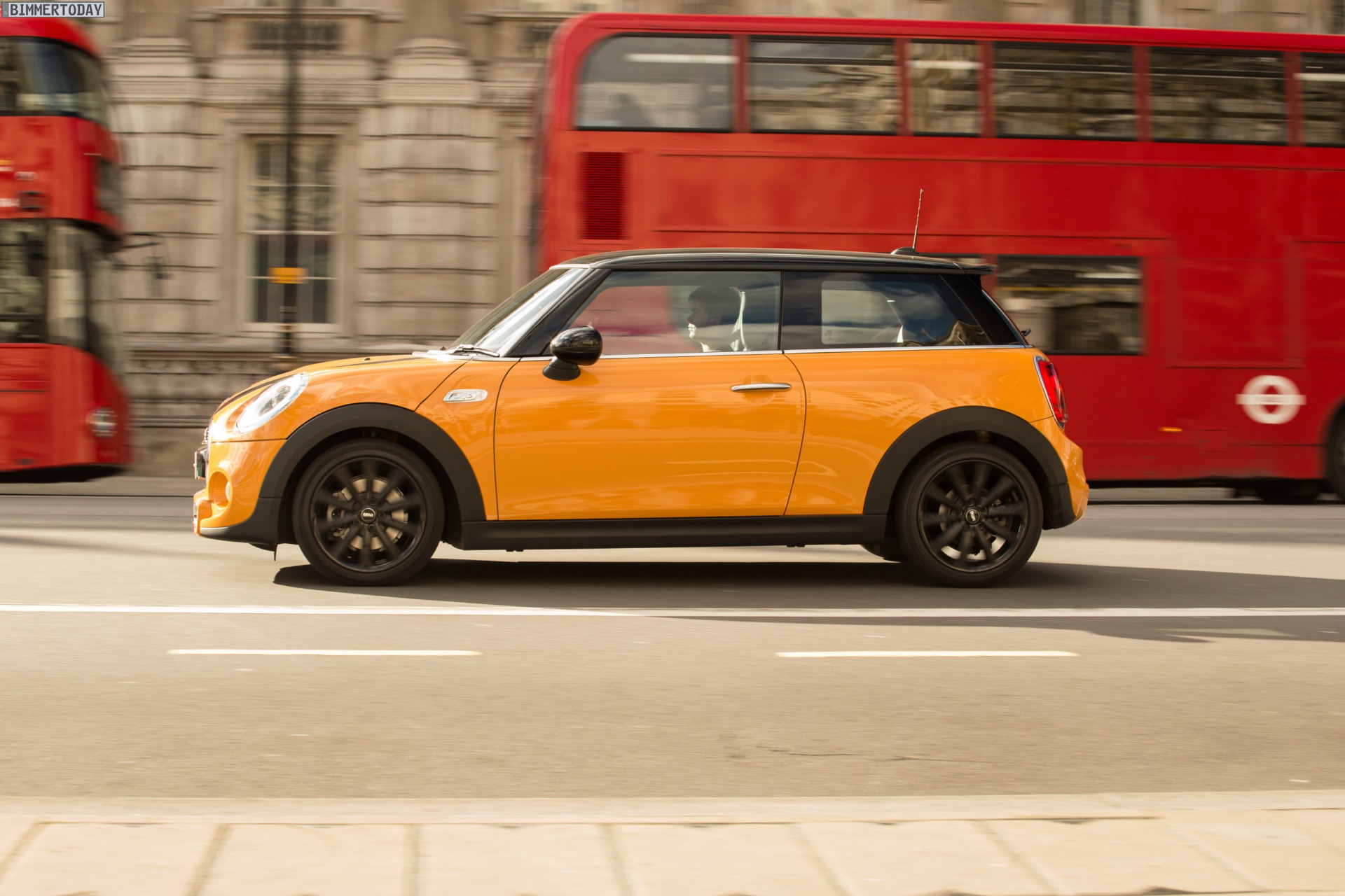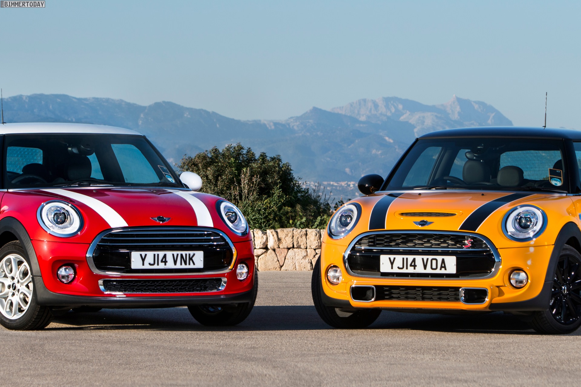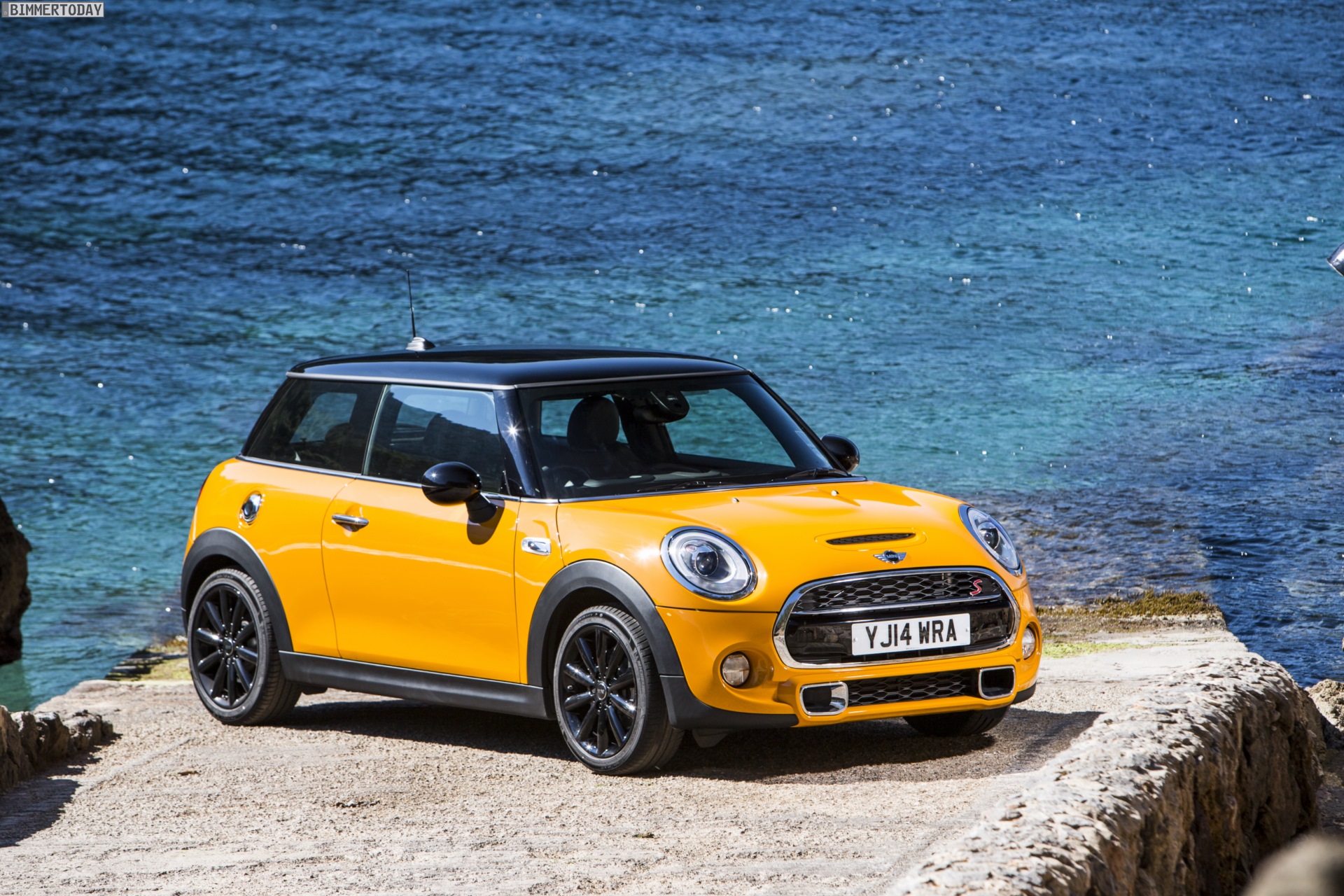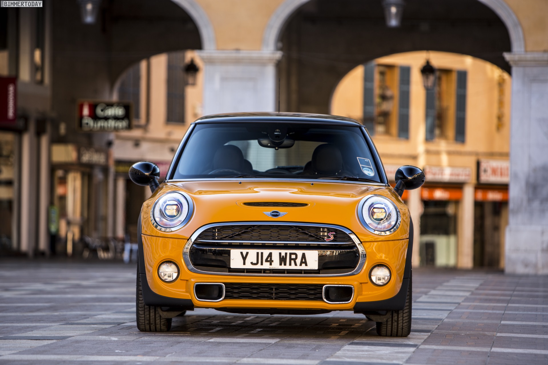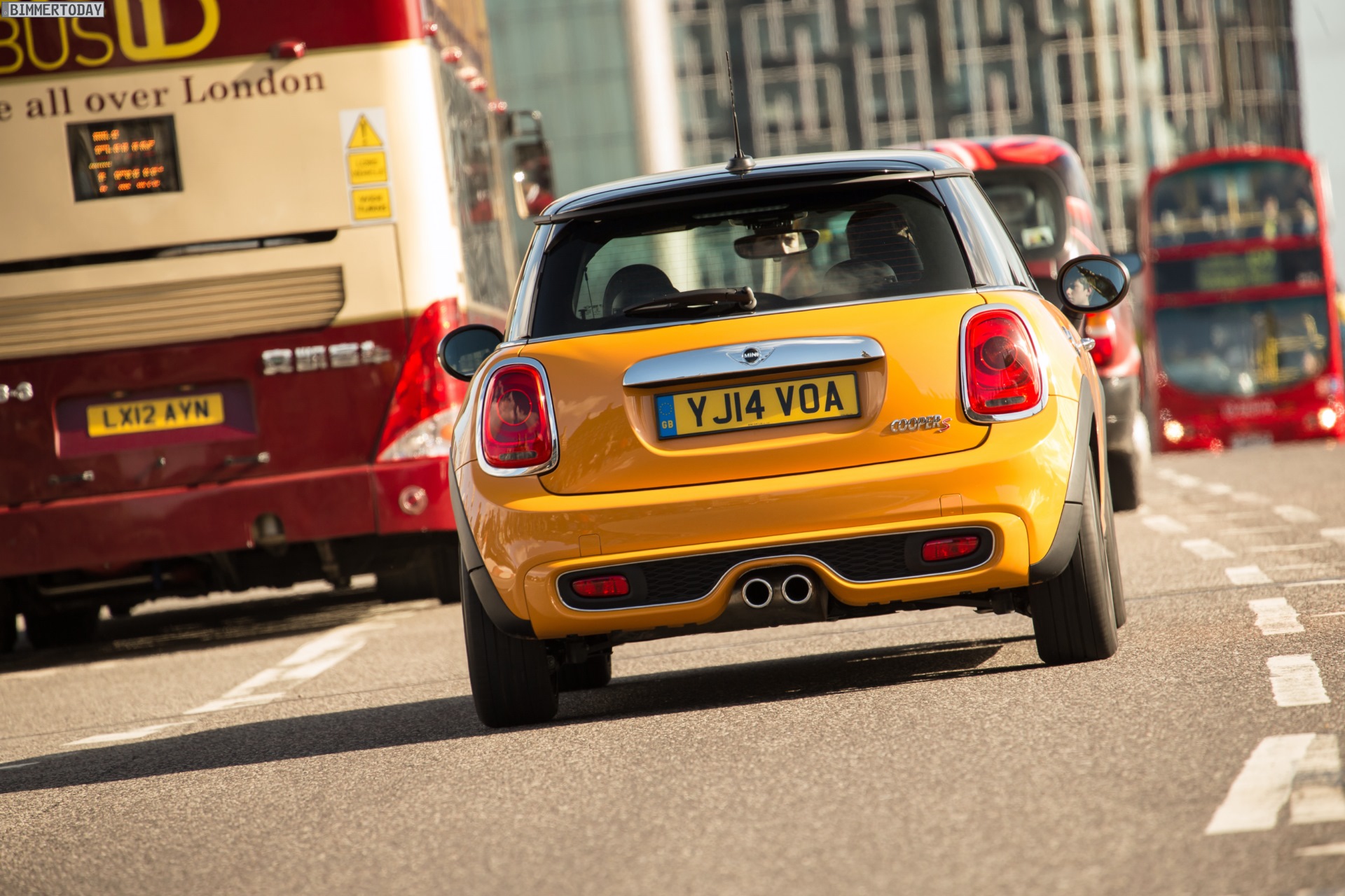 MINI Cooper S F56 in Volcanic Orange mit Dach und Felgen in Schwarz: