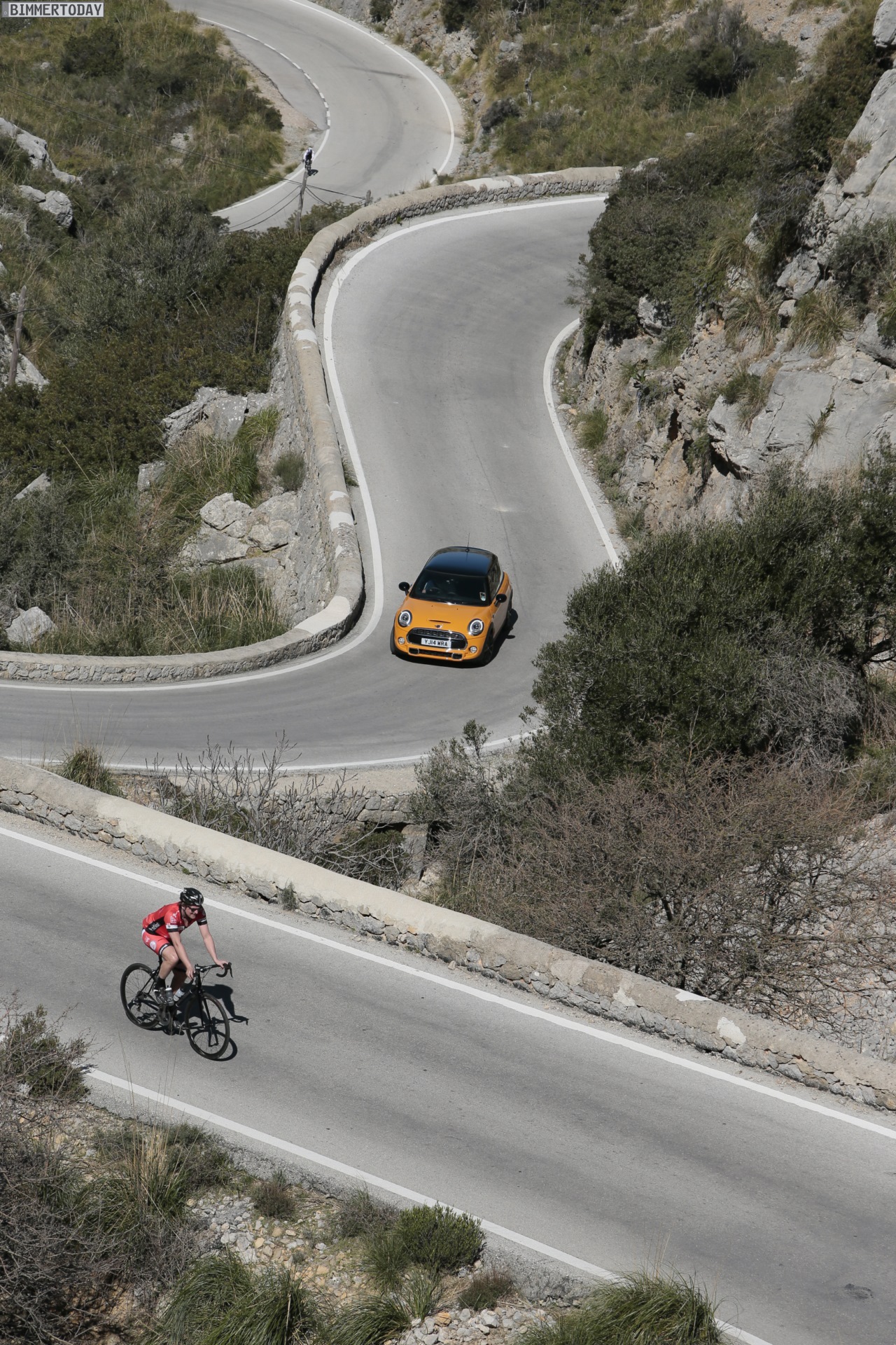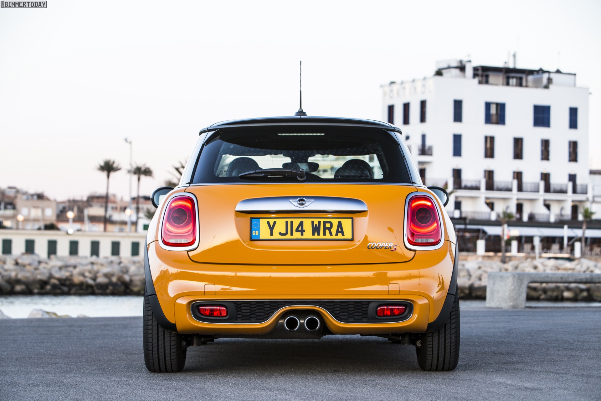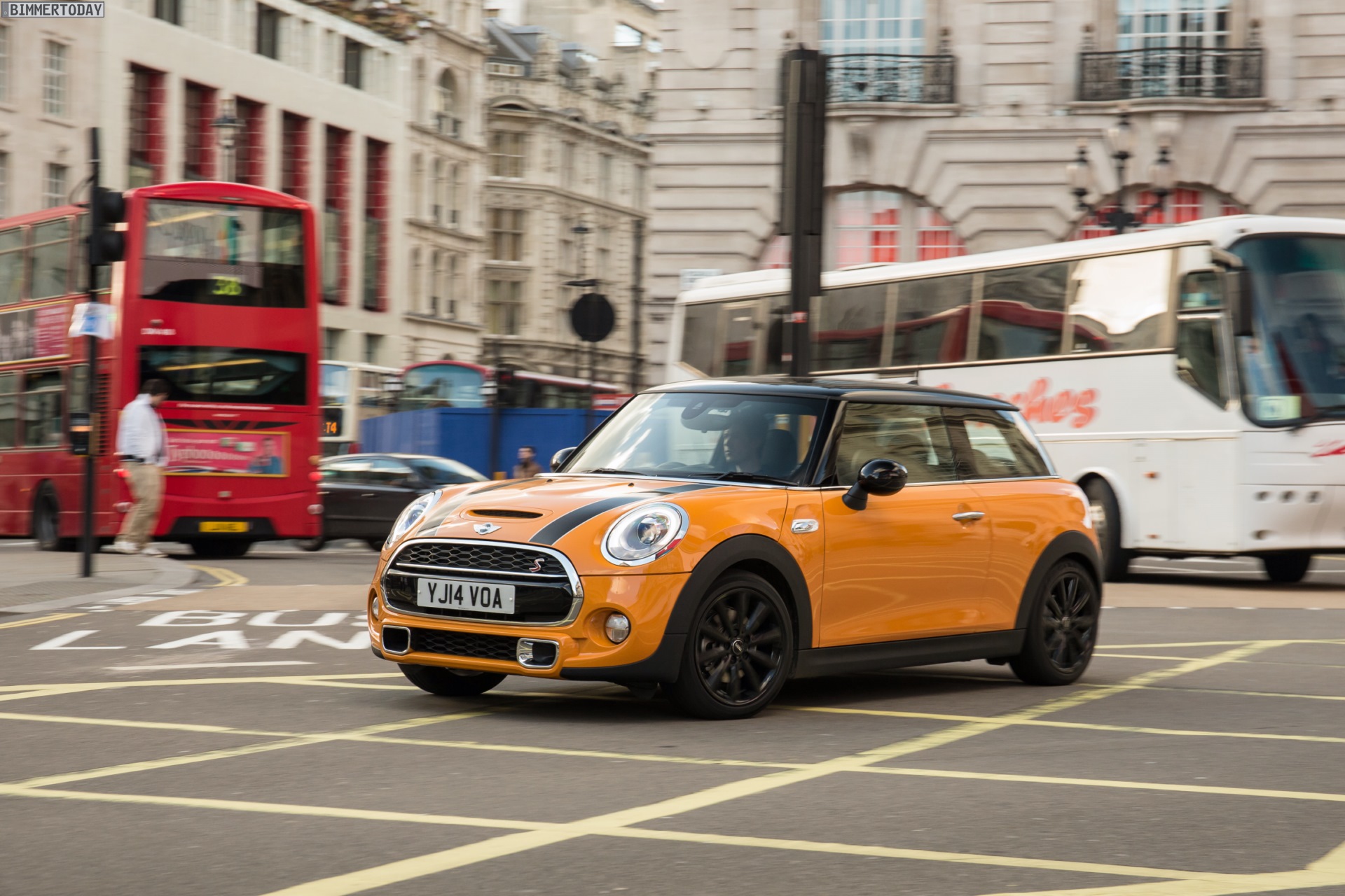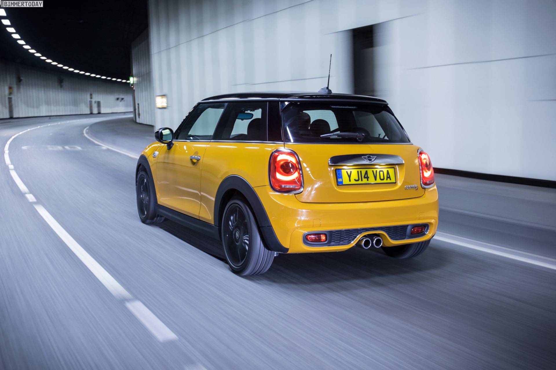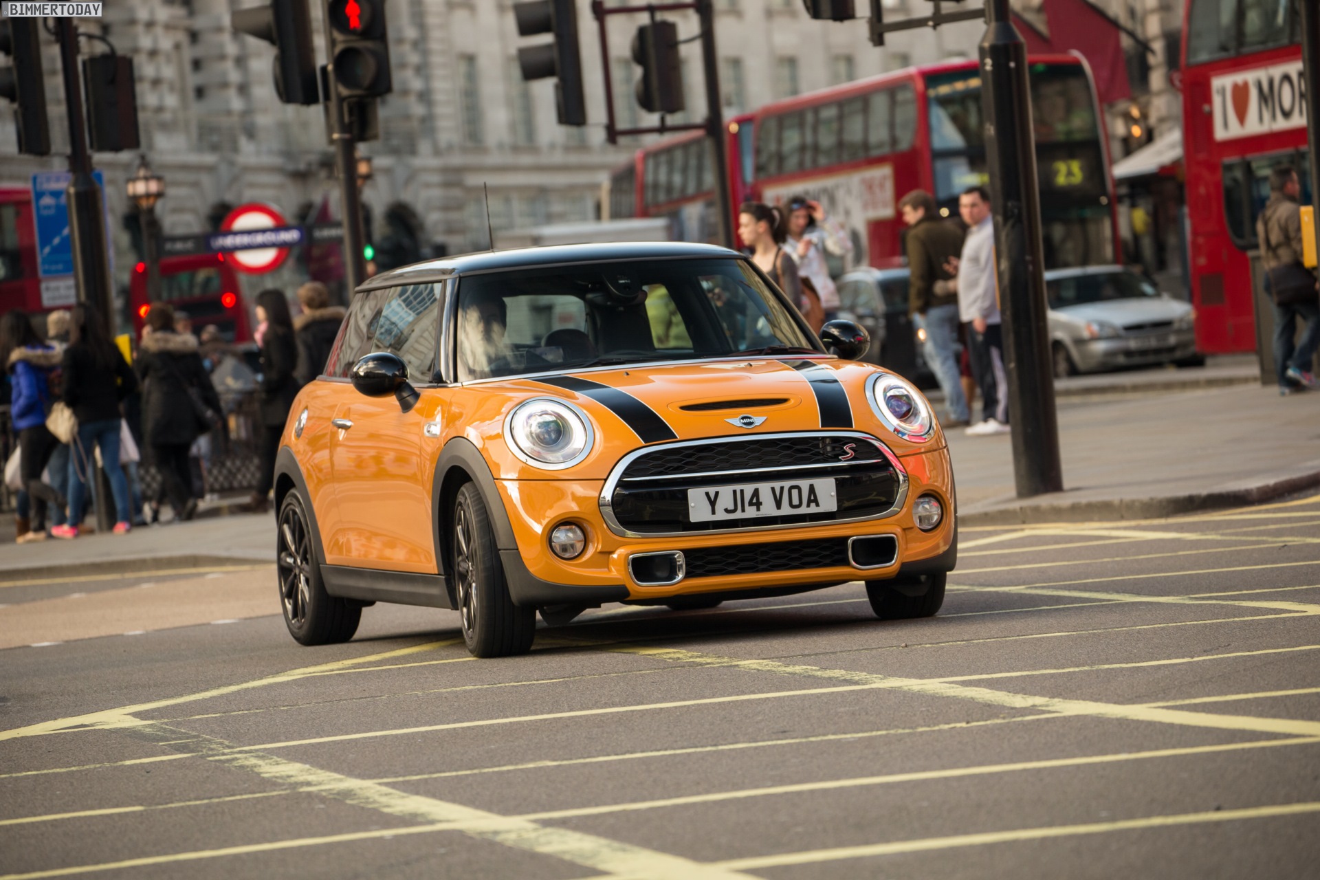 MINI Cooper S F56 in Volcanic Orange mit Dach und Felgen in Schwarz: