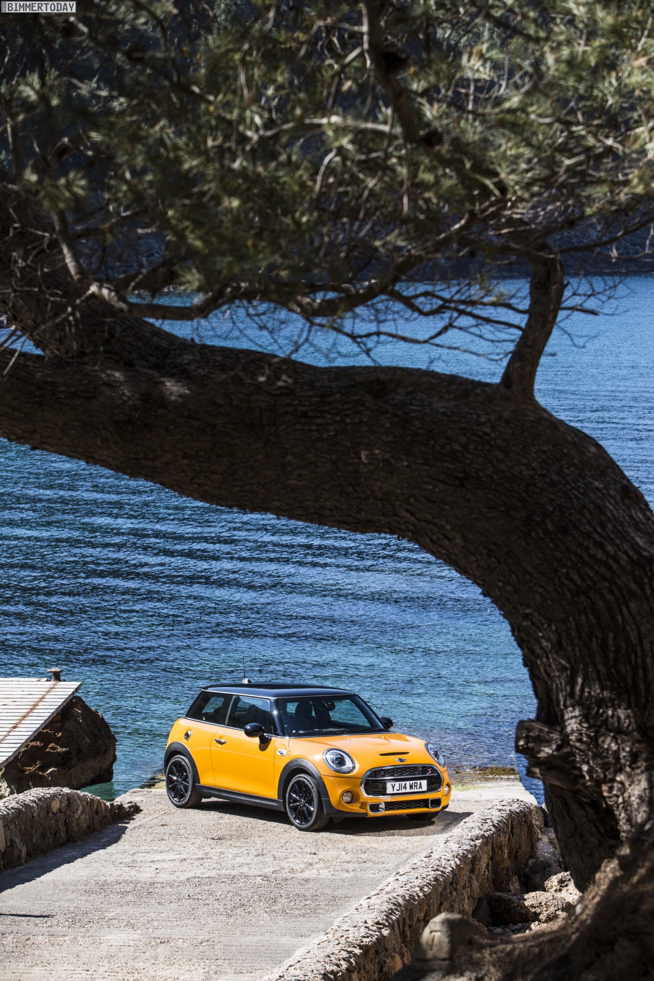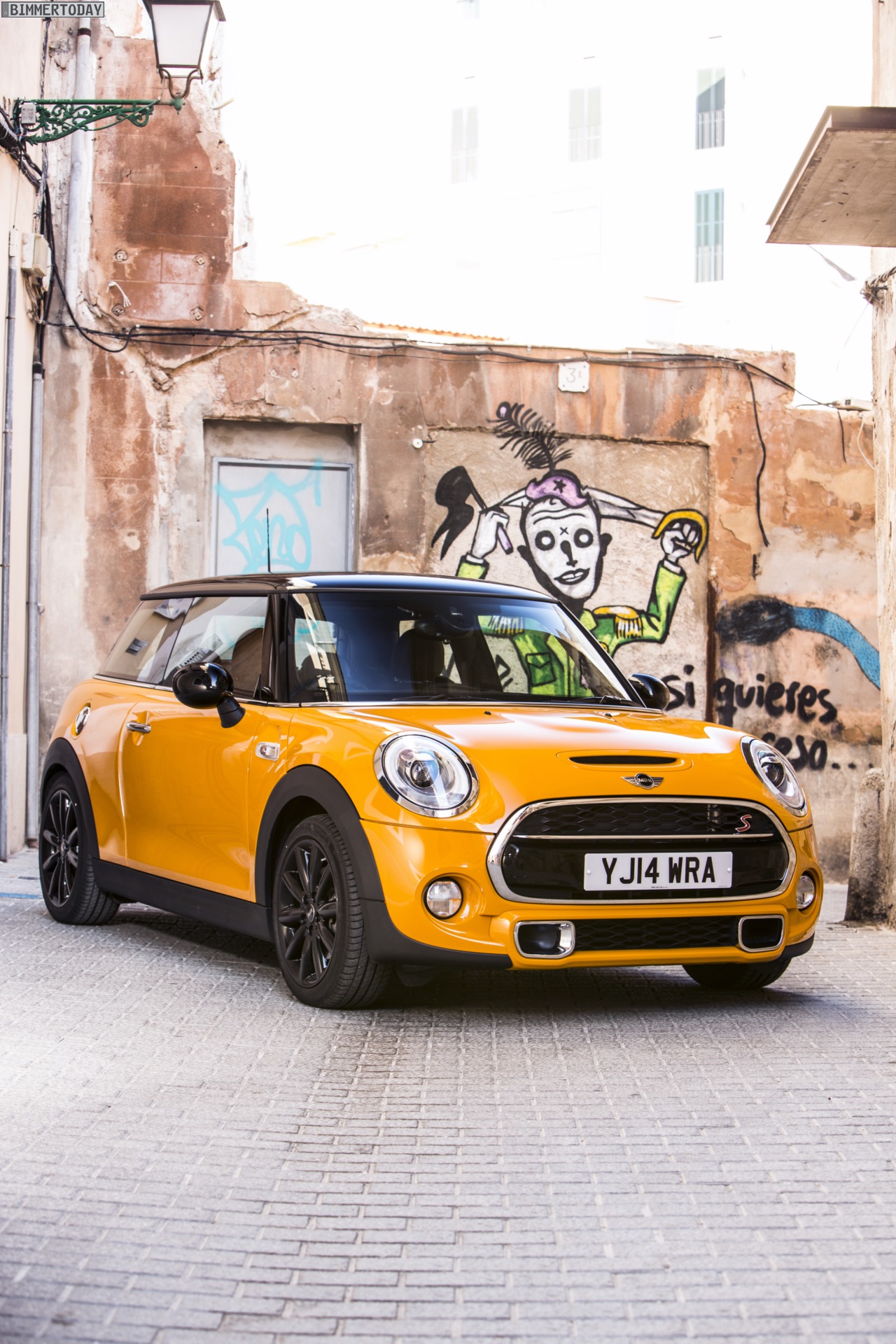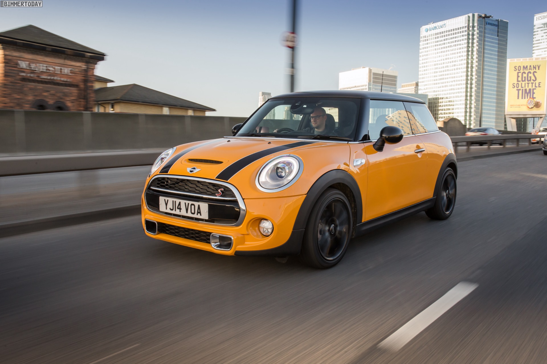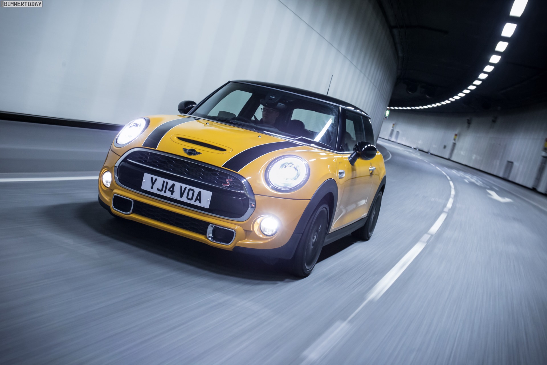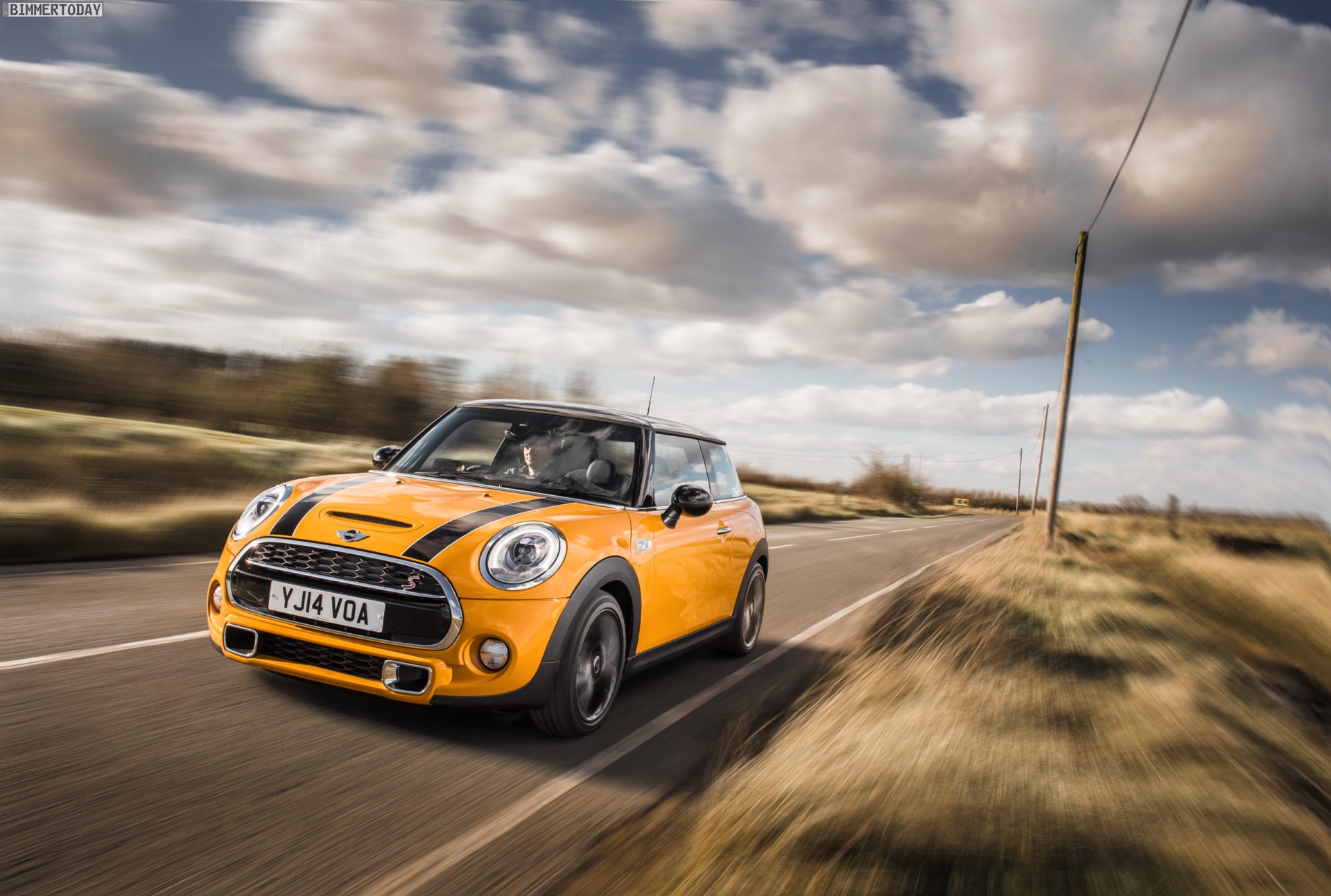 MINI Cooper S F56 in Volcanic Orange mit Dach und Felgen in Schwarz:
