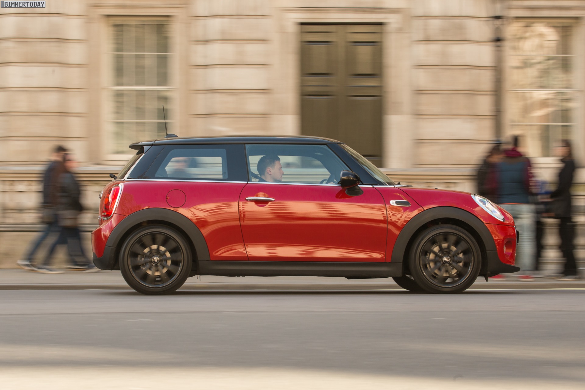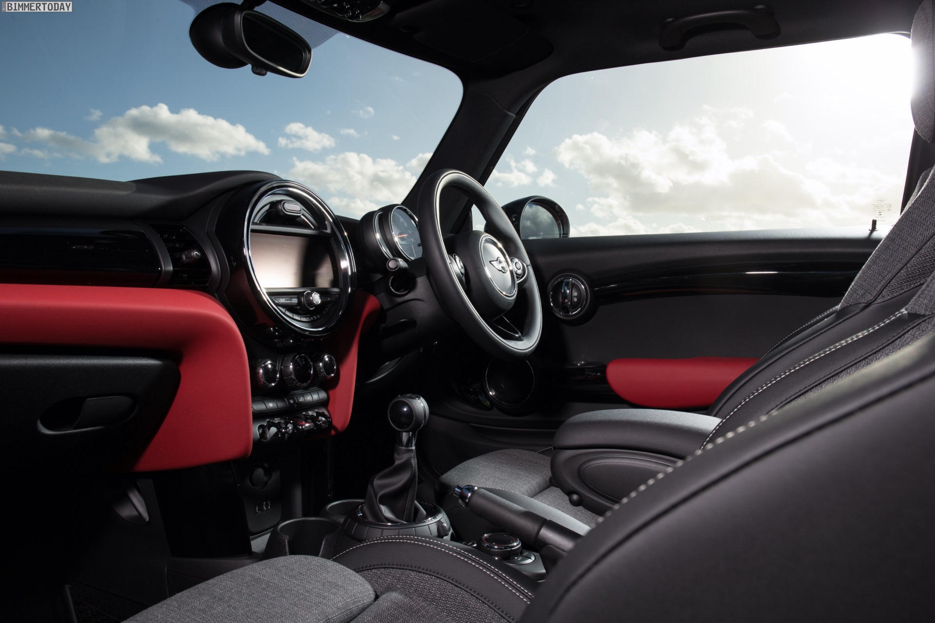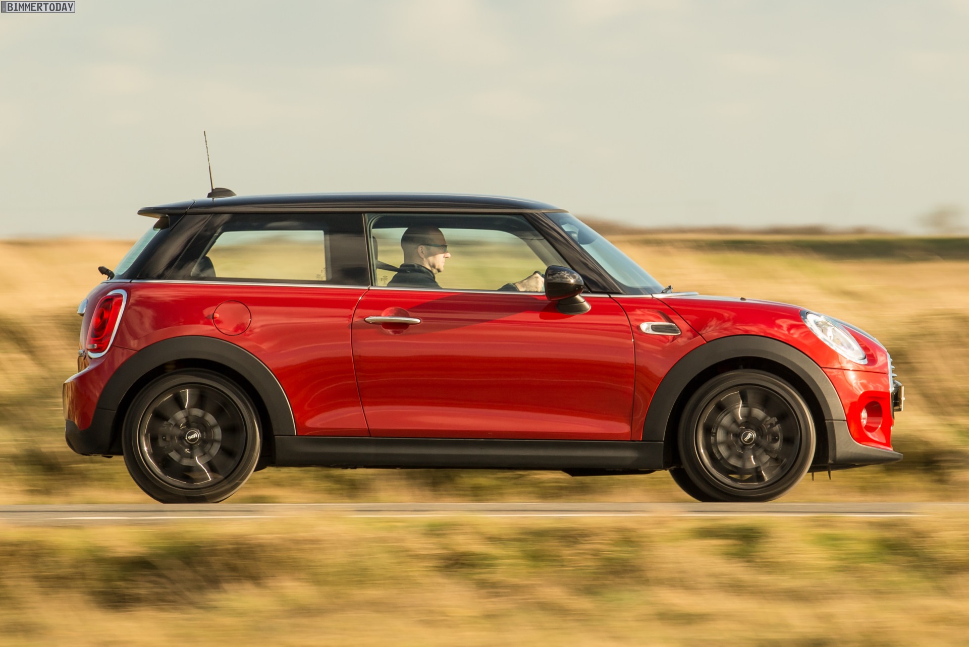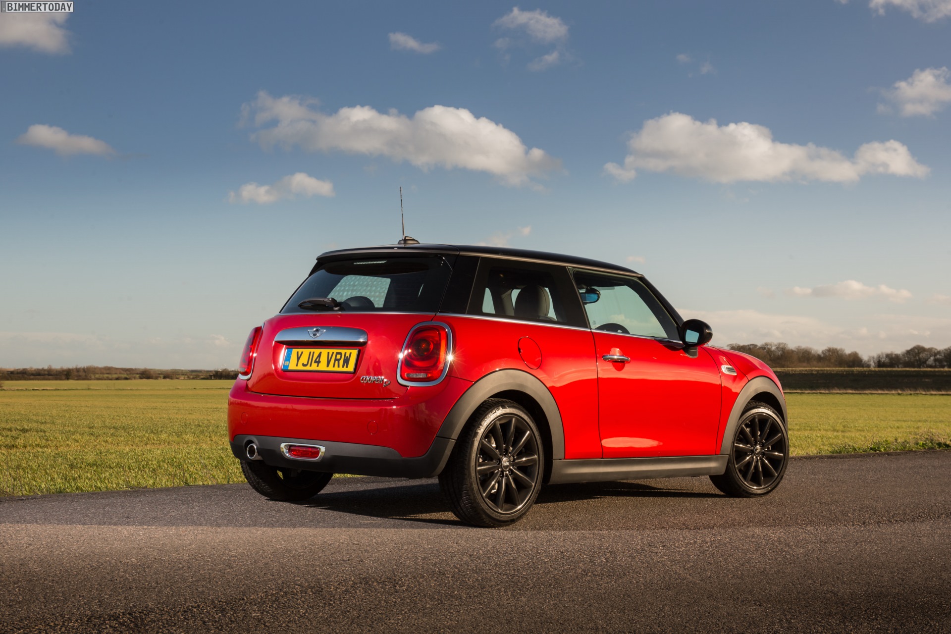 MINI Cooper D F56 in Blazing Red mit Dach und Felgen in Schwarz: