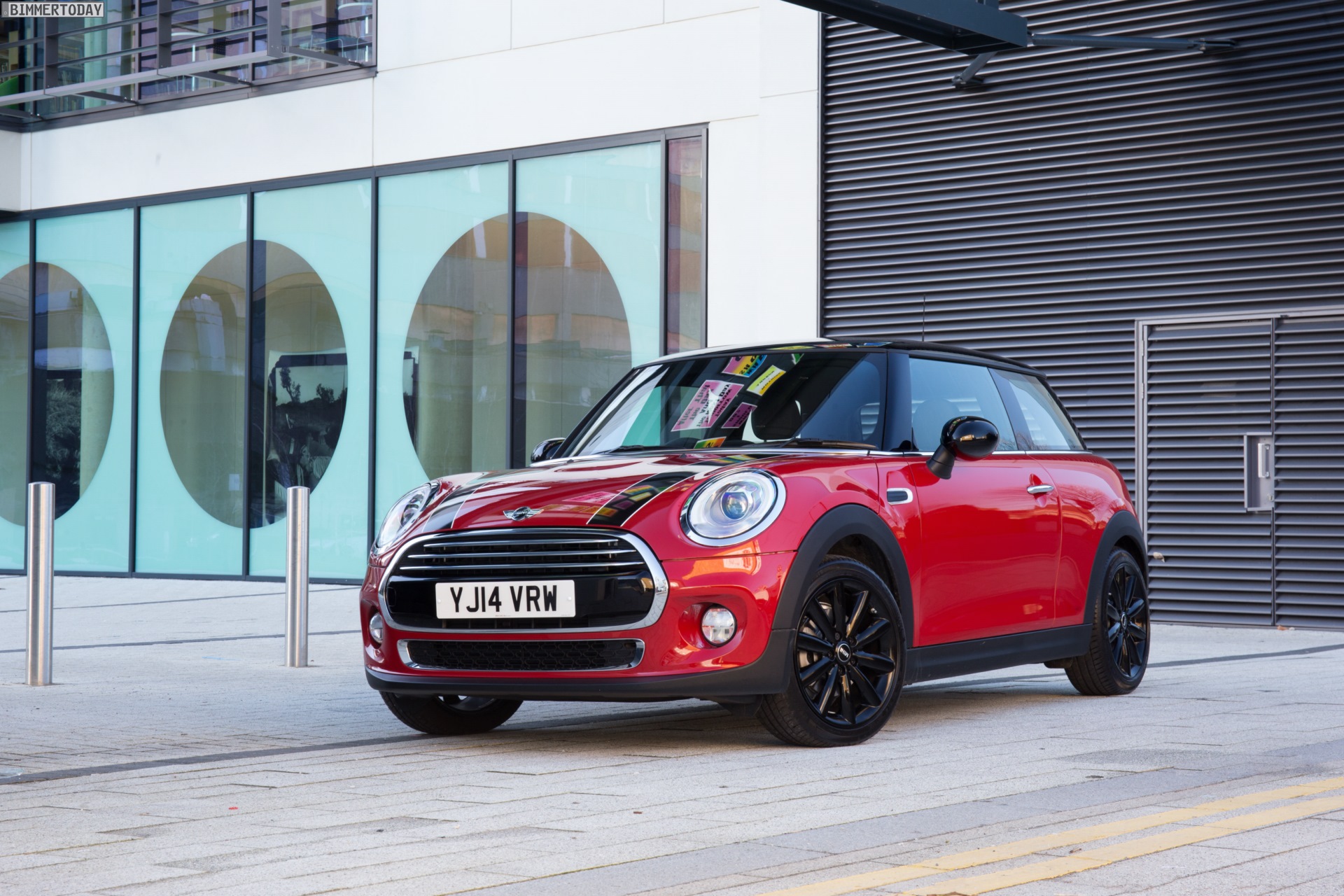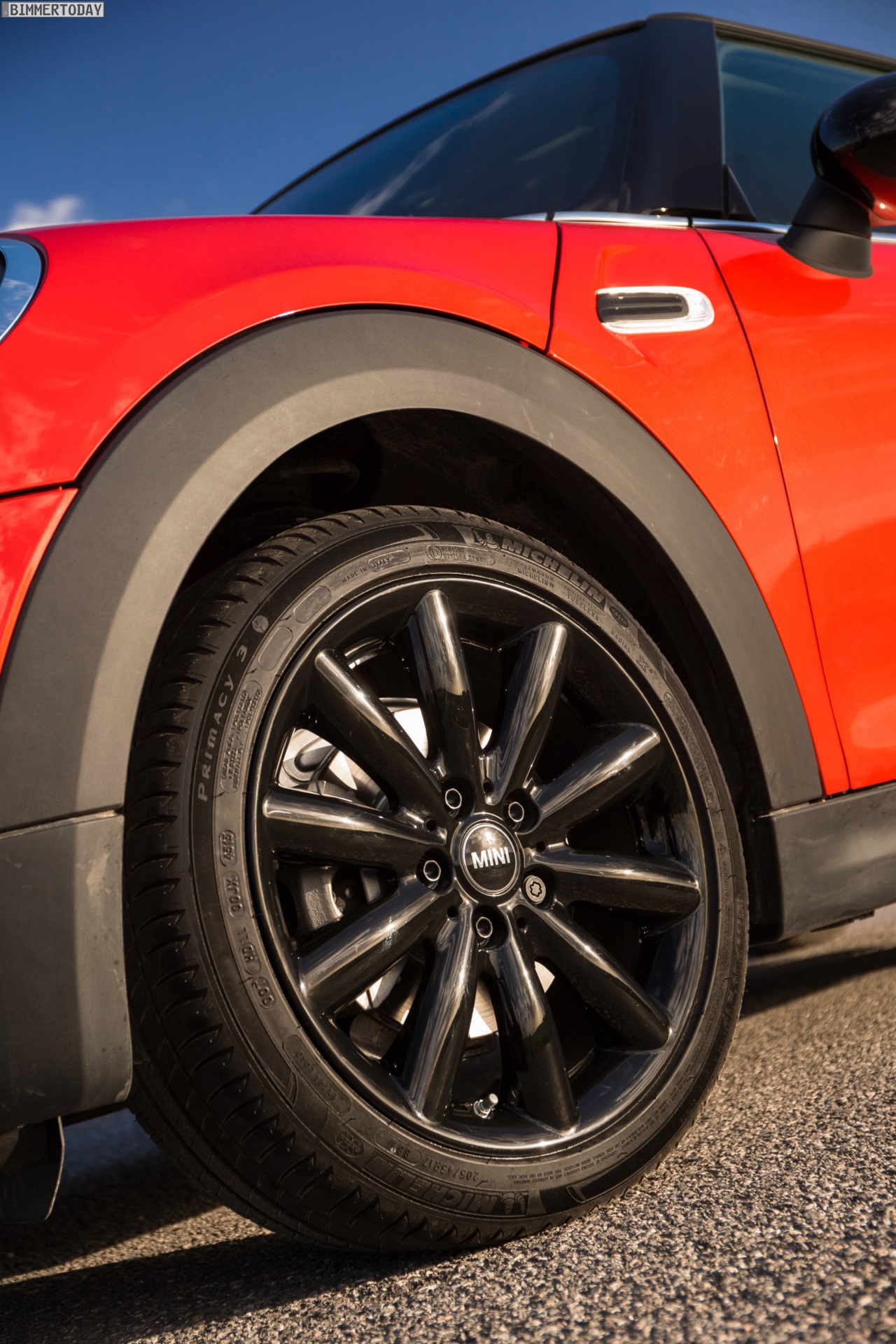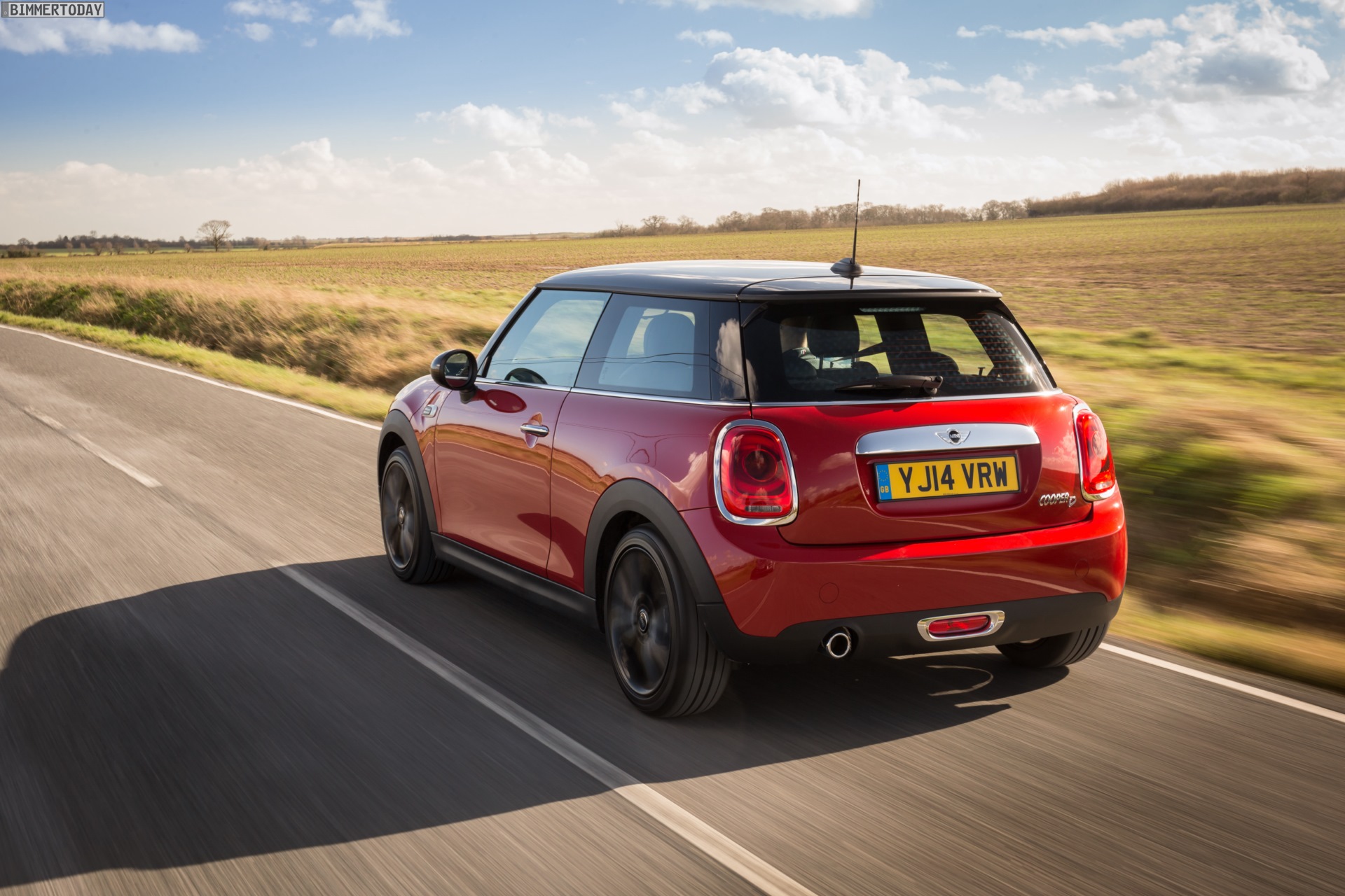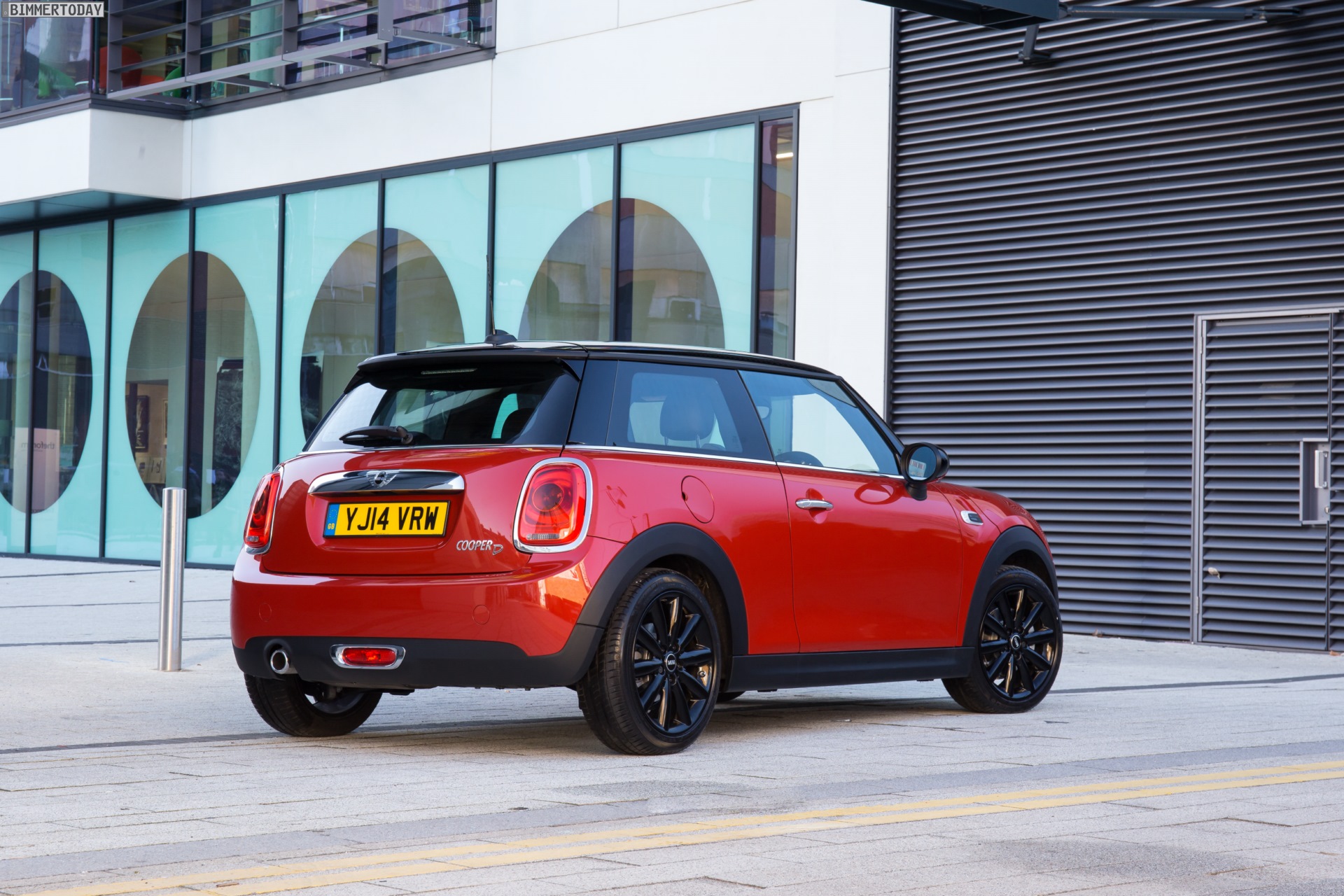 MINI Cooper D F56 in Blazing Red mit Dach und Felgen in Schwarz: