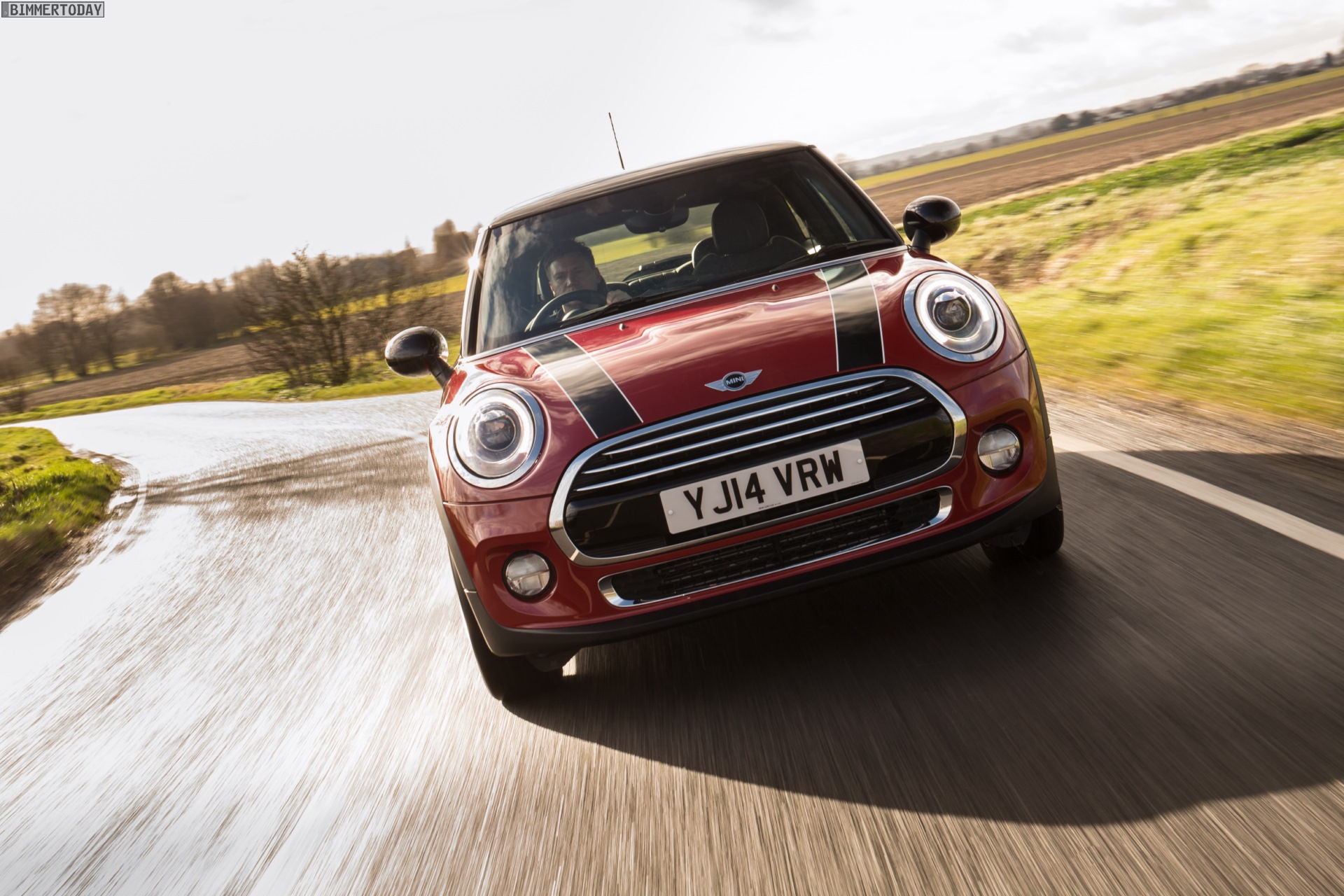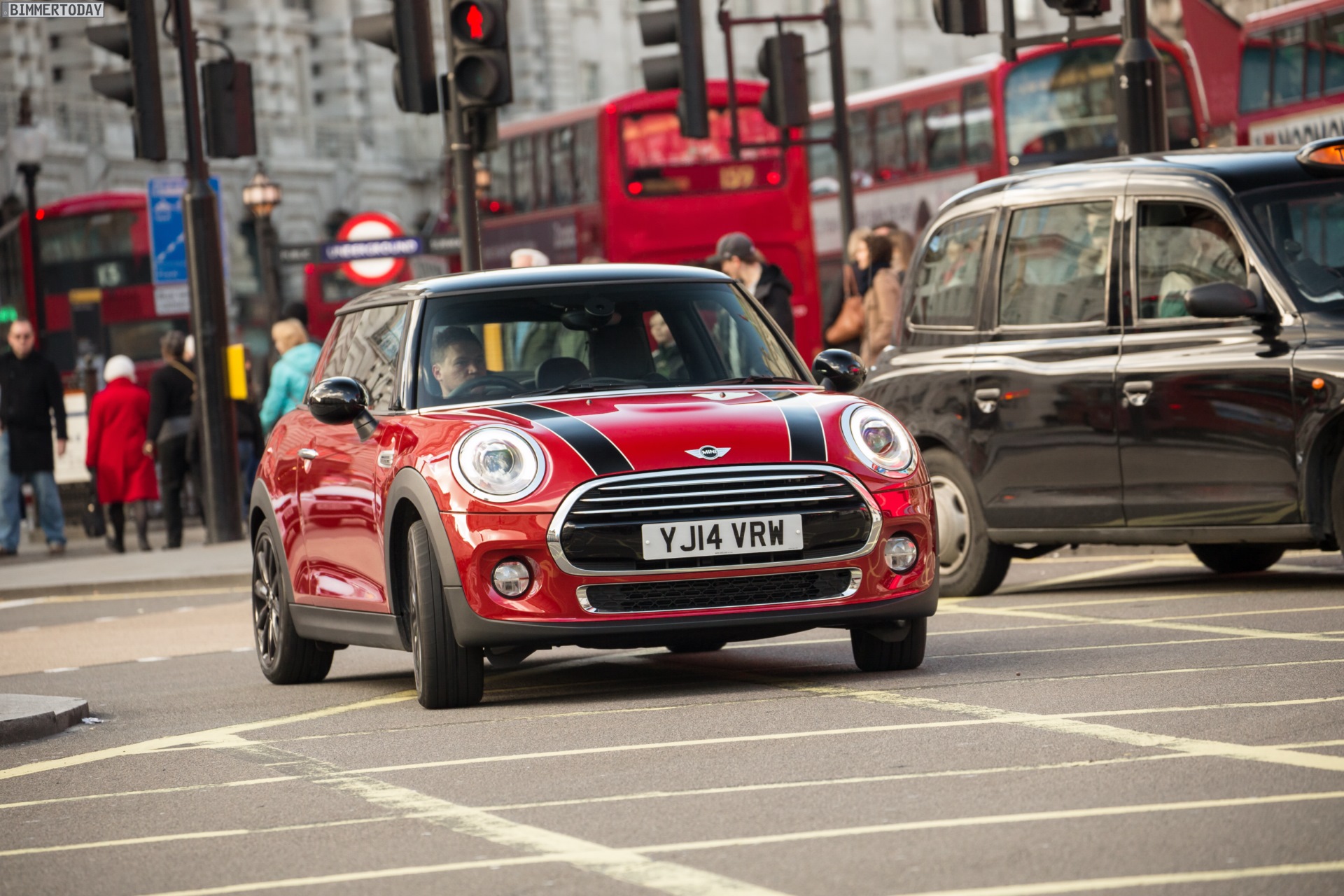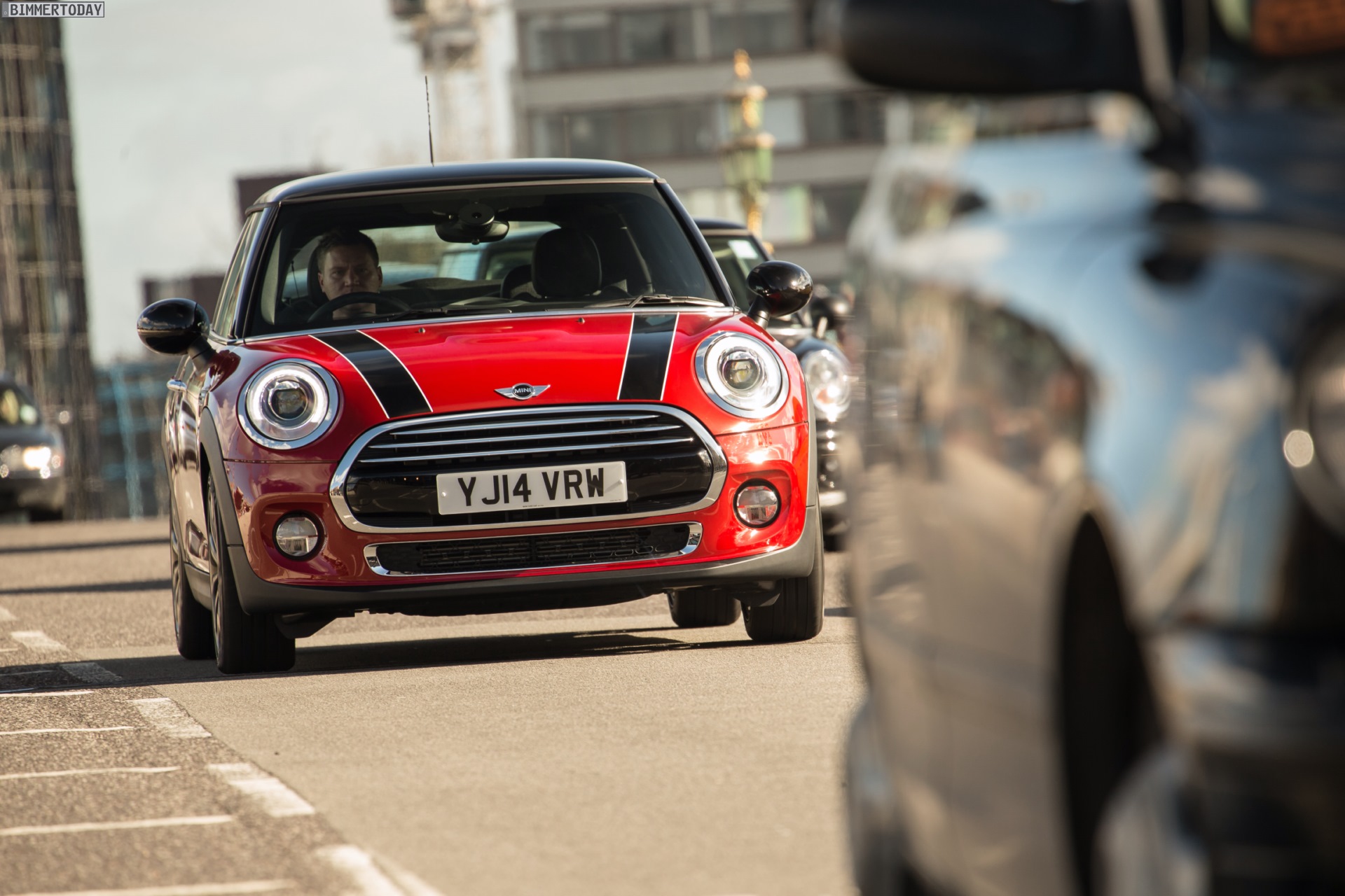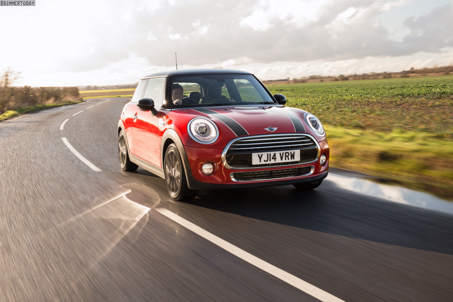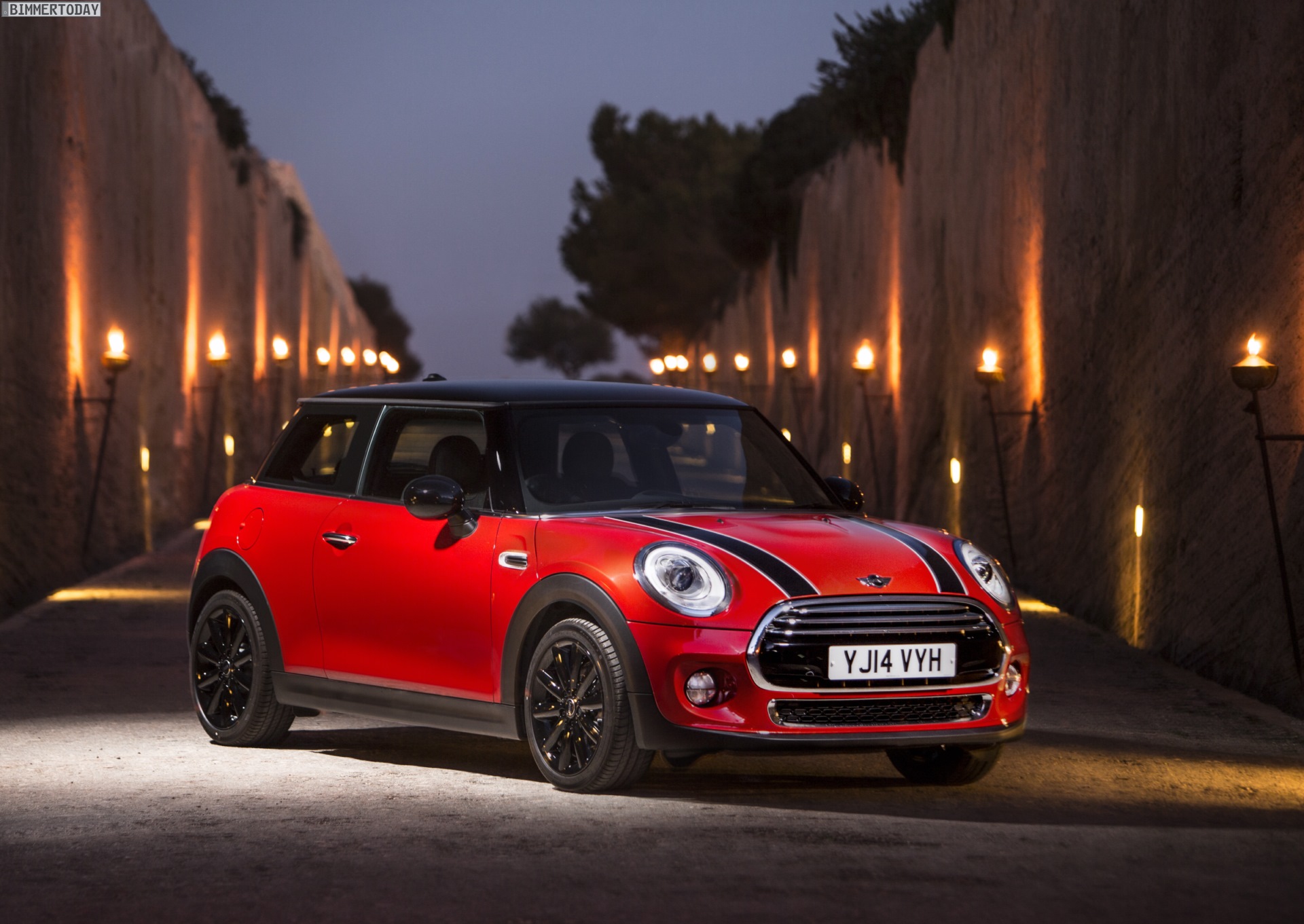 MINI Cooper D F56 in Blazing Red mit Dach und Felgen in Schwarz: