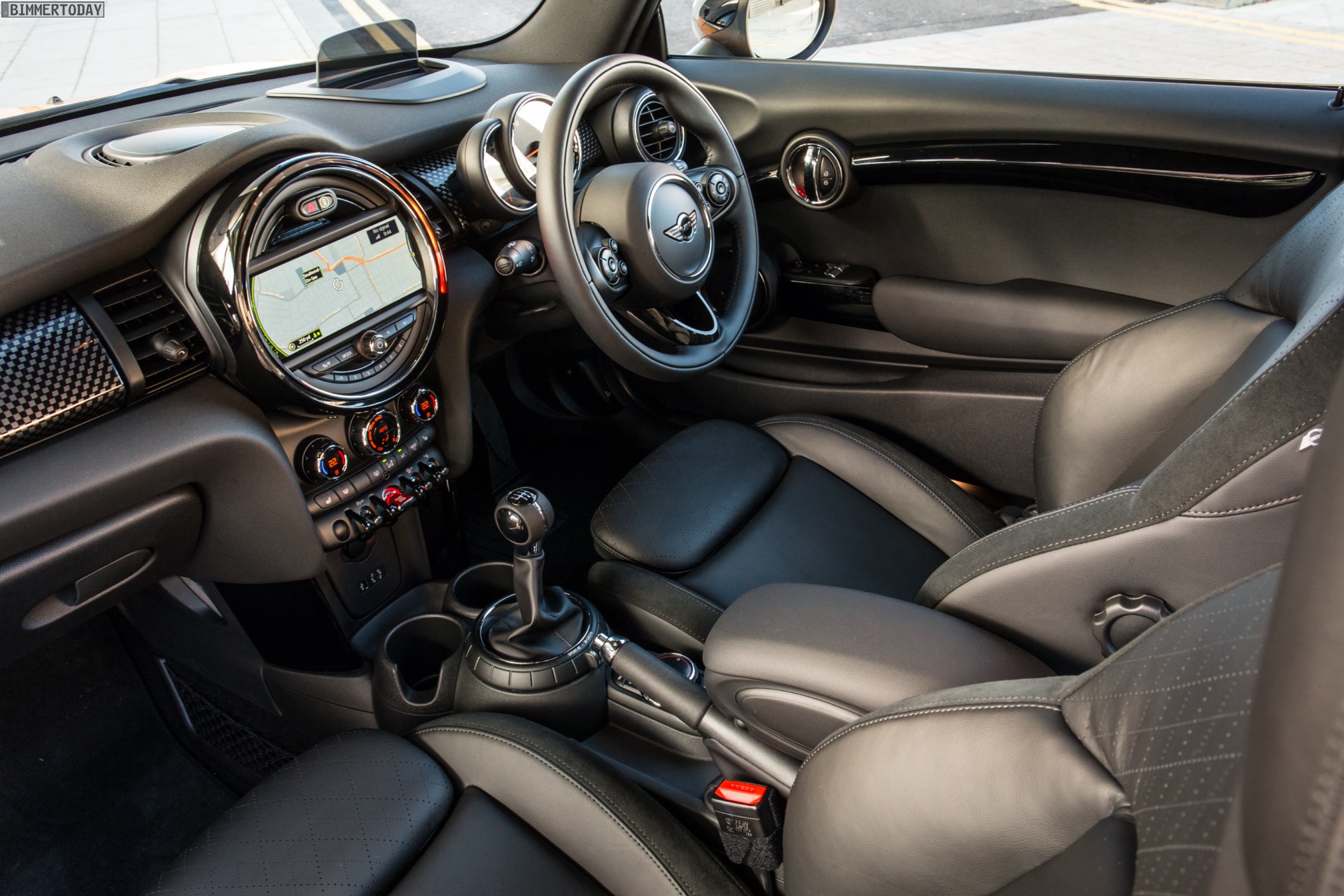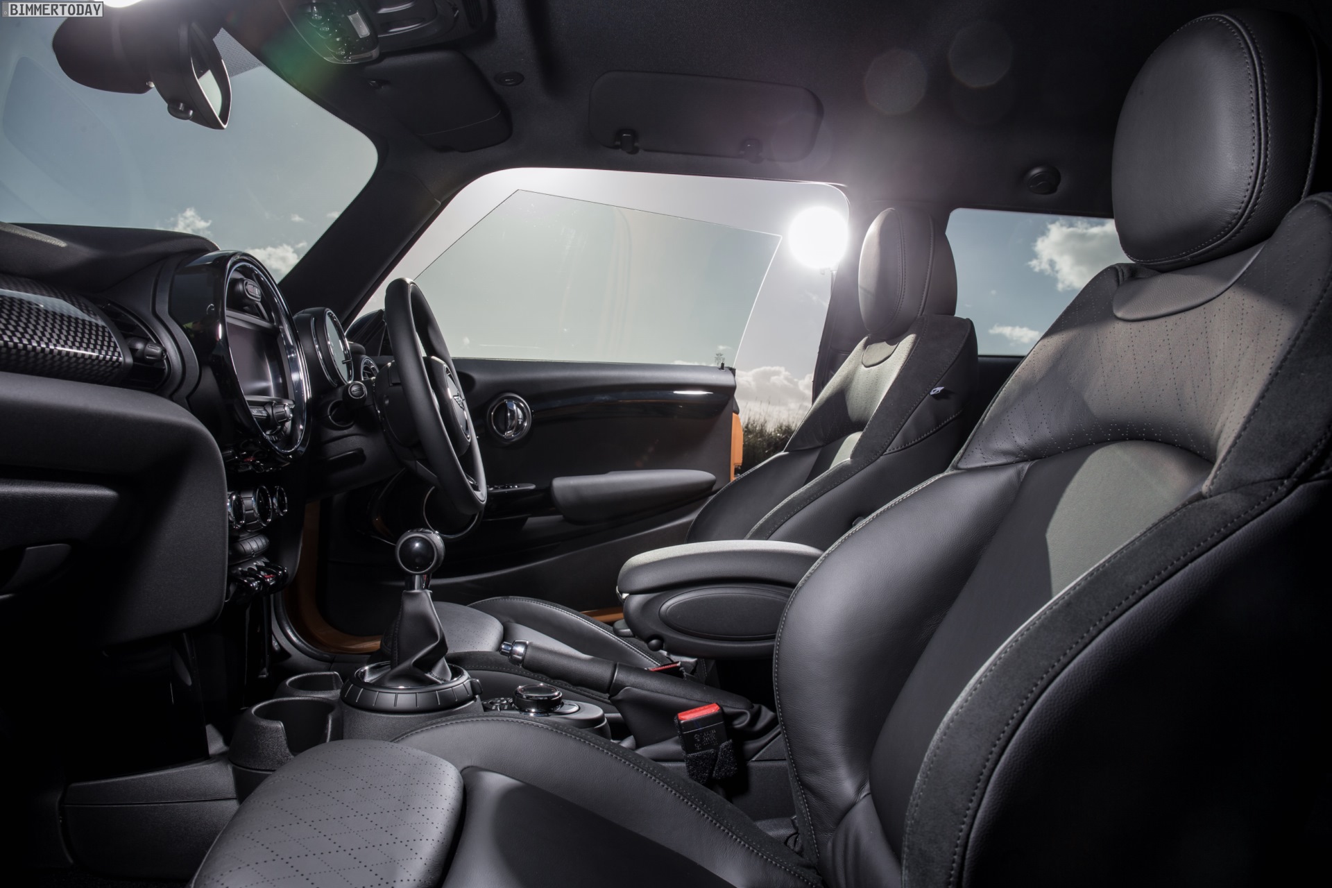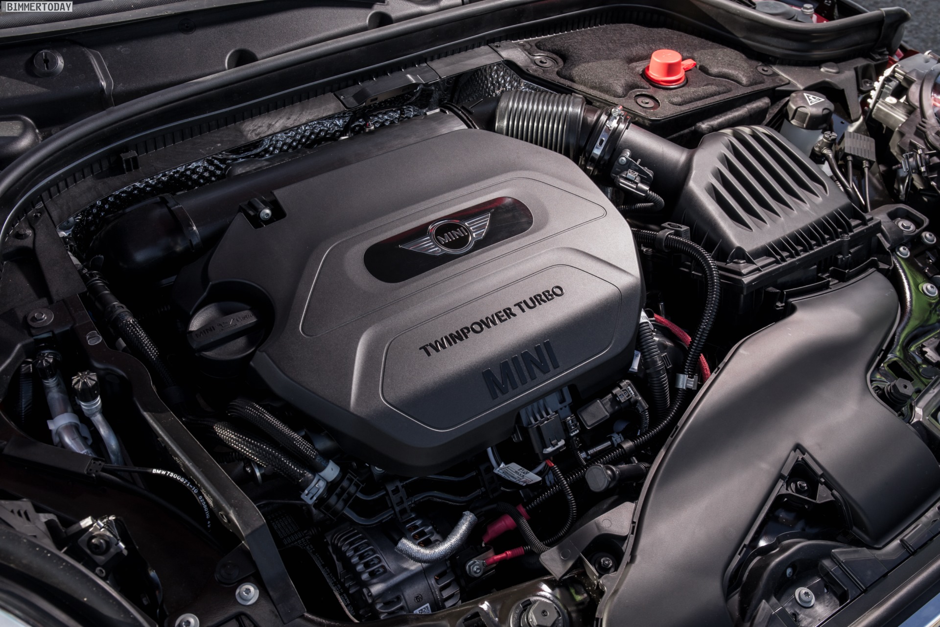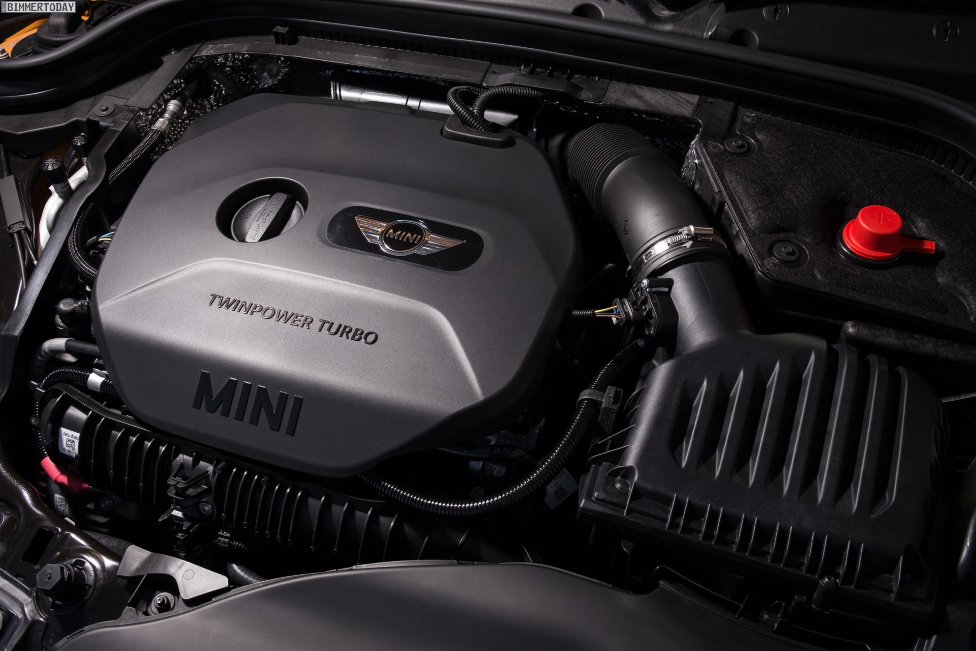 MINI Cooper D F56 in Blazing Red mit Dach und Felgen in Schwarz: