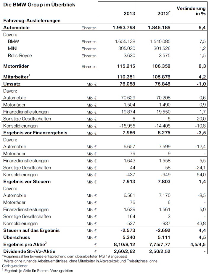 Schon vor ein paar Tagen hat die BMW Group einige Eckpunkte zum Geschäftsjahr 2013 genannt, nun folgen alle Details in der gewohnten Ausführlichkeit eines Quartalsberichts. Bestätigt werden dabei die neuen Rekord-Werte bei Absatz, Umsatz und Gewinn – nie zuvor konnte die BMW Group auf ein derart erfolgreiches Geschäftsjahr zurückblicken.