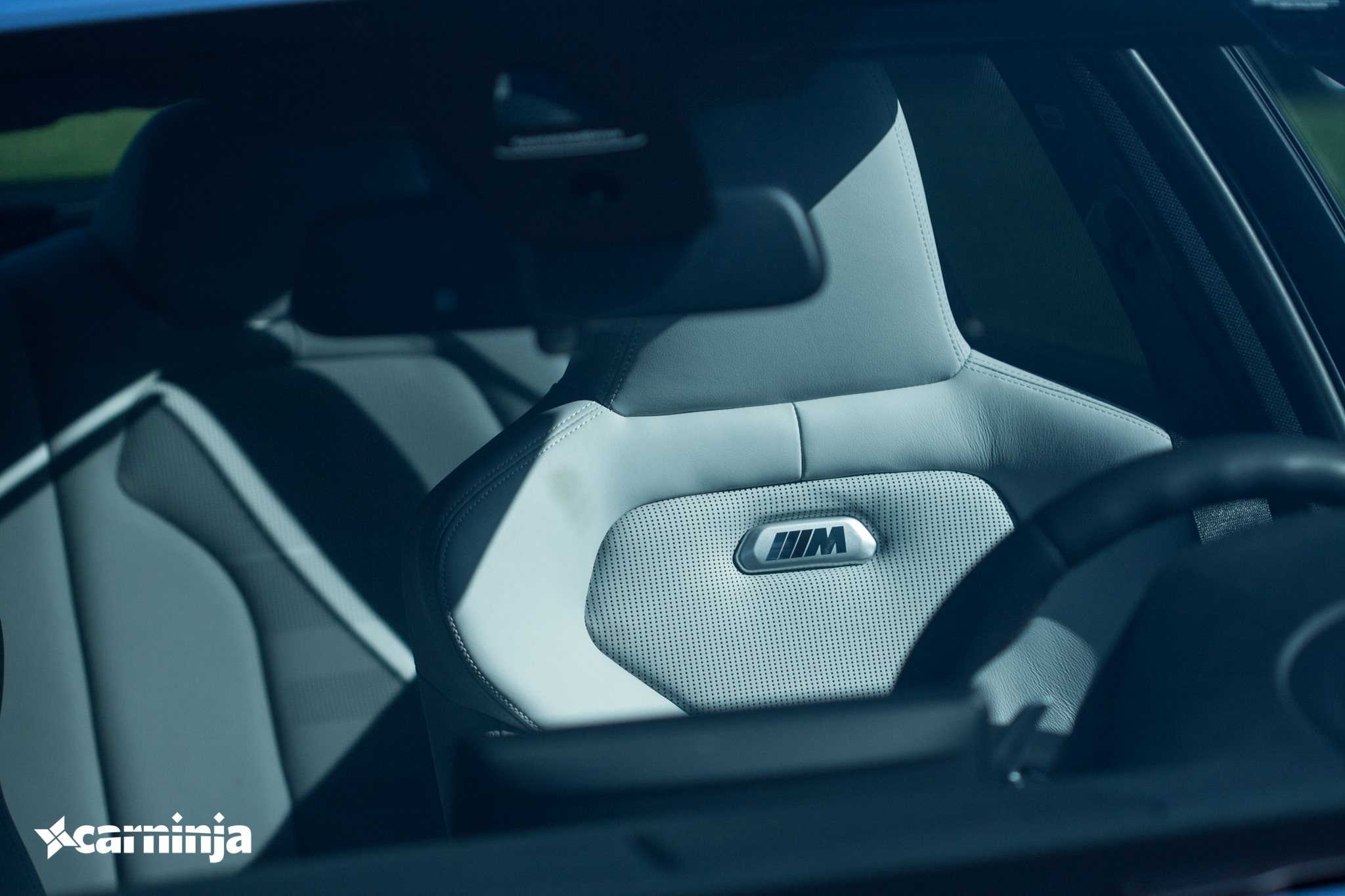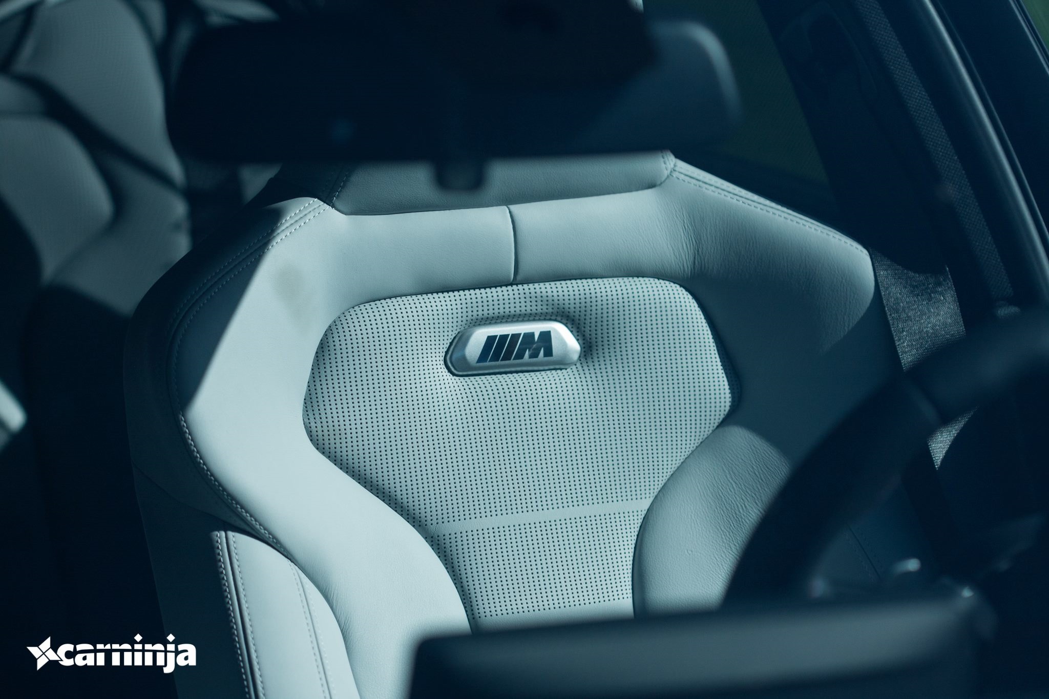 Ein weiteres interessantes Detail der gezeigten BMW M3 Limousine ist ihr Dach, denn wir sehen die Variante mit Glas-Schiebedach – und folglich nicht das serienmäßige Carbon-Dach, das für viele M3-Kunden wesentlich zum Reiz des Fahrzeugs beiträgt. Wer es hingegen weniger auffällig mag und nicht unbedingt zu einer extrovertierten Farbe wie Yas Marina Blau, Austin Yellow oder Sakhir Orange greift, kann den M3 mit Dach in Wagenfarbe noch etwas dezenter auftreten lassen.