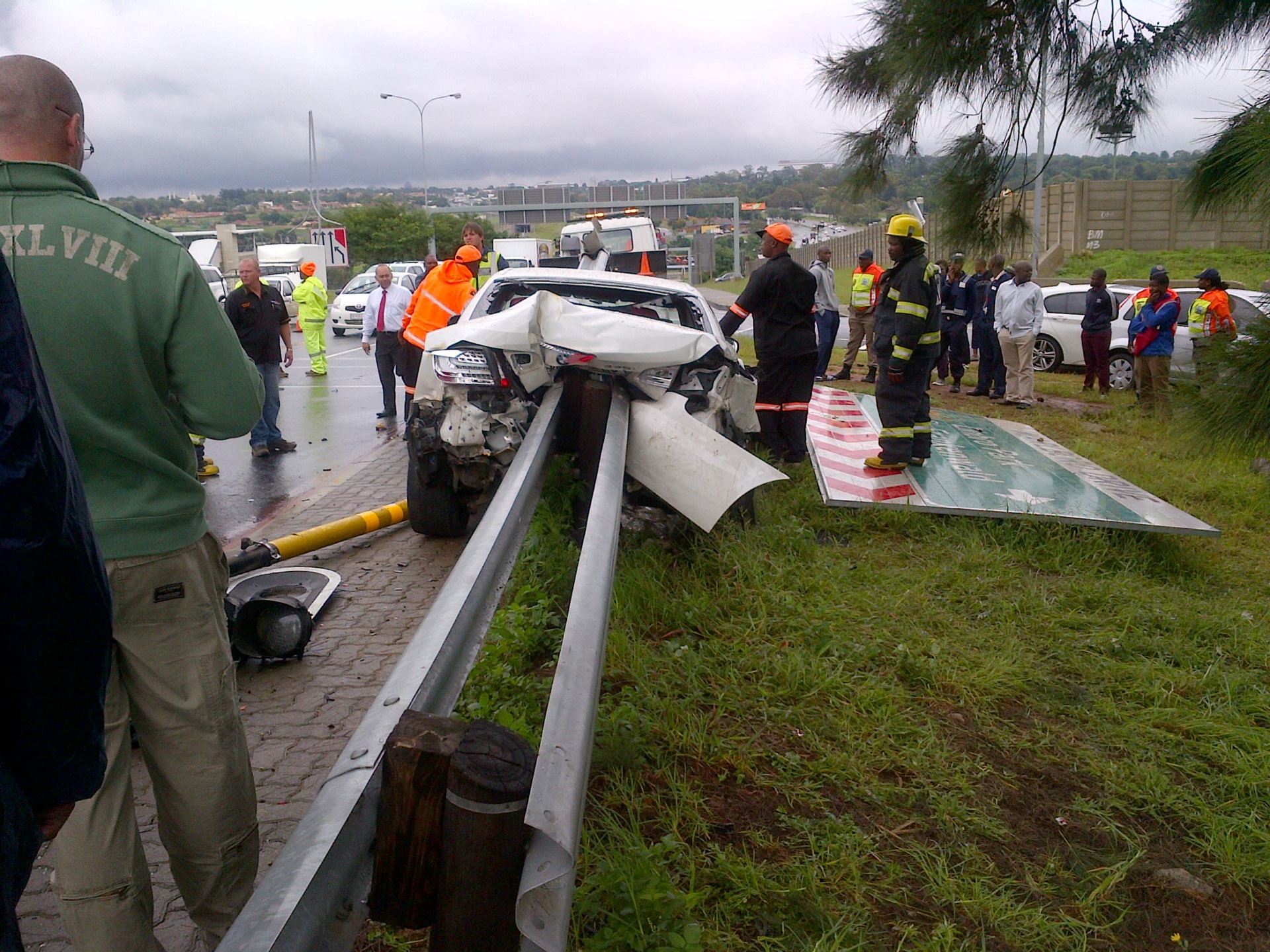 Veröffentlicht wurden die Fotos von RoadSafety.co.za, um auf die Gefahren von rasantem Fahren auf nasser Straße aufmerksam zu machen. Denn auch wenn im konkreten Fall erfreulicherweise nur materielle Werte zerstört wurden, hätte der Unfall bei minimal anderem Verlauf auch Menschenleben fordern können.