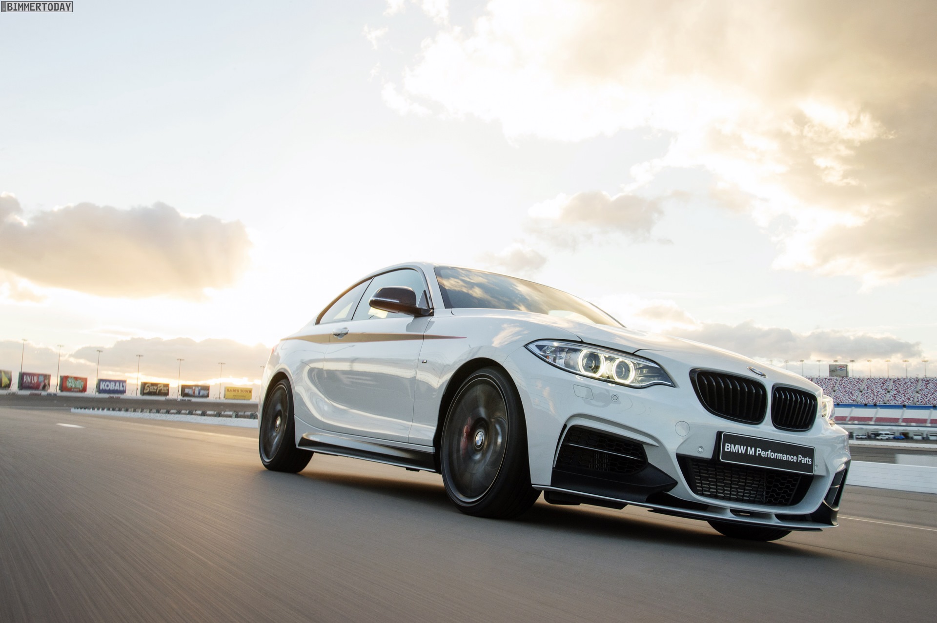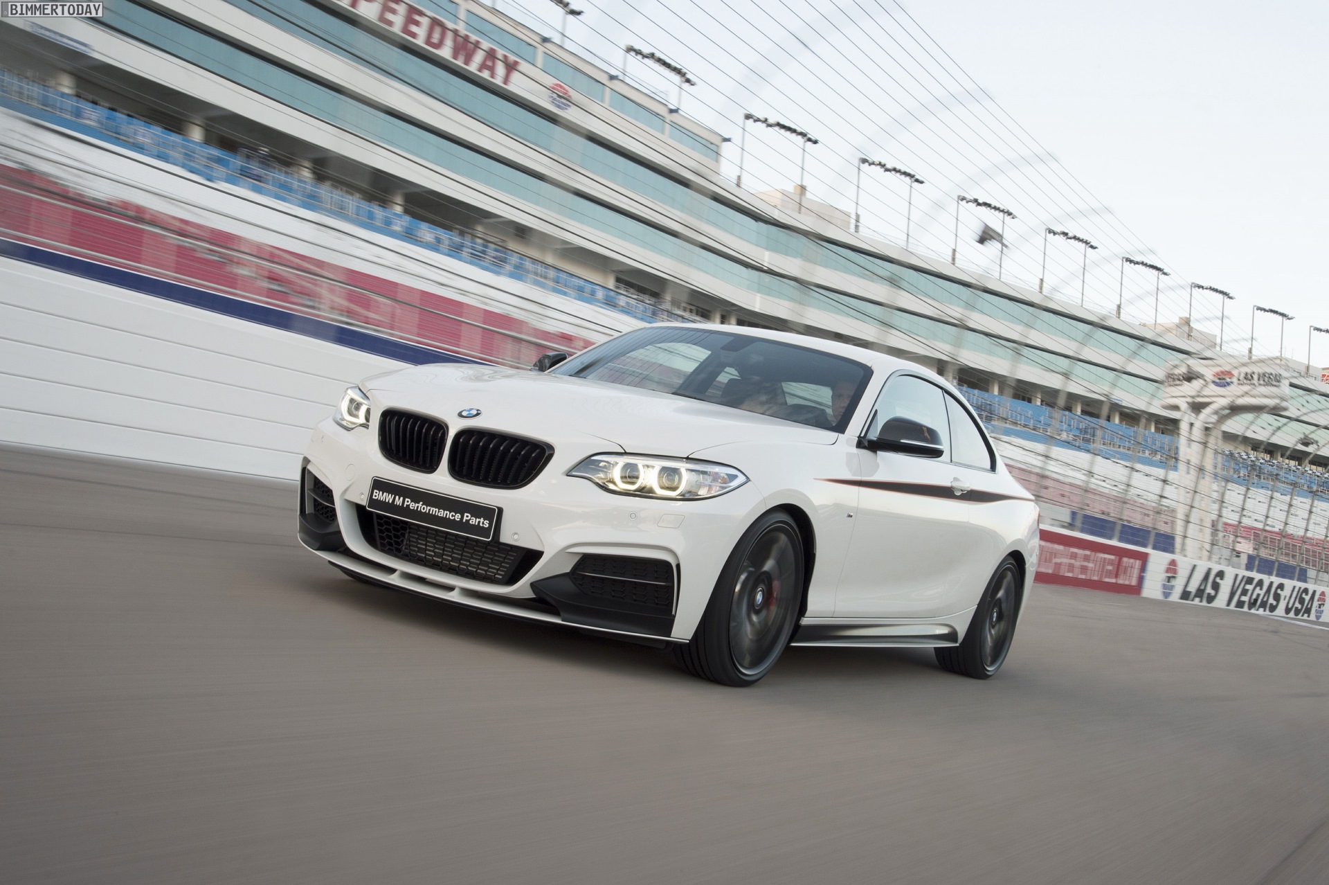 Allem Anschein nach sind die Fotos auf dem Las Vegas Motor Speedway entstanden, was den scharfen 2er dank Rennstrecken-Hintergrund noch dynamischer wirken lässt. Das Tuning-Programm umfasst unter anderem ein Performance-Fahrwerk mit 20 Millimeter Tieferlegung und zumindest für den M235i auch ein drehmomentfühlendes, mechanisches Sperrdifferenzial.