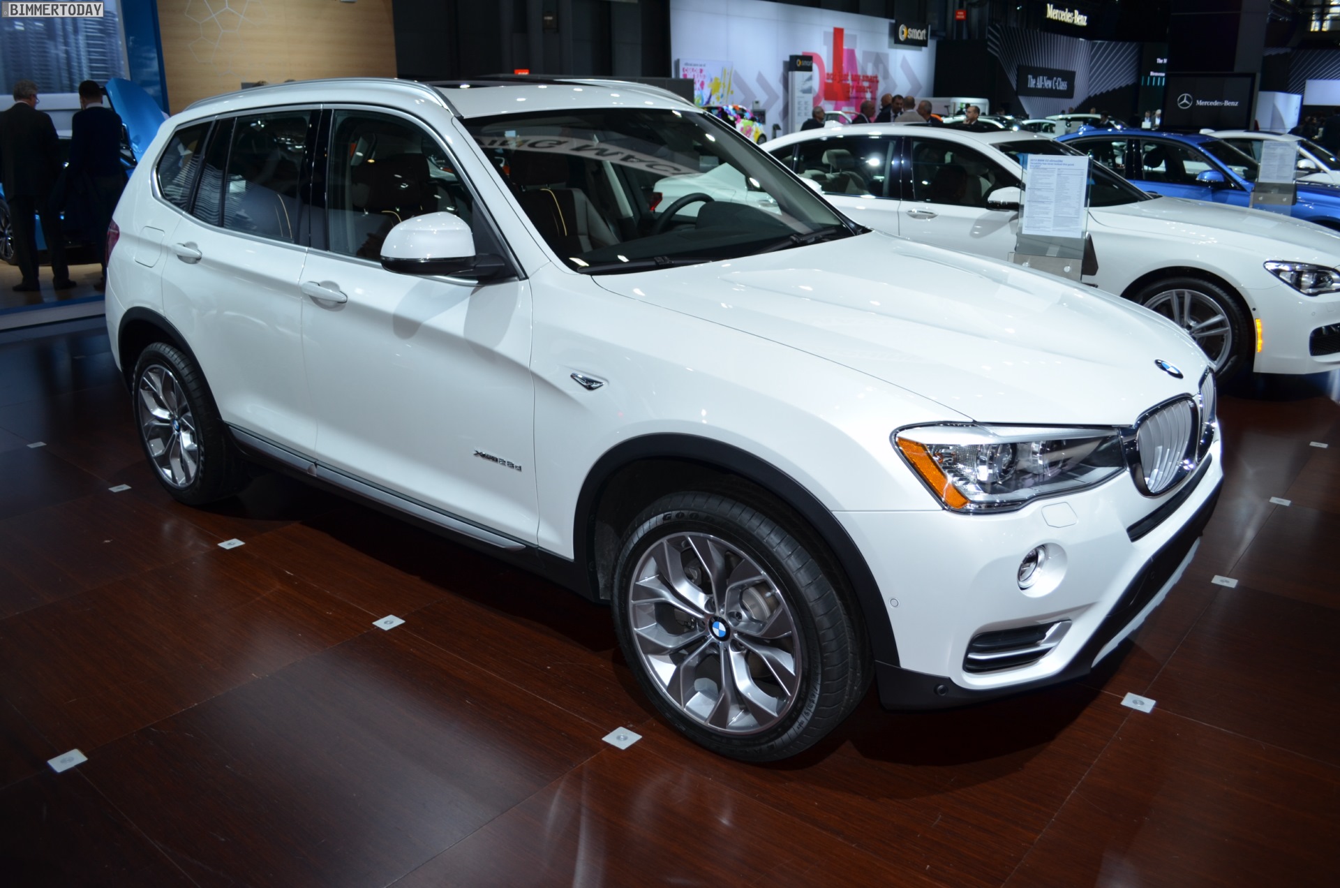 Wenige Wochen nach der Weltpremiere in Genf ist das BMW X3 Facelift nun auch auf der New York Auto Show zu sehen. Dasleicht überarbeitete Kompakt-SUV aus München wird auf der NYIAS 2014 in Alpinweiß und mit xLine-Paket präsentiert. Naturgemäß handelt es sich um ein US-Modell mit zusätzlichen orangen Reflektoren – und auch die Motorisierung klingt für europäische Ohren ungewohnt, denn wir sehen einen BMW X3 xDrive28d, der den gleichen Motor wie der 328d nutzt.