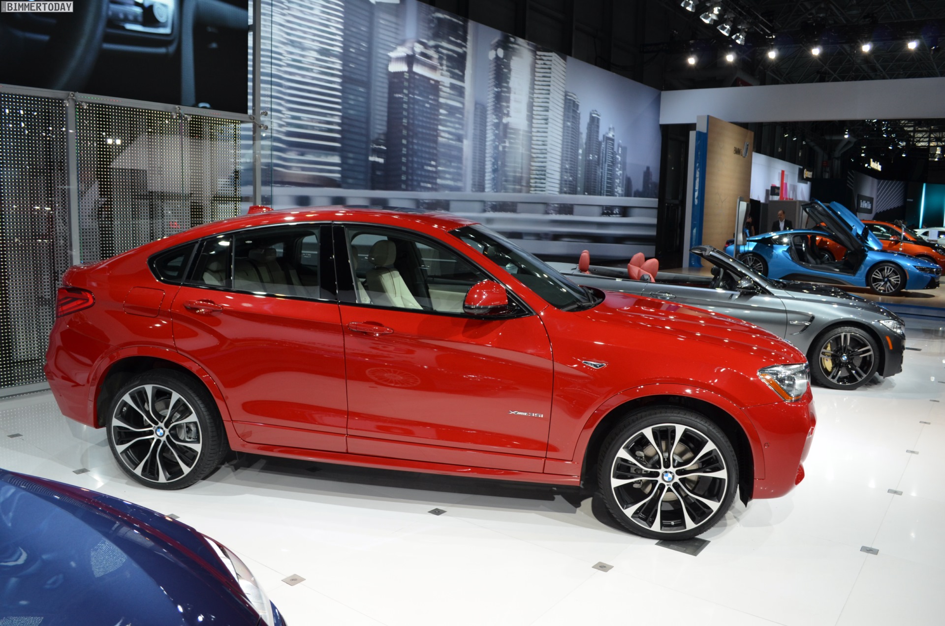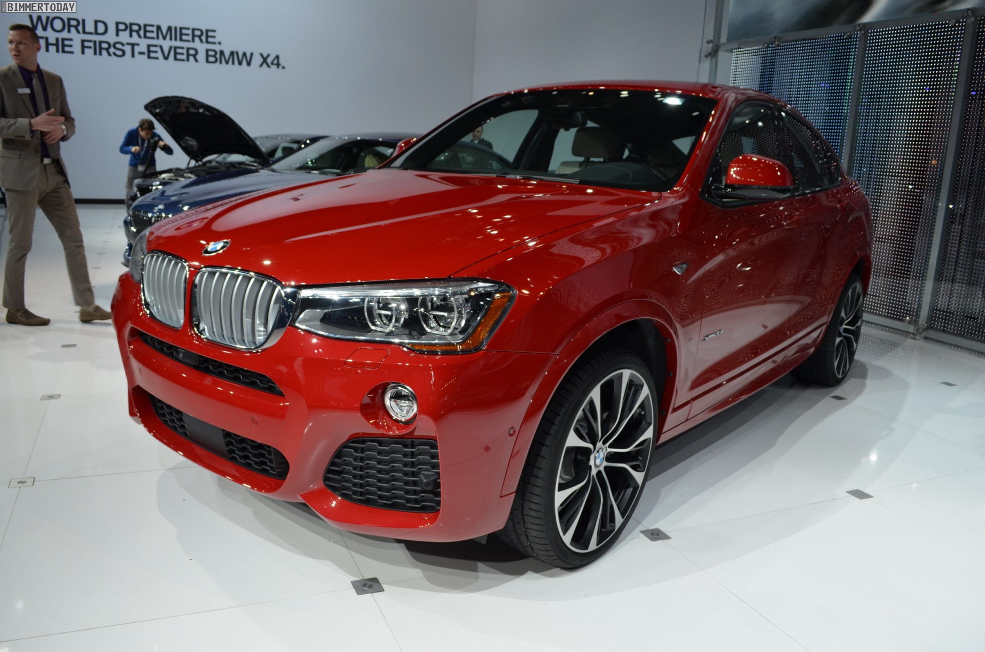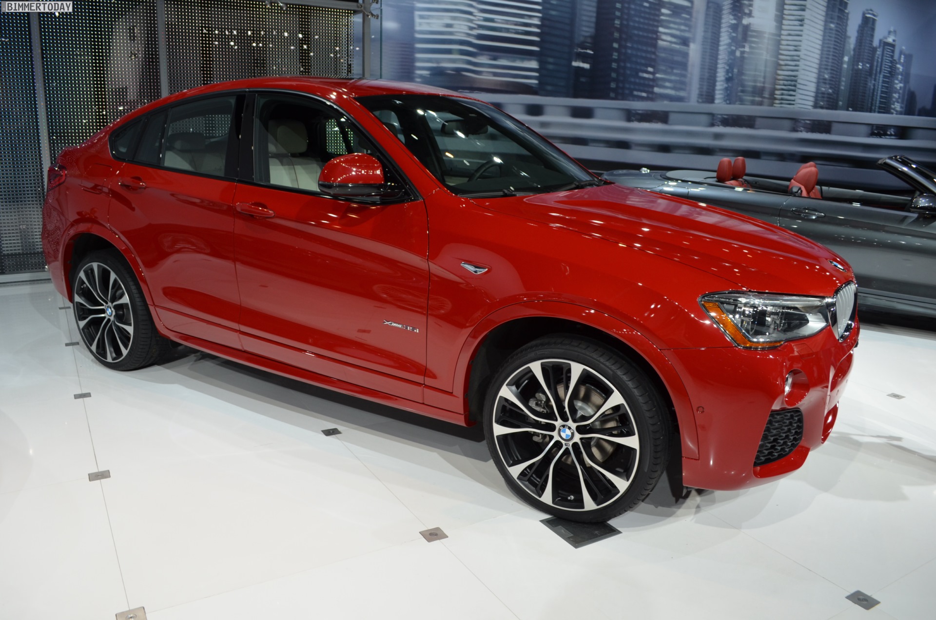 Die ersten Fotos vom BMW X4 F26 wurden noch während des Genfer Salons veröffentlicht, den kritischen Blicken des Publikums stellt sich das zweite SUV-Coupé aus München aber erstmals auf der New York Auto Show 2014. Der in den USA gebaute X3-Ableger glänzt bei seiner Weltpremiere mit M Sportpaket und in der nur für dieses Paket erhältlichen Farbe Melbourne Rot.