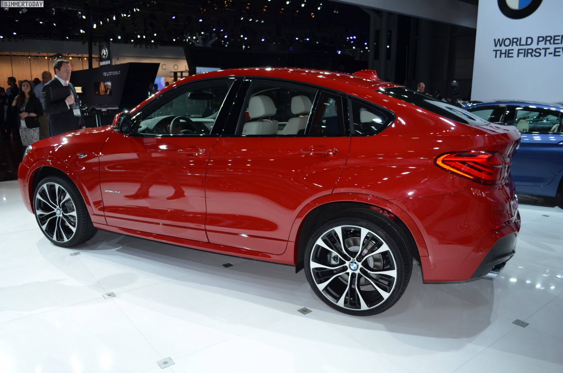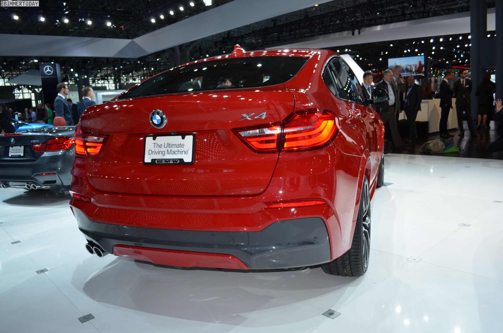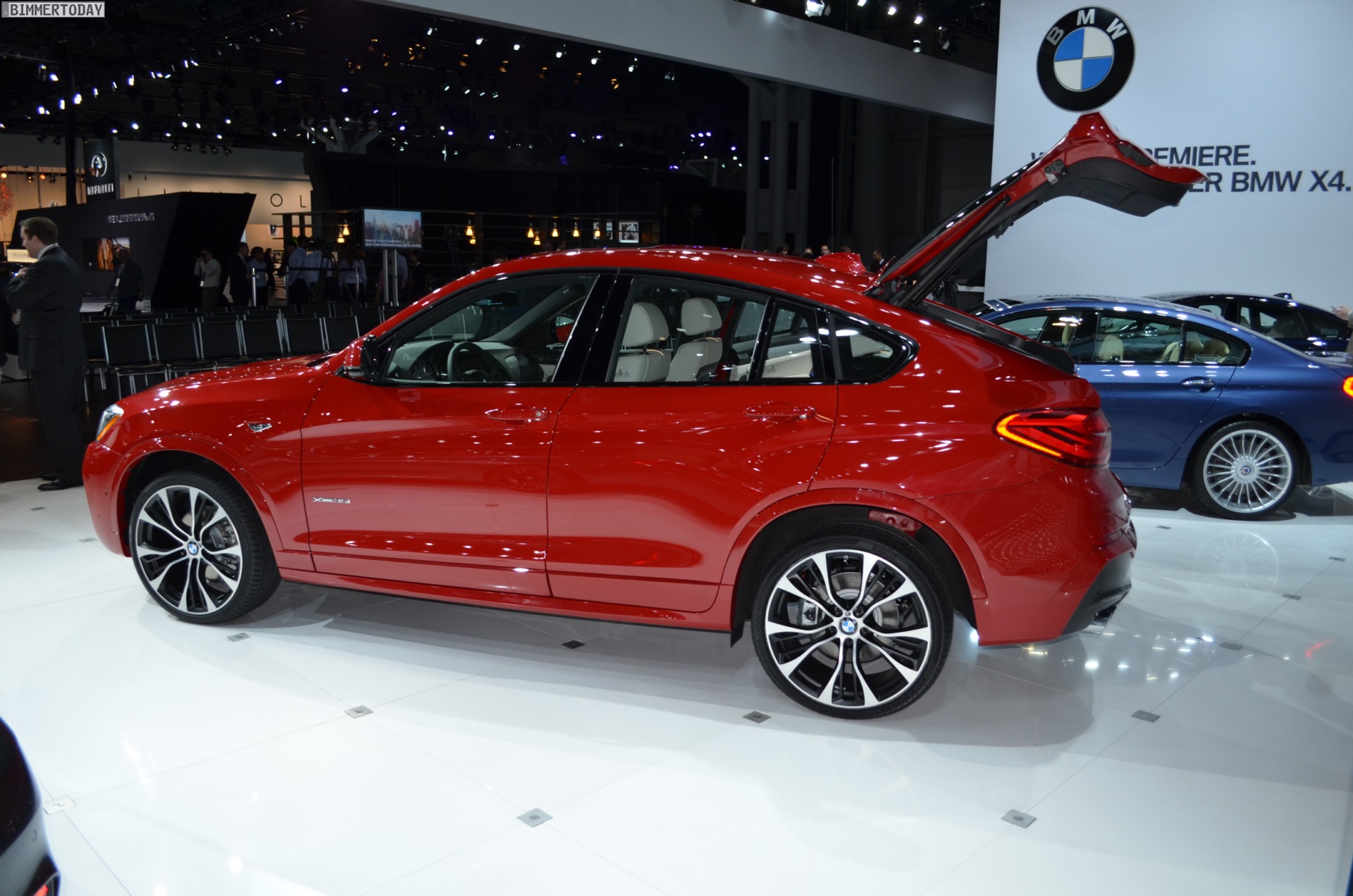 Die ersten Fotos vom BMW X4 F26 wurden noch während des Genfer Salons veröffentlicht, den kritischen Blicken des Publikums stellt sich das zweite SUV-Coupé aus München aber erstmals auf der New York Auto Show 2014. Der in den USA gebaute X3-Ableger glänzt bei seiner Weltpremiere mit M Sportpaket und in der nur für dieses Paket erhältlichen Farbe Melbourne Rot.