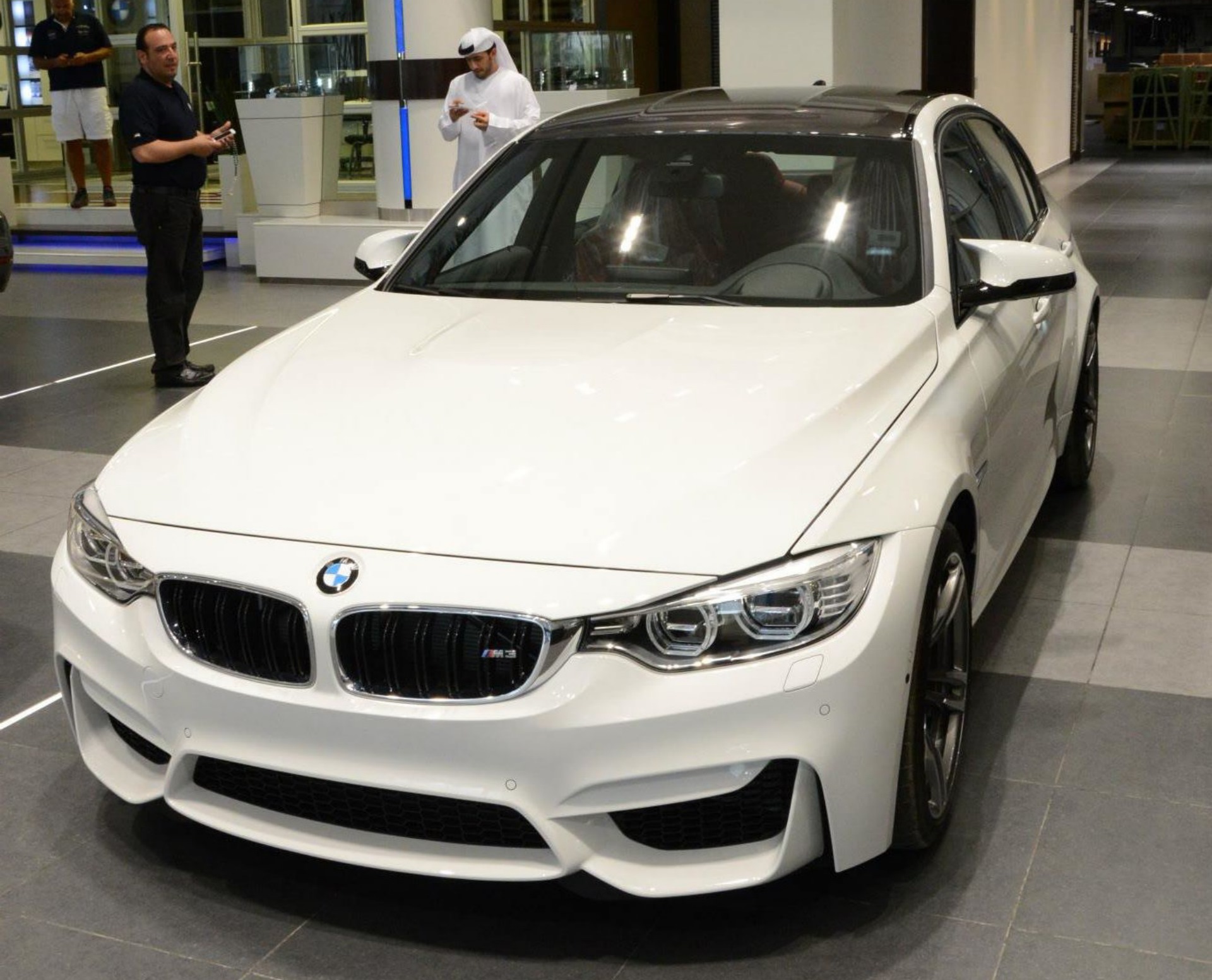 Per Facebook teilen die Araber nun einige Fotos, die uns einen BMW M3 F80 in Weiß im dortigen Showroom zeigen. Auf die schwarzen Felgen als Kontrast wurde bei der Konfiguration verzichtet, mit dem Carbon-Dach verfügt die M3 Limousine aber über einen anderen, deutlich exklusiveren Hingucker.