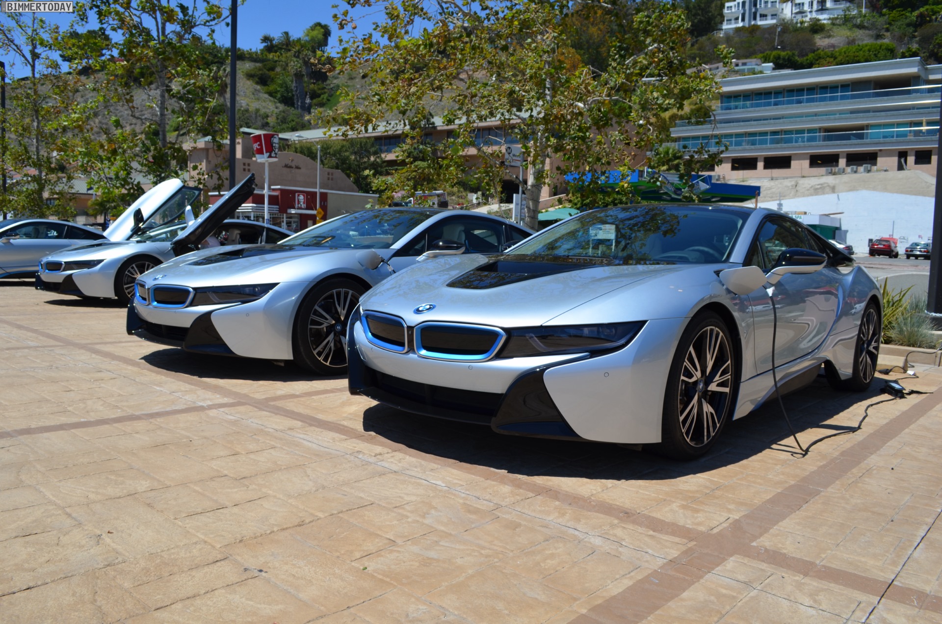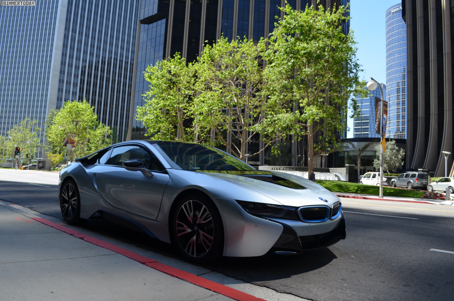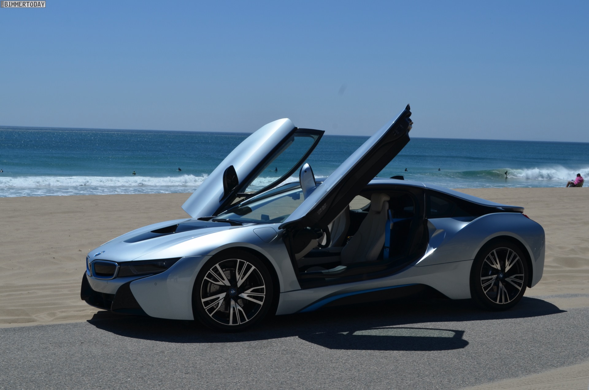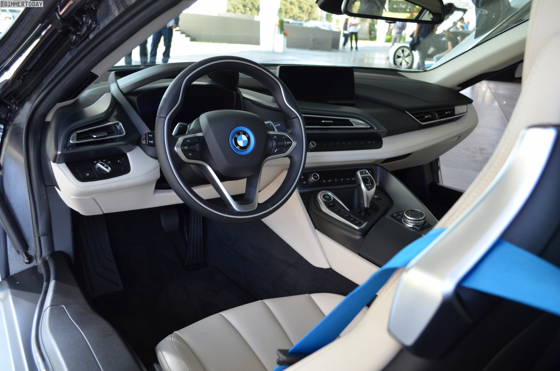 Glaubt man den Blicken der Menschen in Los Angeles, spielt die Anzahl der Zylinder für die Begeisterung ganz sicher keine Rolle – unzählige Male wird mit wilden Gesten auf den i8 hingewiesen, werden Smartphones gezückt, der i8 aus allen Winkeln fotografiert. Jeder Ampelstopp wird zum Foto-Shooting. Und auch an Bord des BMW i8 gibt es keine Zweifel: Der Einstieg durch die Flügeltüren, die extrem tiefe Sitzposition, die um 12 Grad zum Fahrer geneigten Armaturen. Ja, wir sitzen in einem Sportwagen. Und die Anzal der Zylinder ist nach wenigen Metern ohnehin vergessen.