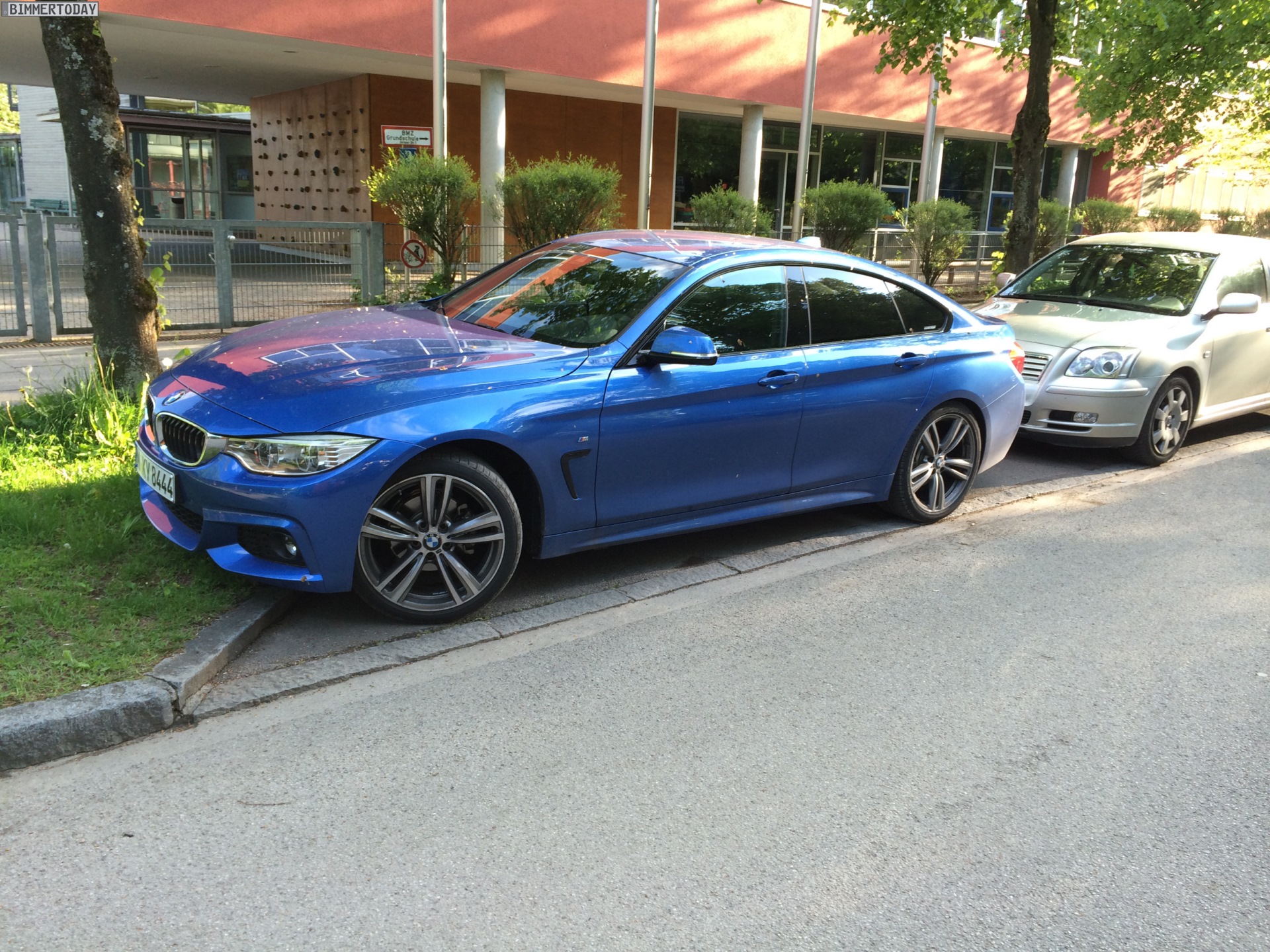 Schon direkt zur Weltpremiere auf dem Genfer Salon war das BMW 4er Gran Coupé F36 mit M Sportpaket ausgestattet, allerdings stand in Kombination mit der Lackierung in Carbonschwarz dennoch ein in erster Linie elegantes Auto vor uns. Unser Leser Christof hat den viertürigen 4er nun in Estorilblau erwischt und beschert uns so den bisher dynamischsten Eindruck von der neuen Mittelklasse-Alternative aus München.