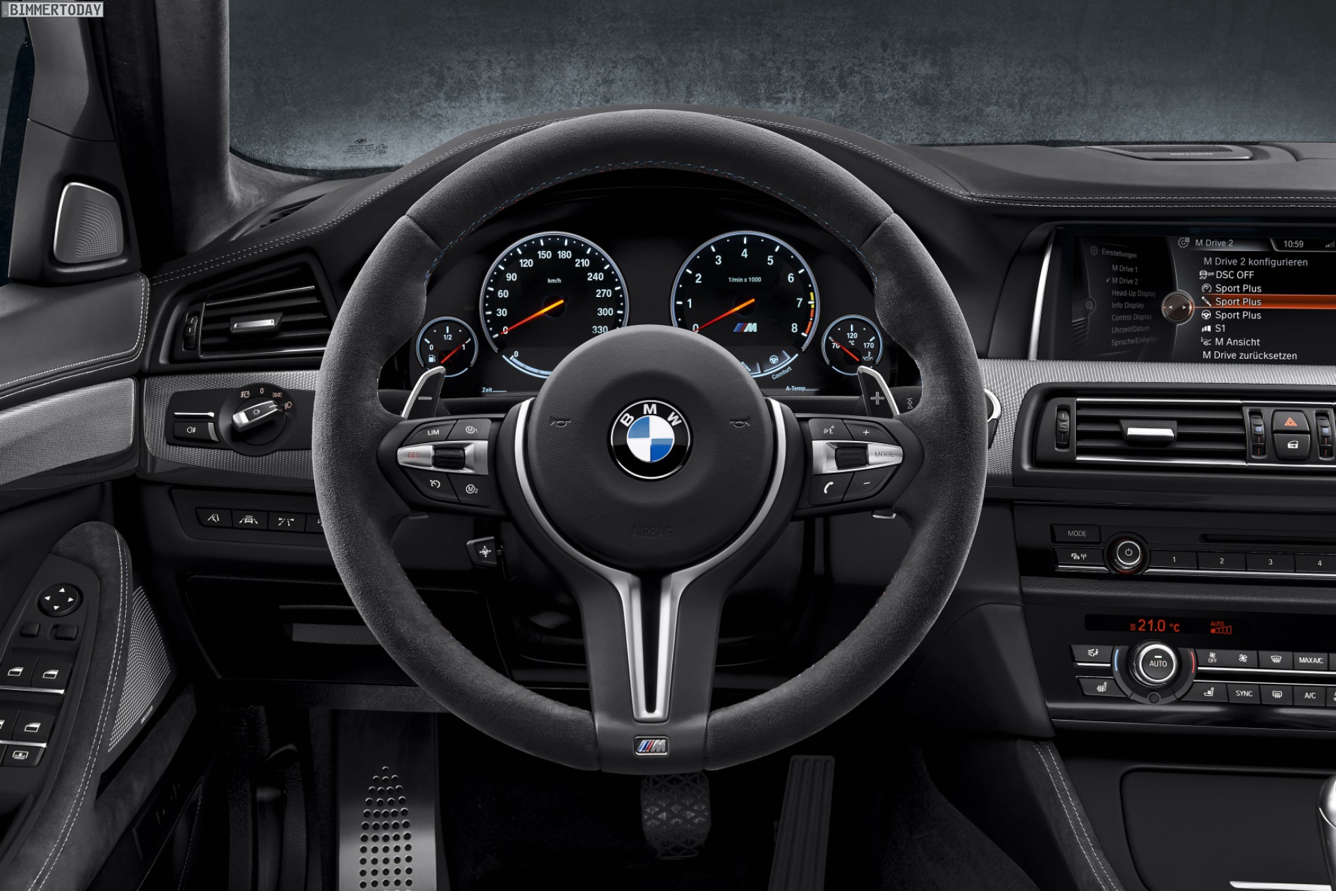 Die von uns schon vor rund einem Jahr enthüllte Plakette samt “1/300”-Hinweis ist in die Interieurleisten Aluminium Trace integriert, Alcantara an Lenkrad, Mittelkonsole und Türverkleidungen lässt die 300 schärfsten Exemplare des BMW M5 F10 LCI gleichermaßen edel und sportlich auftreten. Und eines ist jetzt schon sicher: Wer Lust auf das Sondermodell hat, sollte beim Unterschreiben des Kaufvertrags ähnlich schnell unterwegs sein wie der M5 in den letzten 30 Jahren!