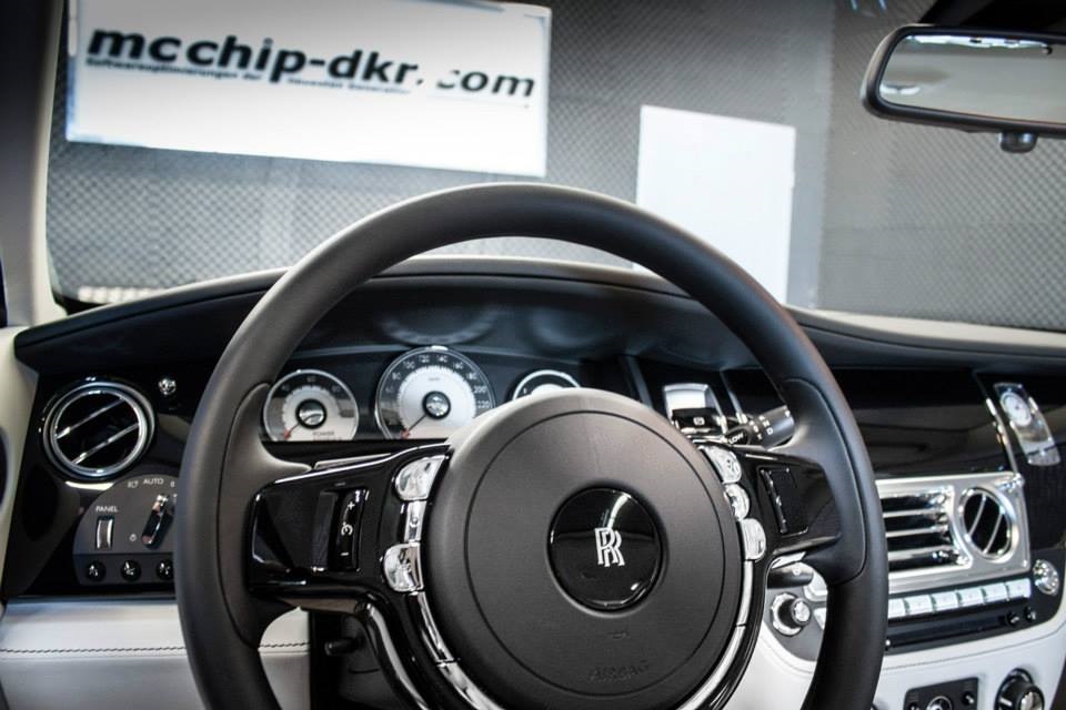 Allein per Chiptuning steigert McChip die Leistung des Rolls-Royce Wraith auf 697 PS, das Drehmoment klettert um 120 auf gewaltige 920 Newtonmeter. Die Kennfeldoptimierung wird innerhalb von einem Tag durchgeführt und ist folglich kaum mit Ausfallzeiten verbunden, auch wenn die meisten Wraith-Fahrer nicht nur dieses eine Auto in ihrem Fuhrpark haben dürften.