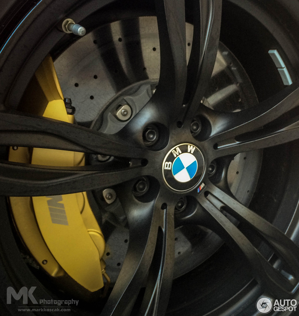Dank der neuen Perspektiven sehen wir außerdem schwarze Felgen, die den Blick auf die BMW M Carbon-Keramik-Bremsanlage nur notdürftig verdecken. Auch die Kiemen sind in Schwarz oder Chrom Dunkel ausgeführt, darunter macht ein Akrapovic-Aufkleber auf die verbaute Abgasanlage aufmerksam und erklärt dem kundigen Nebenmann, warum dieser BWM M6 derart böse klingt.