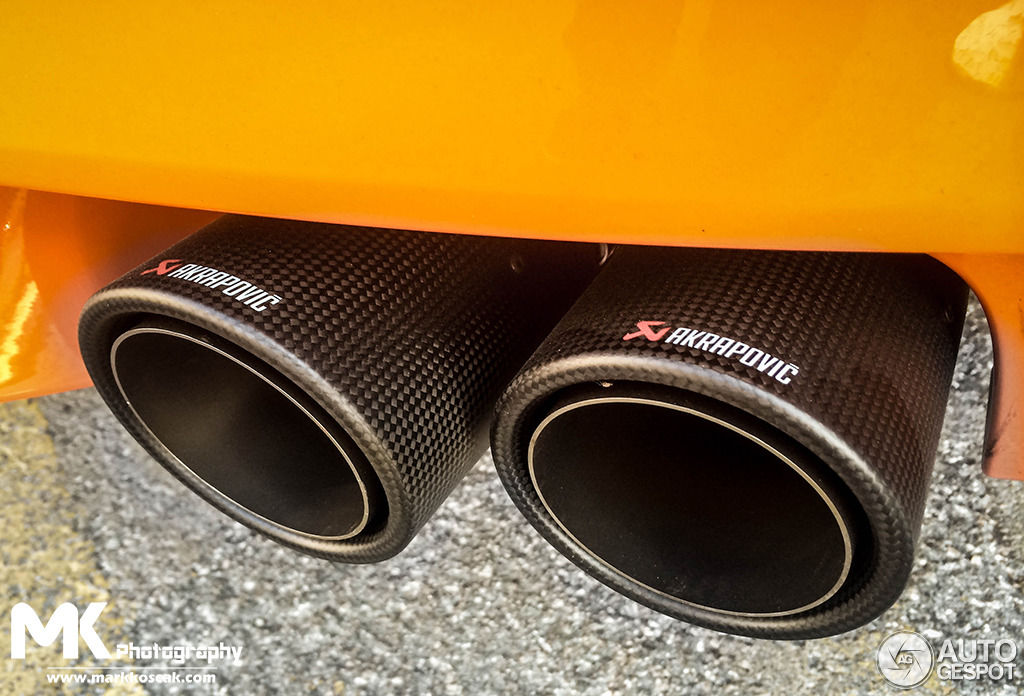 Die Akrapovic-Abgasanlage mit ihren Carbon-Aufsätzen für alle vier Endrohre sorgt auch am Heck für individuelle Akzente. Endgültige Klarheit hätte ein Blick in den Innenraum bringen können, ein entsprechendes Foto fehlt aber leider – auf den offiziellen Bildern zum Wittmann-M6 sehen wir Kontrastnähte und Interieurleisten in Feuerorange.