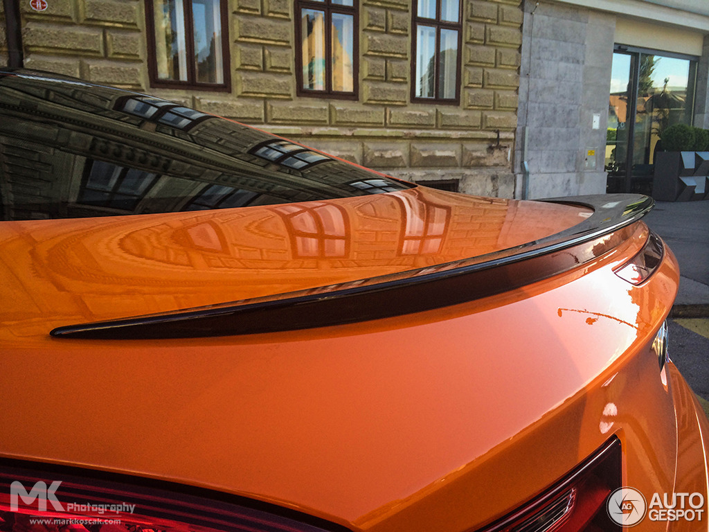 Genau wie auf den offiziellen Fotos sind auch hier schwarze Nieren sowie Heckspoiler-Lippe und Außenspiegelkappen aus Carbon erkennbar, dazu kommt natürlich das serienmäßige Carbon-Dach.