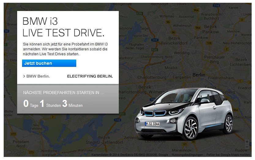 Weit über 100.000 Anfragen für Probefahrten mit dem BMW i3 liegen in München vor und wollen der Reihe nach bearbeitet werden. Da kann es leider etwas länger dauern, bis man das Elektroauto tatsächlich fahren und kennenlernen kann. Kurzfristige Abhilfe gibt es nun in der Hauptstadt, denn unter dem Motto “Electrifying Berlin” können Interessenten mit Hilfe der Facebook-Seite der neuen BMW Niederlassung Berlin eine Probefahrt fast ohne Wartezeit arrangieren.