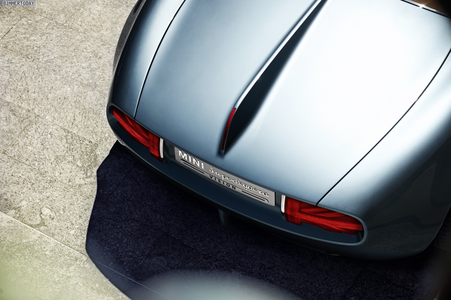 Bei der Karosserie handelt es sich um ein in Handarbeit entstandenes Einzelstück, die typischen Roadster-Proportionen mit langer Motorhaube, kurzen Überhängen und überwölbten Radhäusern erinnern an frühere Klassiker des britischen Automobilbaus. Die Seitenansicht des MINI Superleggera Vision erhält durch die Touring-Linie einen besonderen Akzent, der sich über die gesamte Länge der Aluminium-Außenhaut erstreckt.