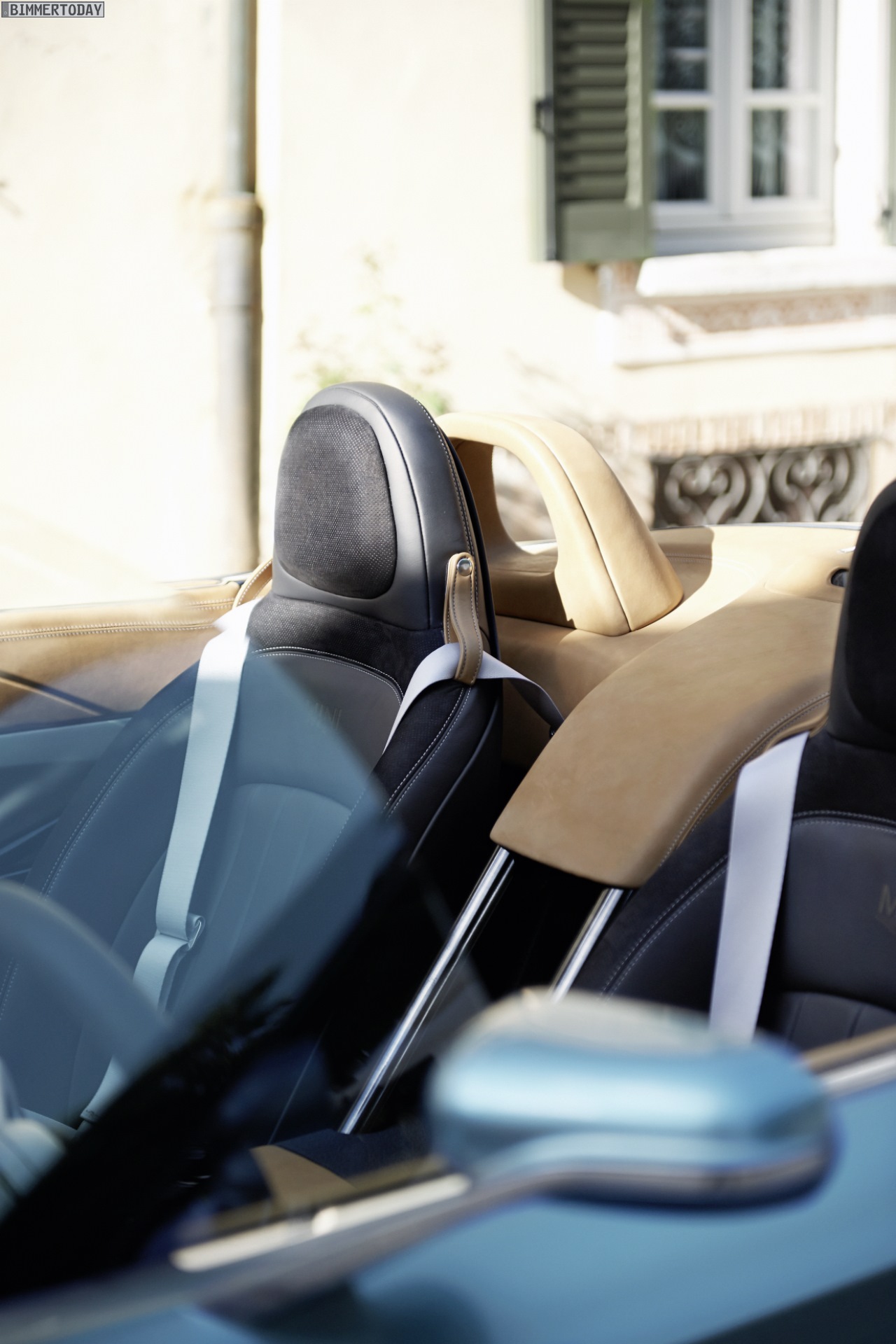 Der Innenraum des Unikats greift die Besonderheiten des Exterieurs auf, beispielsweise besteht die Armaturentafel ebenfalls aus einem einzigen Aluminium-Blech – allerdings in etwas roherem Zustand und ganz bewusst ohne Lackierung, um auf die Entstehung des Fahrzeugs und die Arbeitsweise im klassischen Karosseriebau hinzuweisen. Neben dem unlackierten und von Hand bearbeiteten Aluminium prägt nahezu naturbelassenes Leder das hochwertige, aber auf das Notwendigste reduzierte Interieur.