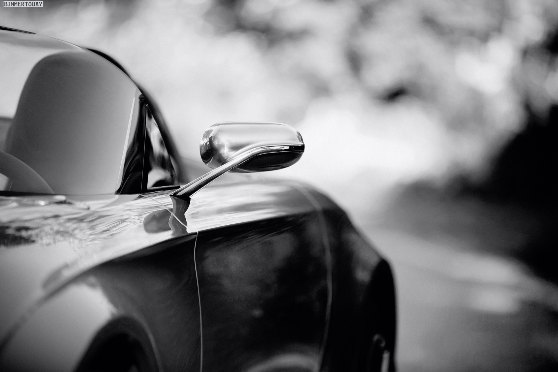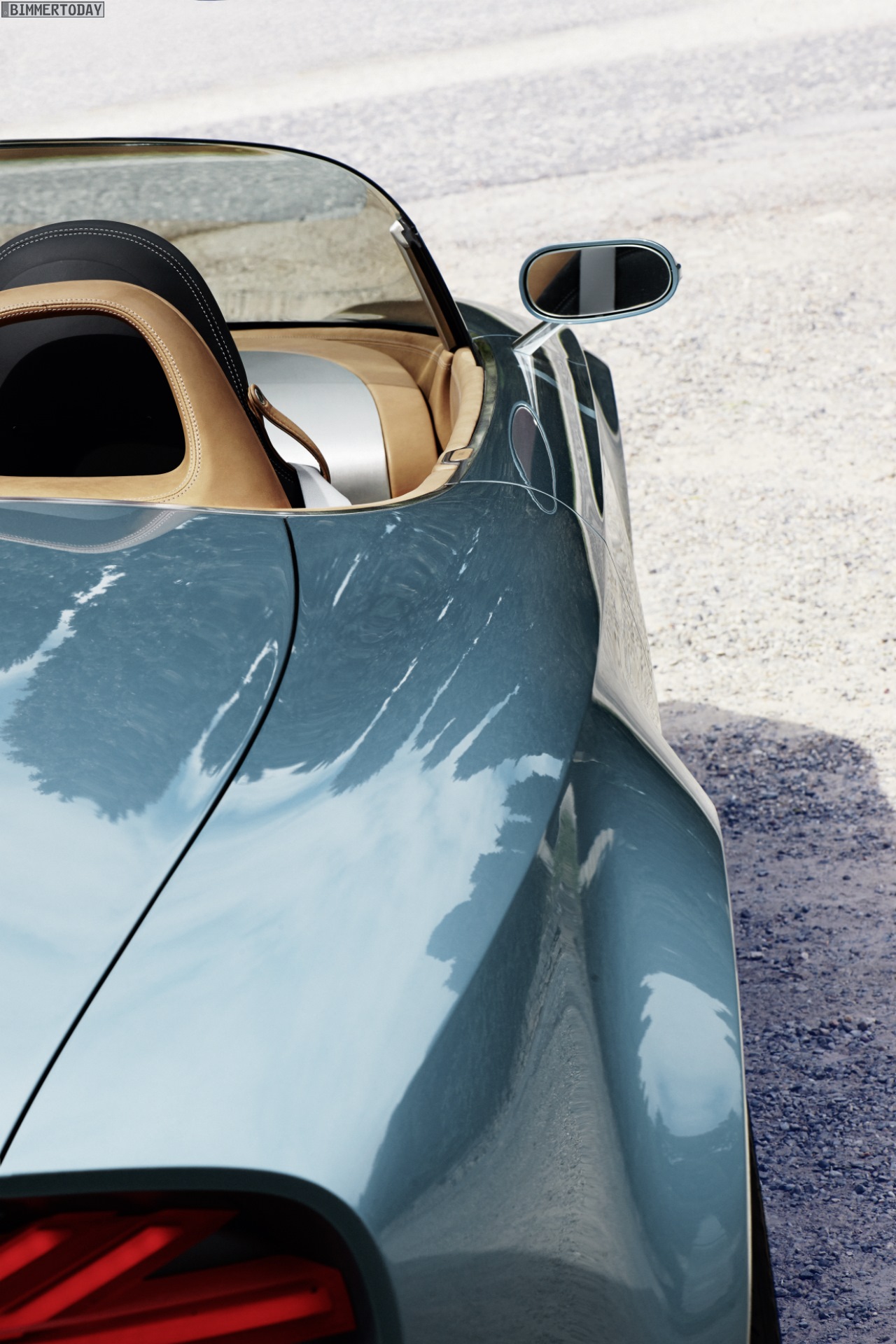 Typisch für die Arbeit der Carrozzeria Touring Superleggera ist auch die geringe Anzahl von Fugen, die durch die aufwendige und mit automatisierten Maschinen kaum zu realisierende Arbeit mit besonders großen Aluminium-Blechen möglich wird. Betont wird die elegante Formensprache durch die eigens entwickelte Lackierung in hellem Como Blue. Die Rückleuchten präsentieren sich als zweigeteilter Union Jack und betonen so die britische Seite der Design-Kooperation.