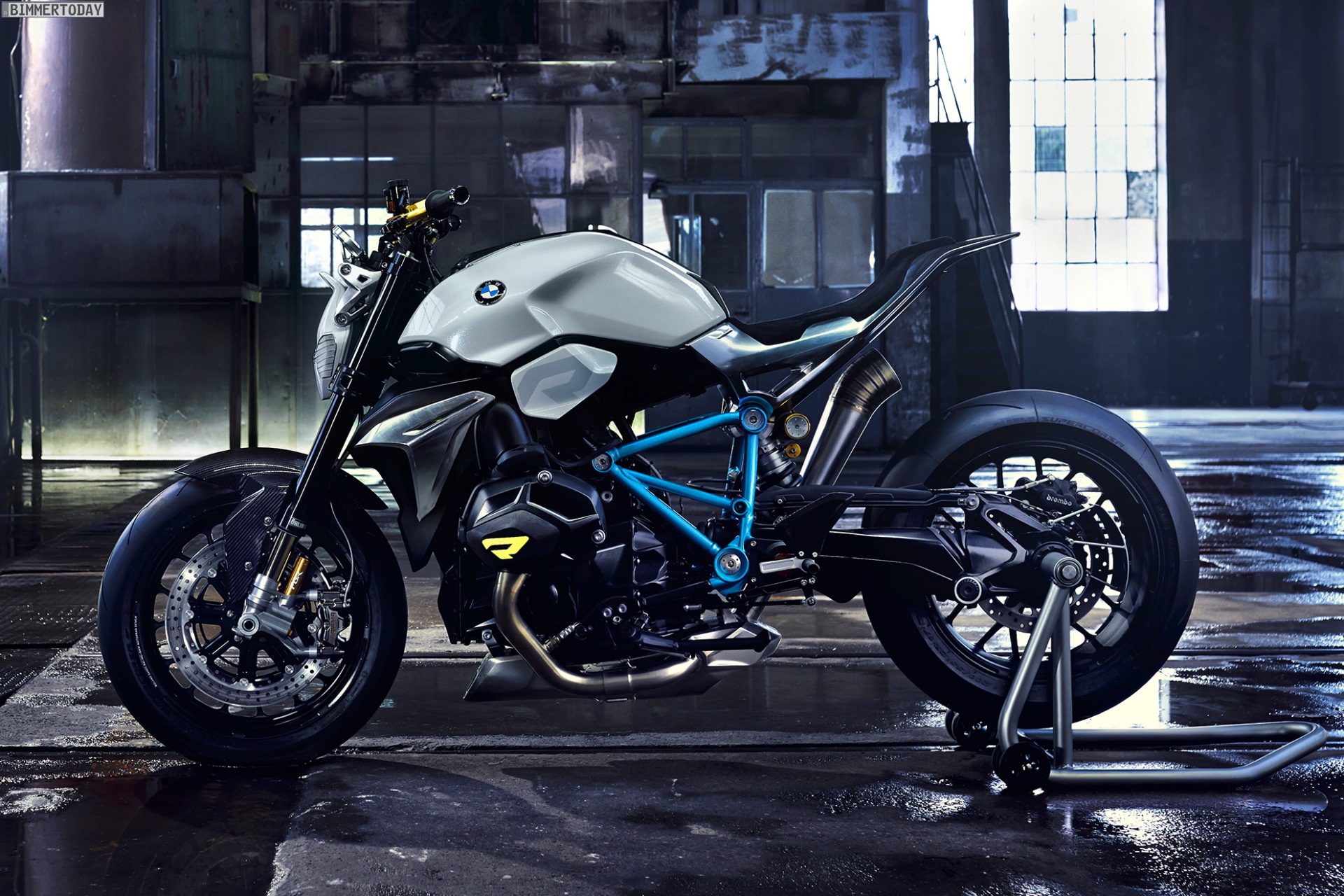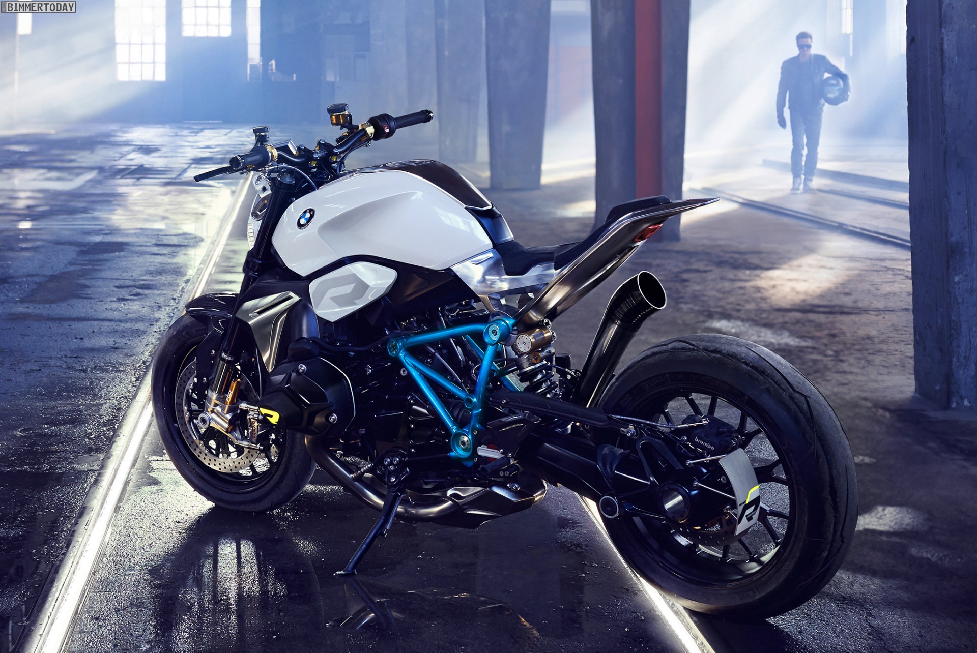 BMW Motorrad zeigt mit der Studie einen klassischen BMW Roadster nach bewährtem Rezept: Zweizylinder-Boxermotor, Einarmschwinge und Kardanantrieb sind prominent und Design-prägend verbaut, der leichte Gitterrohrrahmen in hellem Sparkling Racing Blue ist tragendes Element und optisches Highlight zugleich.