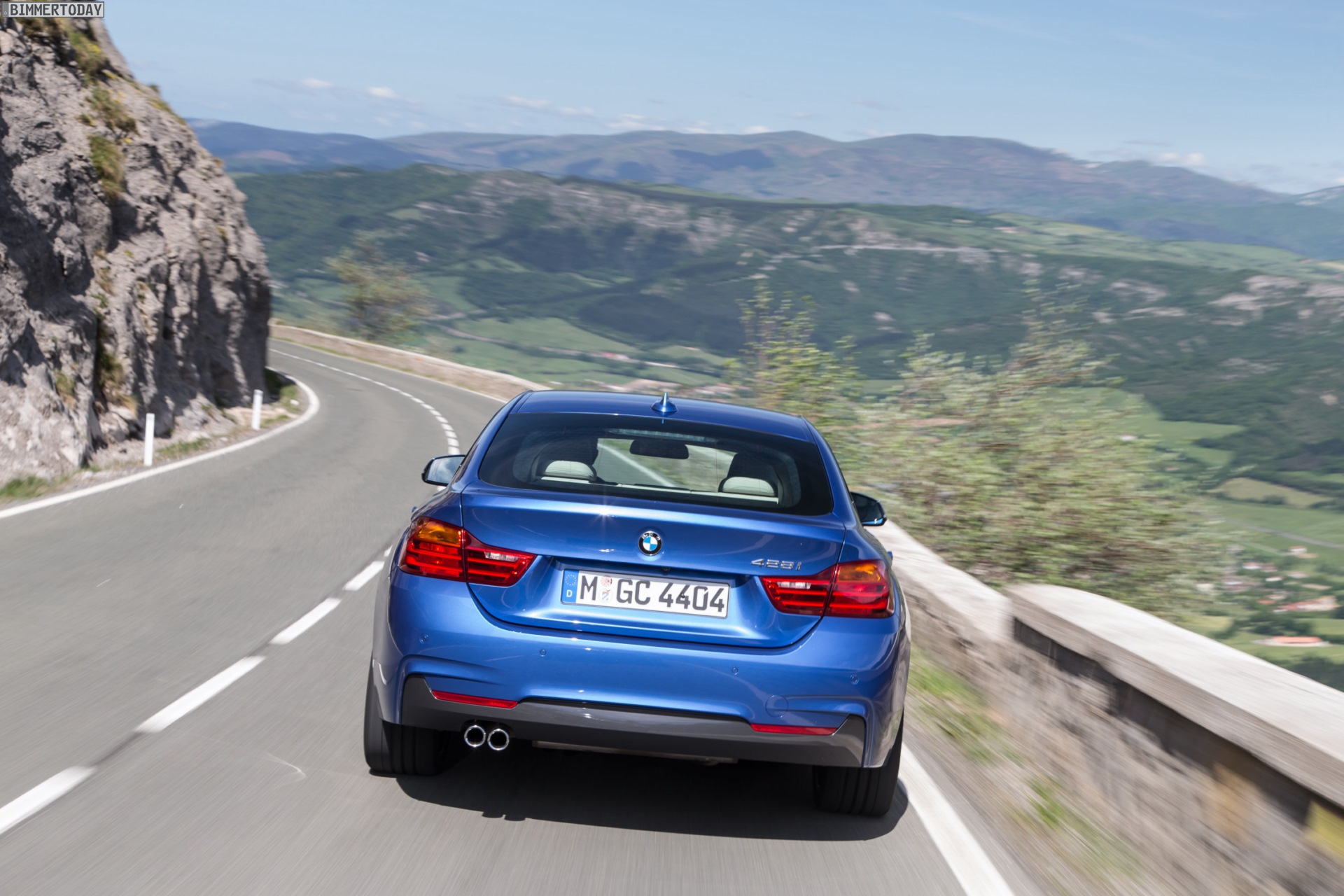 Unsere Leser haben das BMW 4er Gran Coupé schon vor einiger Zeit in Estorilblau bewundern dürfen, nun gibt es auch einige offizielle Aufnahmen von der vielleicht sportlichsten F36-Interpretation, die man derzeit ab Werk bestellen kann. Die Farbe Estorilblau ist wie in anderen Baureihen nur in Kombination mit dem M Sportpaket erhältlich und hebt das viertürige Coupé noch deutlicher aus der Masse hervor, als es die Formensprache ohnehin tut.