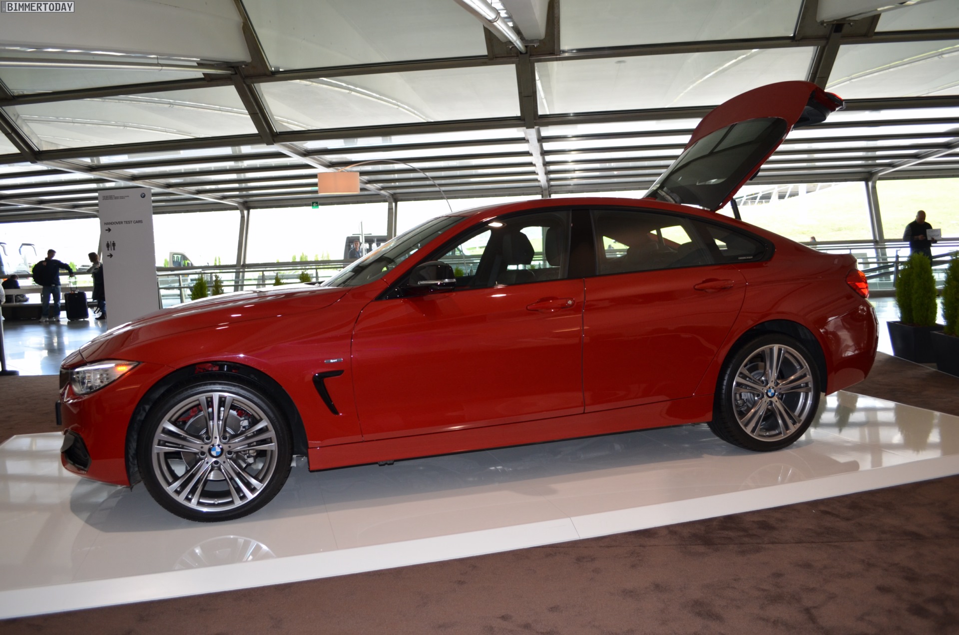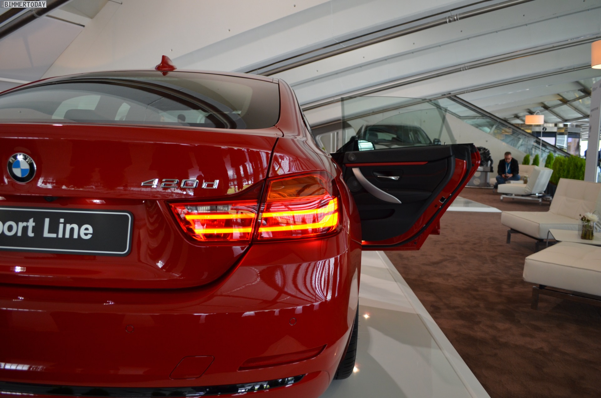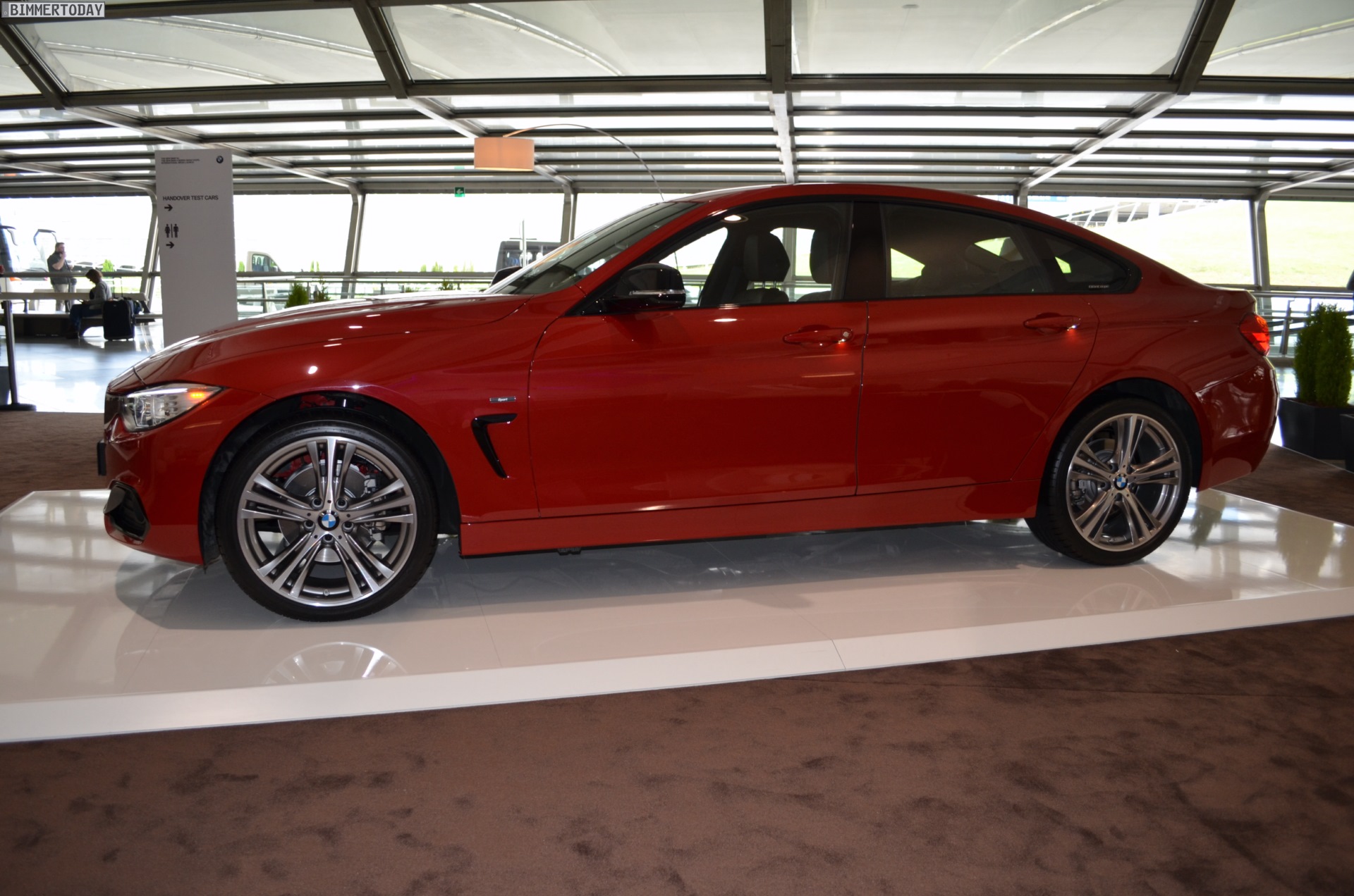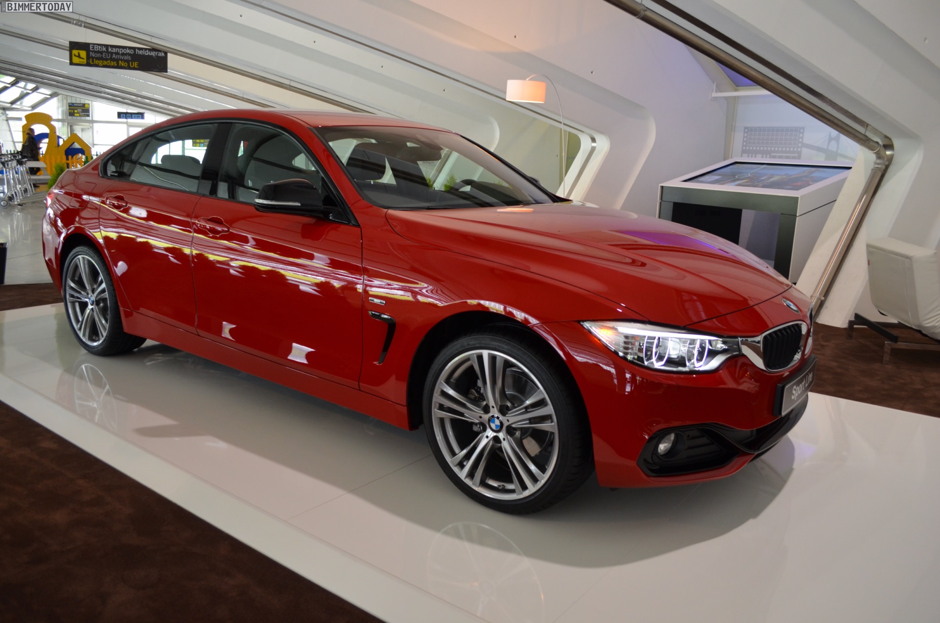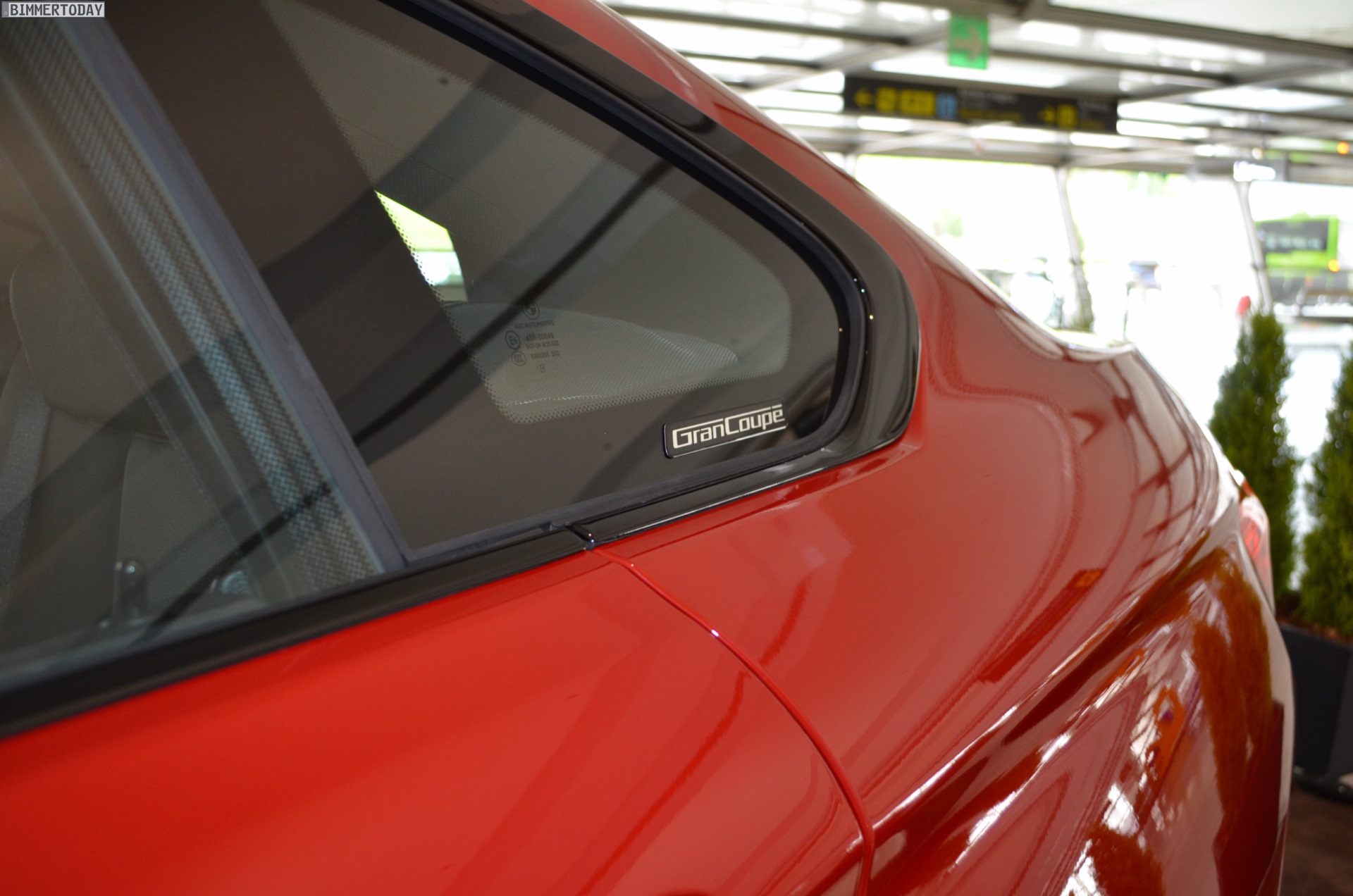 Bisher war das BMW 4er Gran Coupé bei offiziellen Anlässen entweder in Carbonschwarz oder Estorilblau zu sehen, nun haben wir auch erste “echte” Bilder des viertürigen 4ers in Melbourne Rot. Bevor wir die dritte 4er-Variante morgen erstmals fahren können, haben wir die Chance am Flughafen von Bilbao genutzt und einige Fotos vom BMW 4er Gran Coupé mit Sport Line gemacht – wobei die schwarzen Elemente der Sport Line für dunkle Akzente am roten Fahrzeug sorgen.