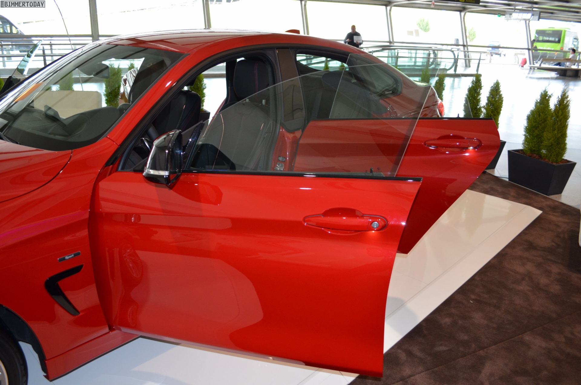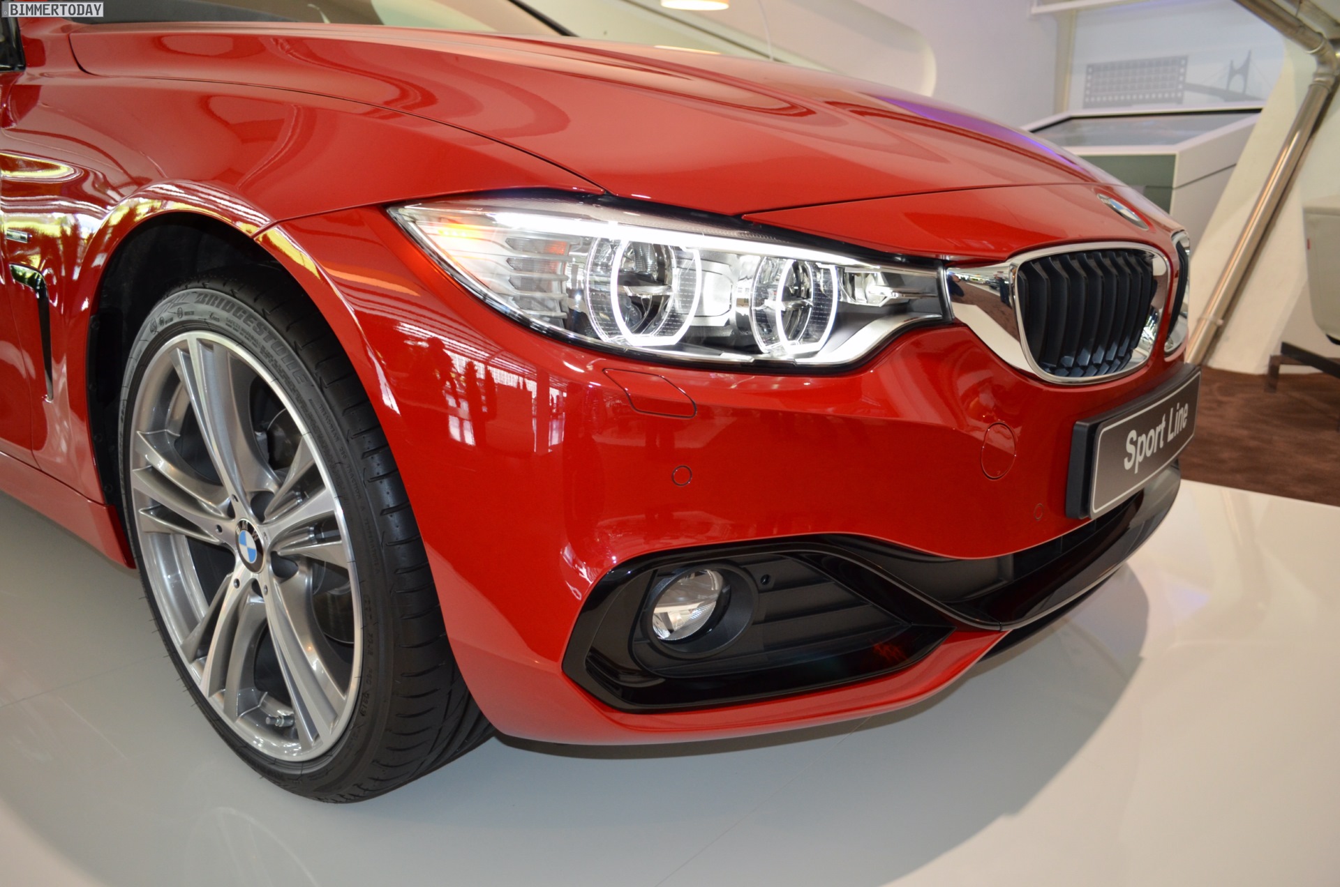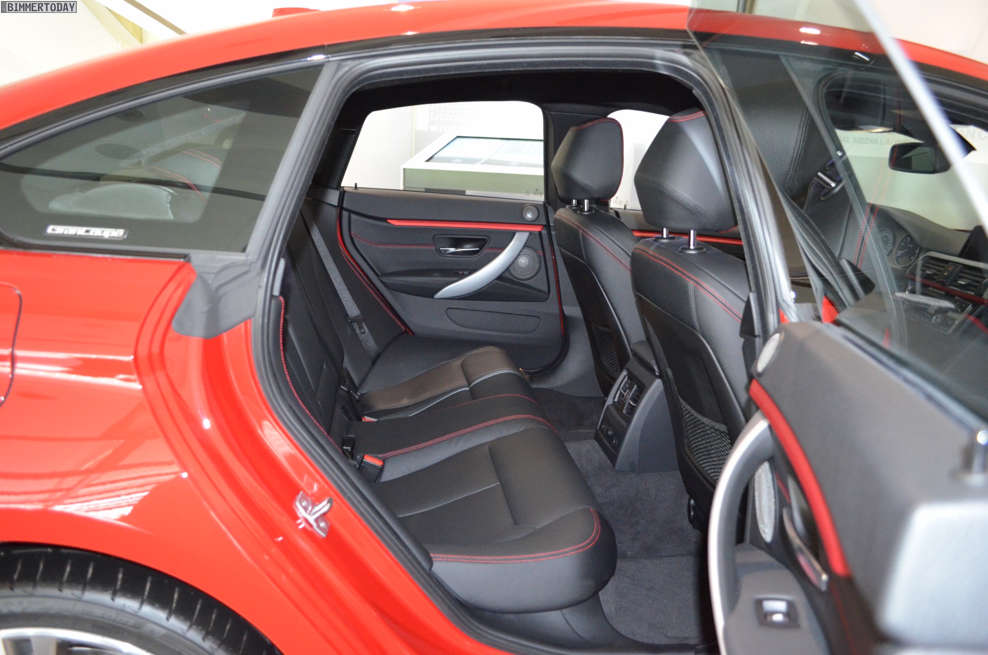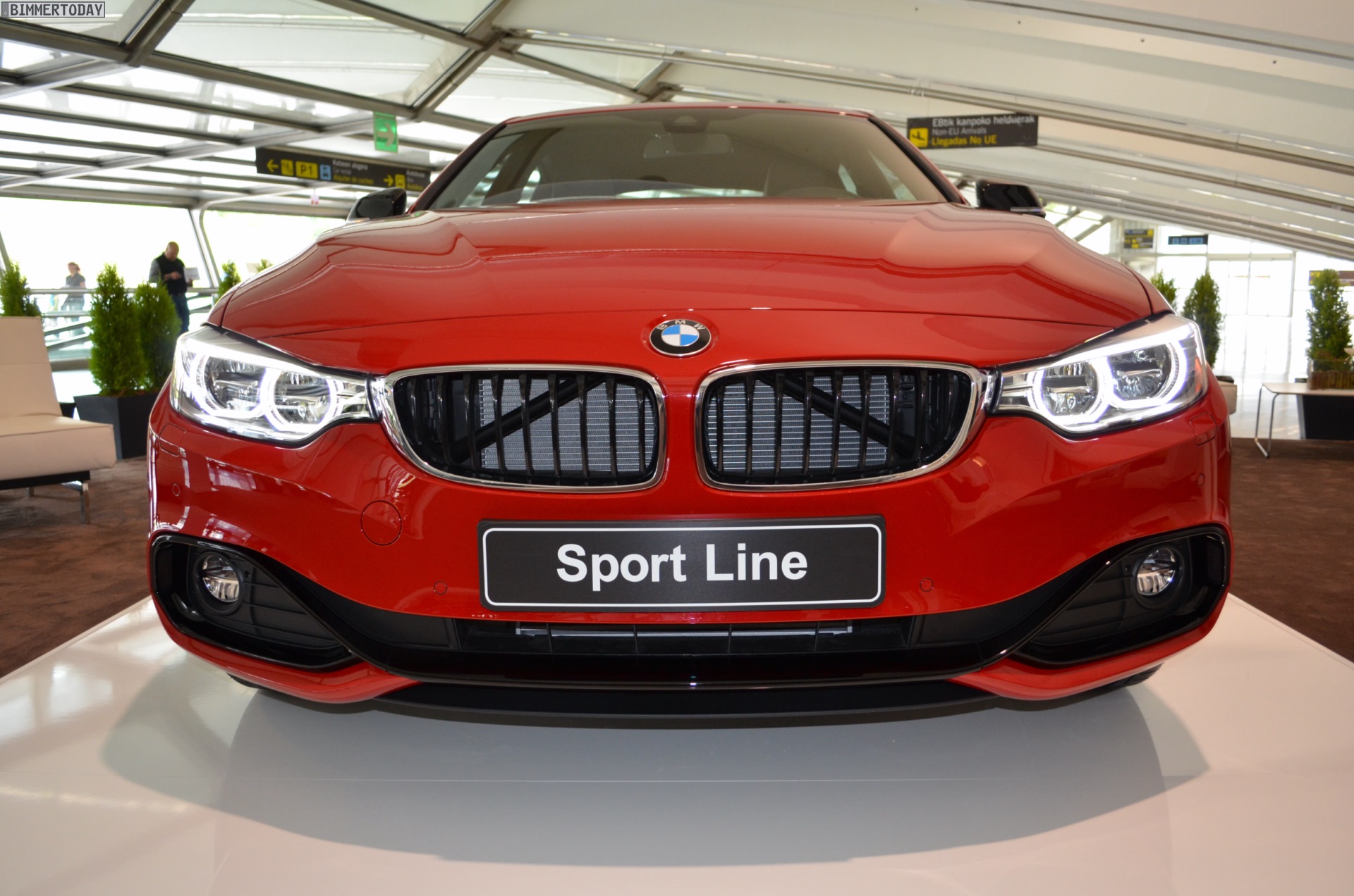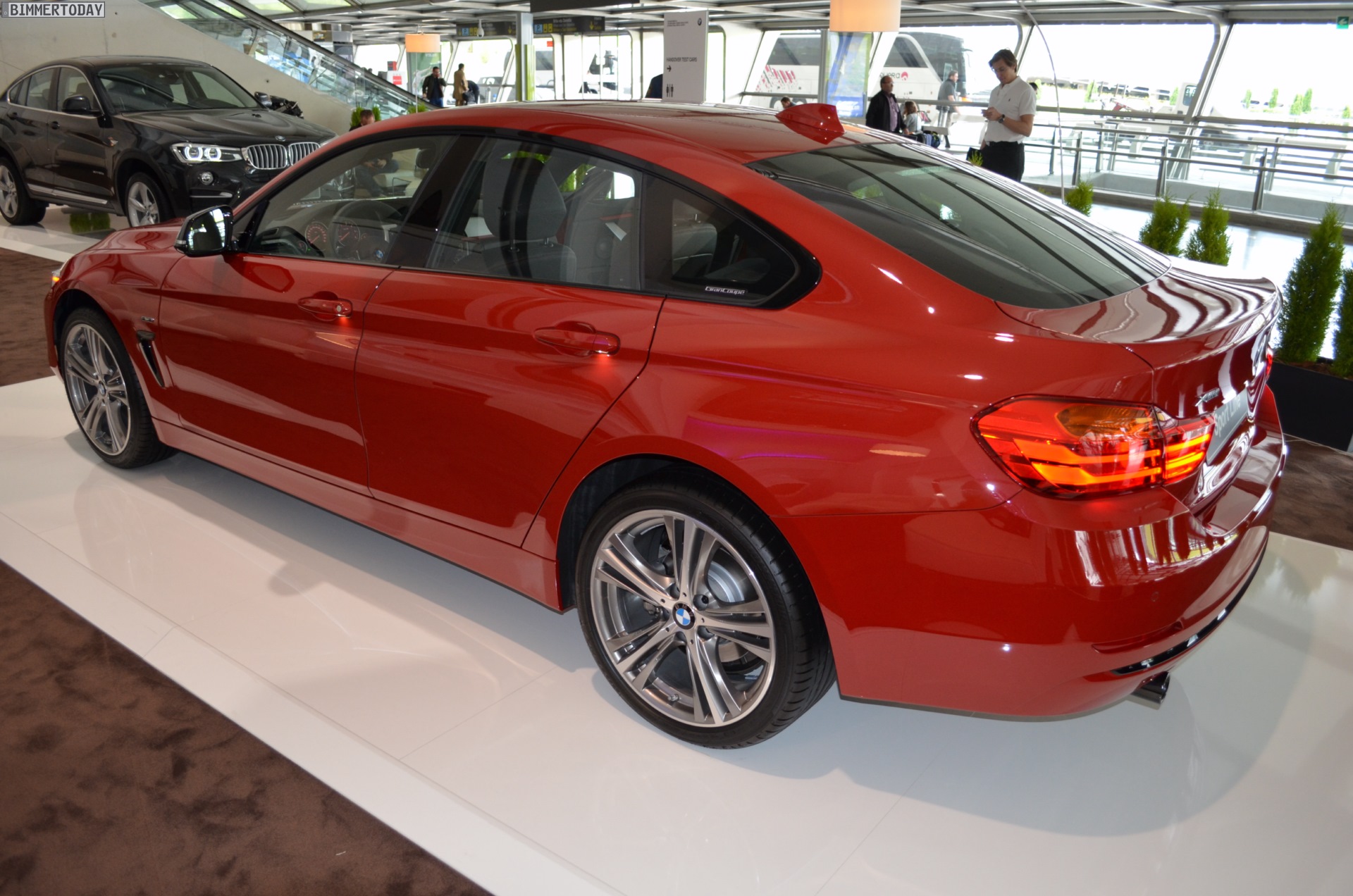 Bisher war das BMW 4er Gran Coupé bei offiziellen Anlässen entweder in Carbonschwarz oder Estorilblau zu sehen, nun haben wir auch erste “echte” Bilder des viertürigen 4ers in Melbourne Rot. Bevor wir die dritte 4er-Variante morgen erstmals fahren können, haben wir die Chance am Flughafen von Bilbao genutzt und einige Fotos vom BMW 4er Gran Coupé mit Sport Line gemacht – wobei die schwarzen Elemente der Sport Line für dunkle Akzente am roten Fahrzeug sorgen.