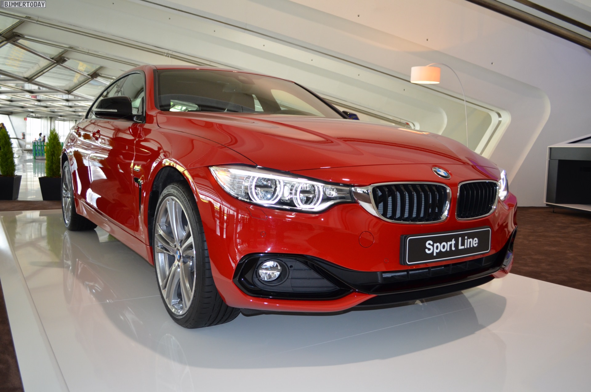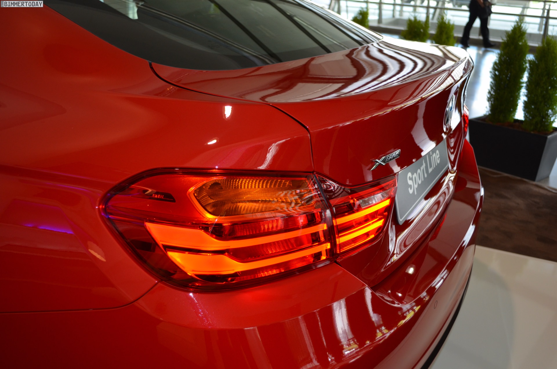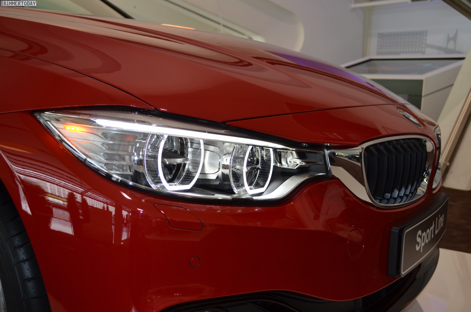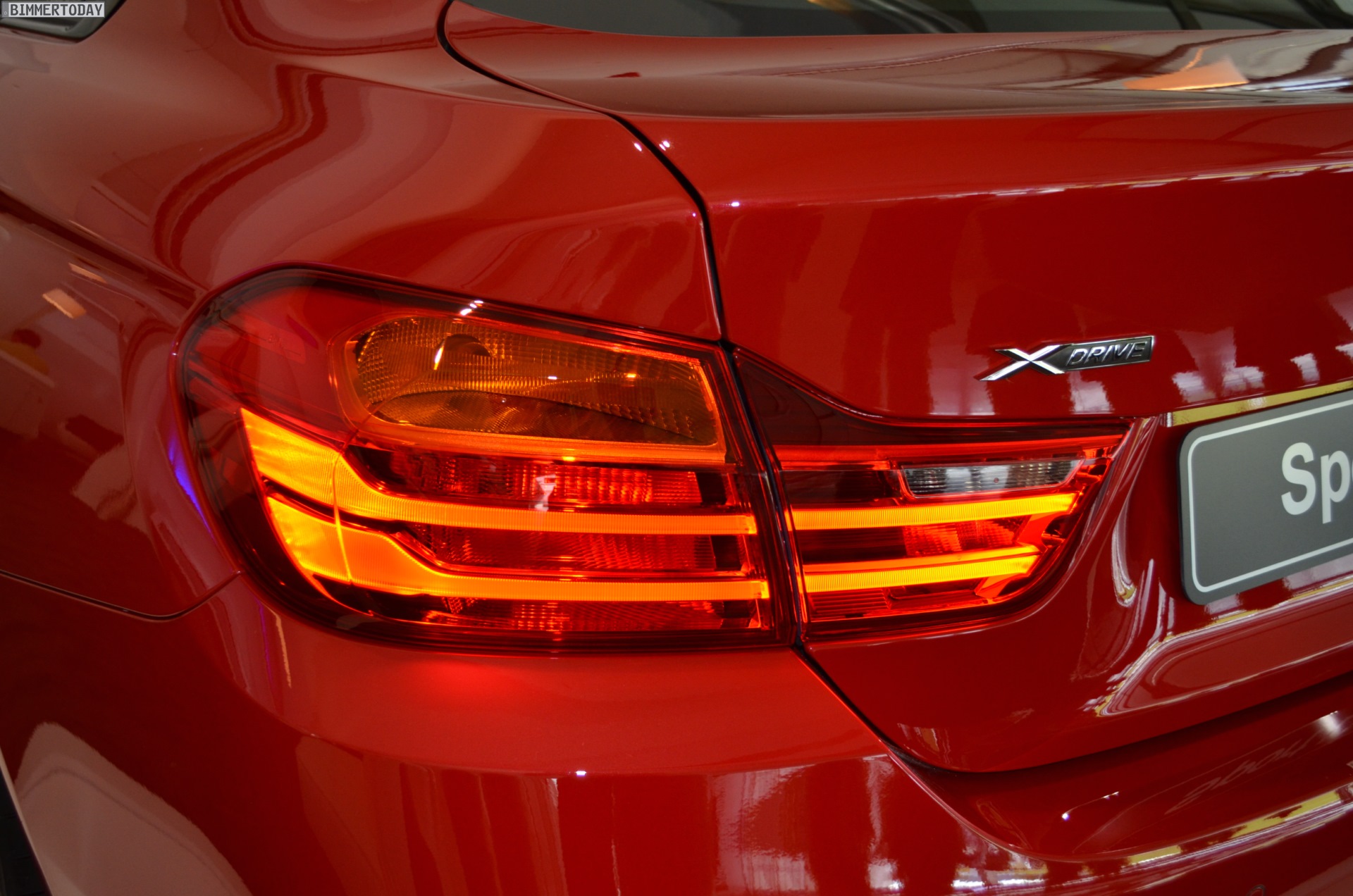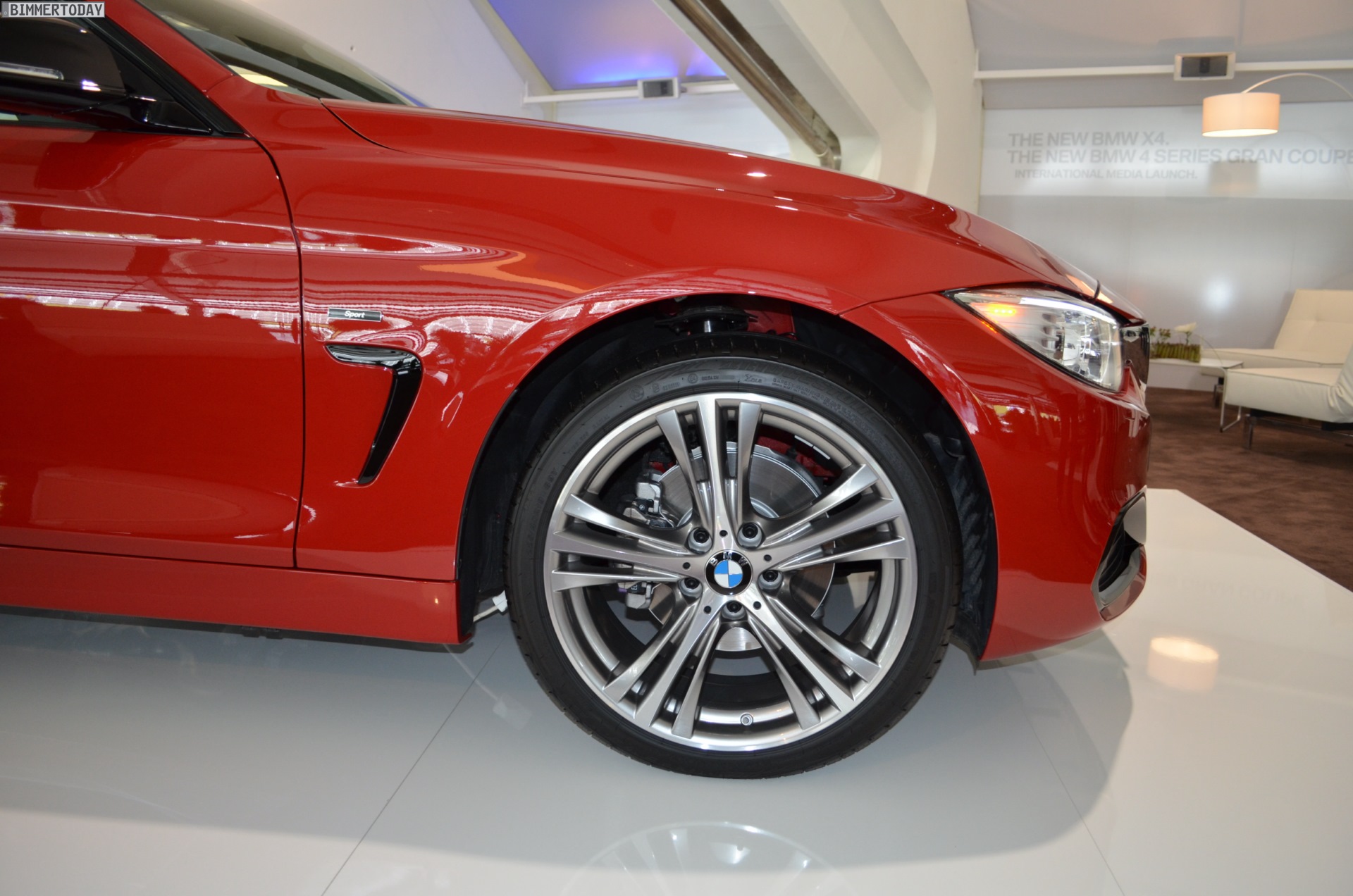 Bisher war das BMW 4er Gran Coupé bei offiziellen Anlässen entweder in Carbonschwarz oder Estorilblau zu sehen, nun haben wir auch erste “echte” Bilder des viertürigen 4ers in Melbourne Rot. Bevor wir die dritte 4er-Variante morgen erstmals fahren können, haben wir die Chance am Flughafen von Bilbao genutzt und einige Fotos vom BMW 4er Gran Coupé mit Sport Line gemacht – wobei die schwarzen Elemente der Sport Line für dunkle Akzente am roten Fahrzeug sorgen.