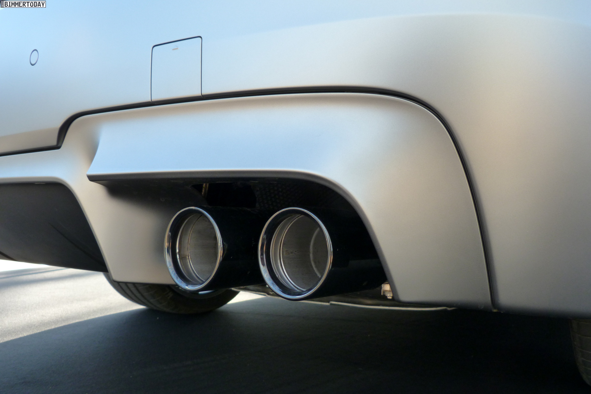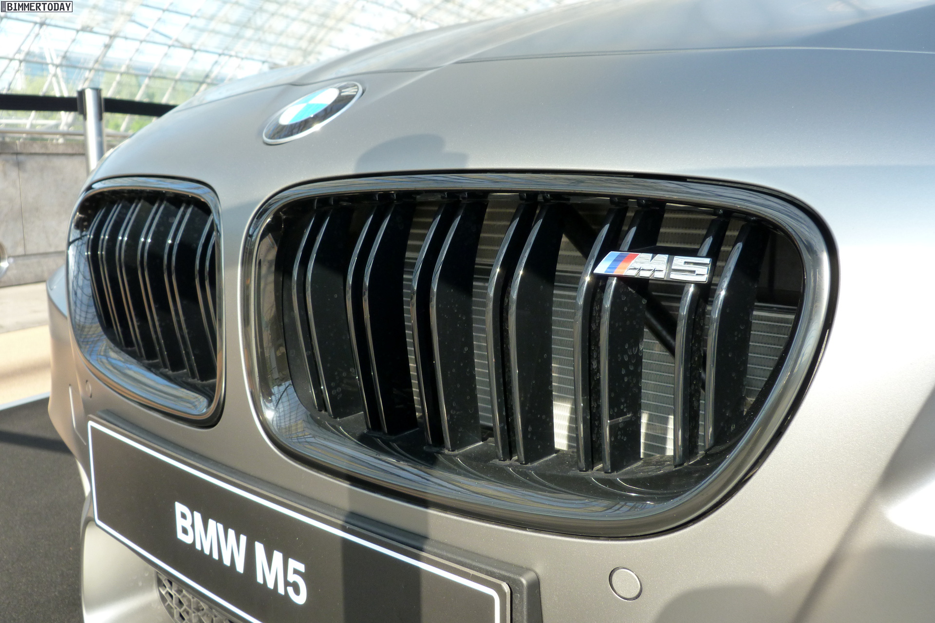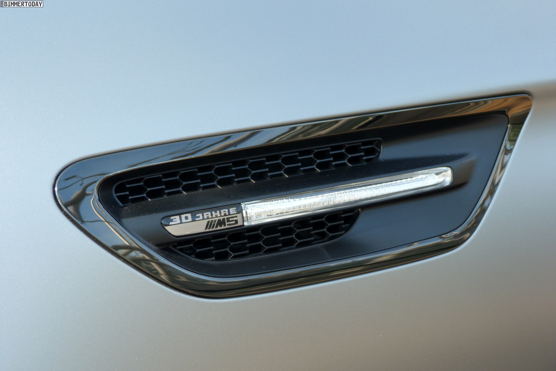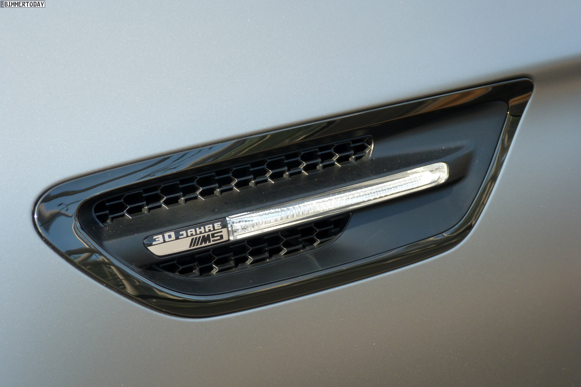 Auch äußerlich geht der 30-Jahre-M5 in die Vollen: Neben der matten Lackierung in Frozen Dark Silver Metallic bietet das Sondermodell mit Nieren, Kiemen, Türgriffen und Endrohren in Chrom dunkel weitere Akzente. Die 20 Zoll großen Felgen des Competition Pakets zieren auch das Jubiläumsmodell.