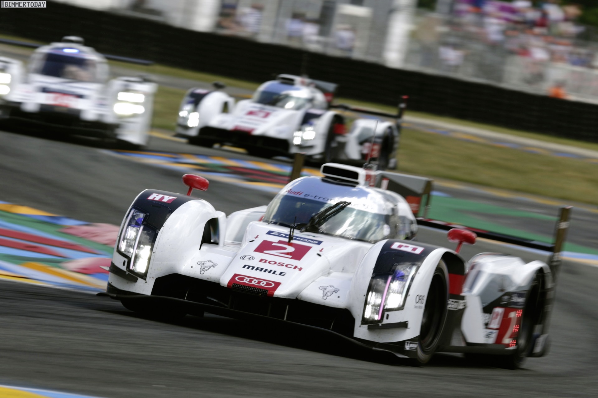 Auch die Audi R18 e-tron quattro blieben nicht von Problemen verschont, der Turbolader des V6 TDI musste bei beiden – nach dem frühen Ausfall von Startnummer 3 waren nur noch zwei Fahrzeuge im Rennen – Rennwagen gewechselt werden.