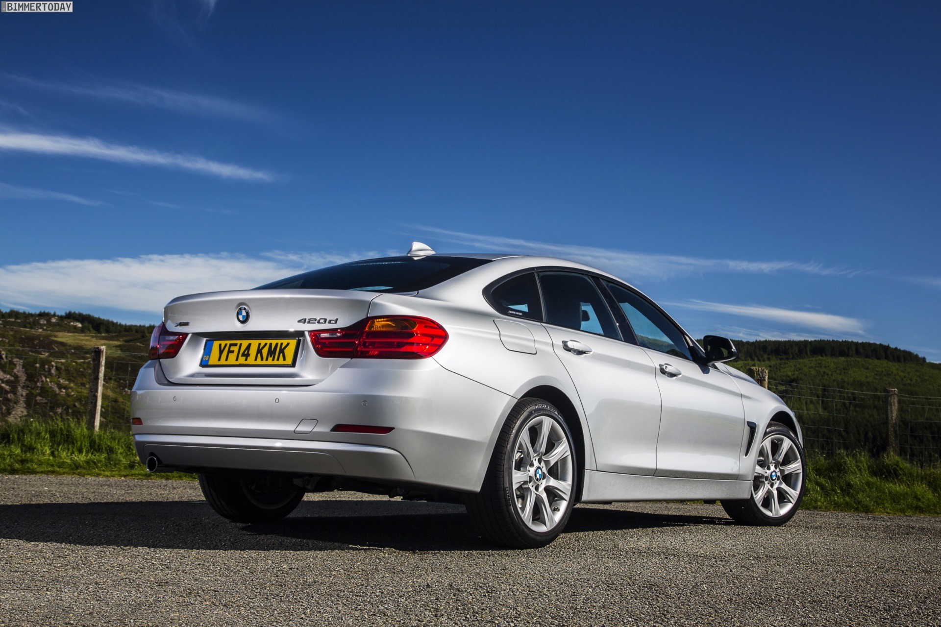 Auch bei der Motorisierung des Foto-Motivs bleiben die Engländer vergleichsweise bodenständig, denn wir sehen den F36 erstmals als BMW 420d xDrive Gran Coupé. Mit dem 184 PS starken Vierzylinder-Diesel (N47) kostet der Viertürer mindestens 39.200 Euro, die Allrad-Option erhöht den Grundpreis um 2.500 Euro.