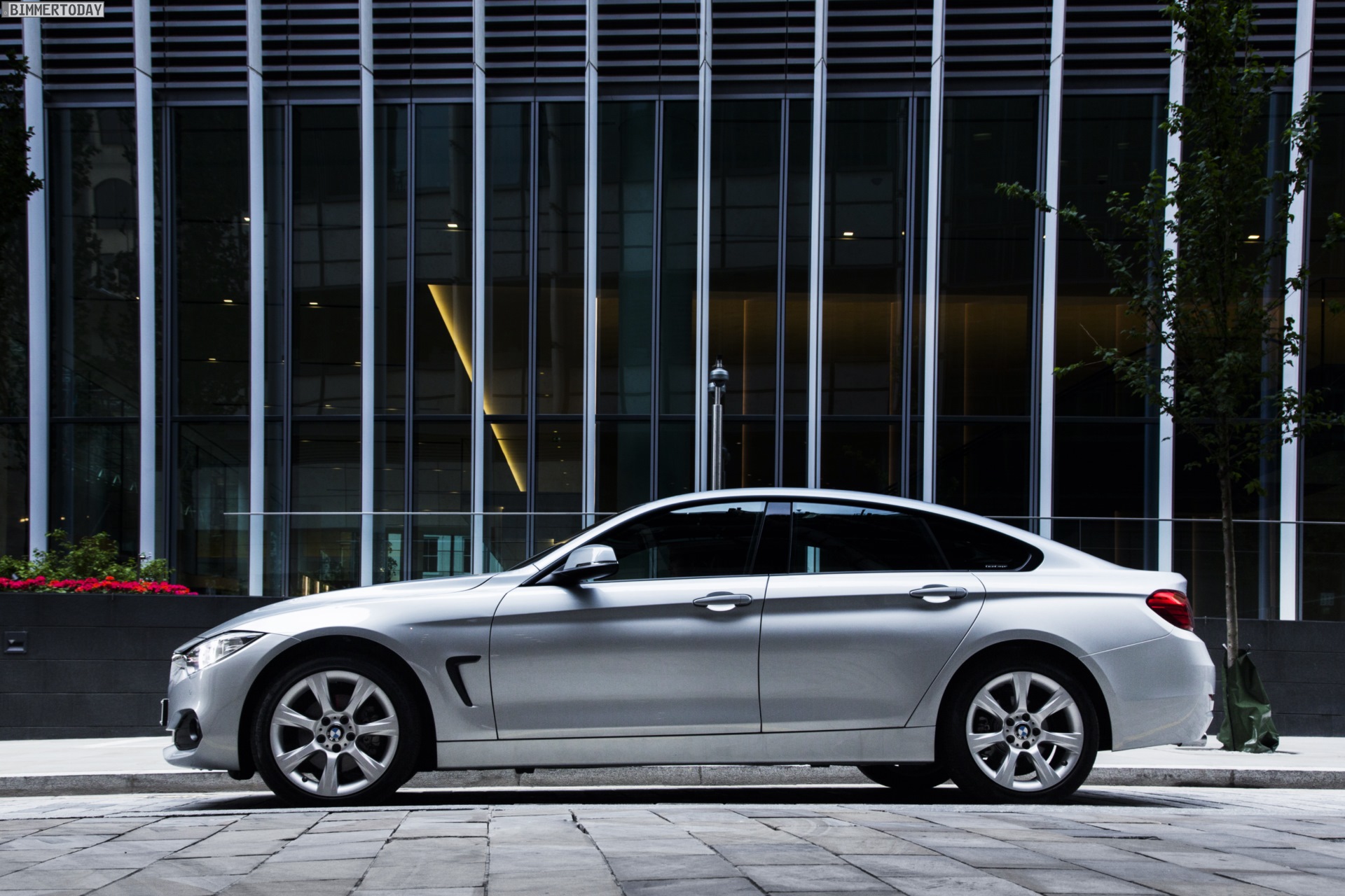 Wer bisher daran gezweifelt hat, erkennt auf den folgenden Bildern sehr gut, dass der BMW 4er F36 auch ohne Line und teure Sonderausstattungen eine sehr dynamische Figur abgibt. Die Seitenlinie mit der gestreckten Coupé-Dachlinie und die im Vergleich mit dem 3er sowohl flachere als auch breitere Statur machen das BMW 4er Gran Coupé zu einer interessanten Alternative für alle, die nicht auf die Vorzüge von vier Türen verzichten wollen.