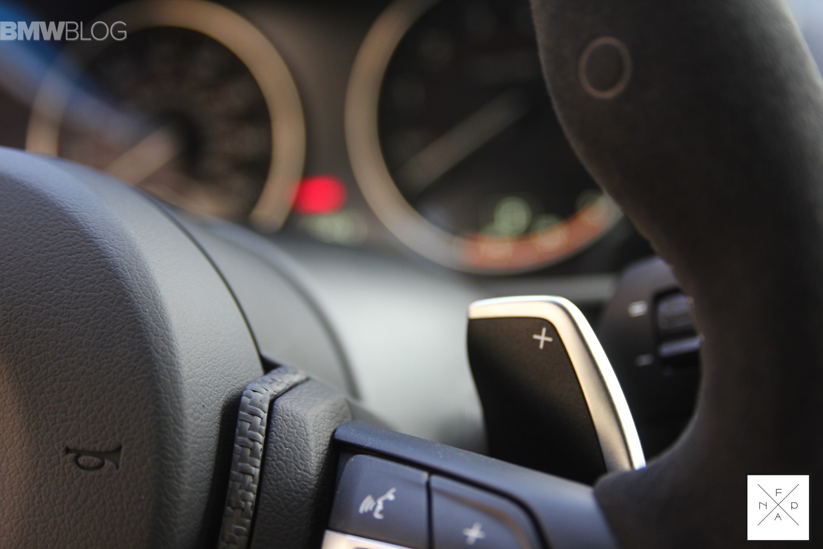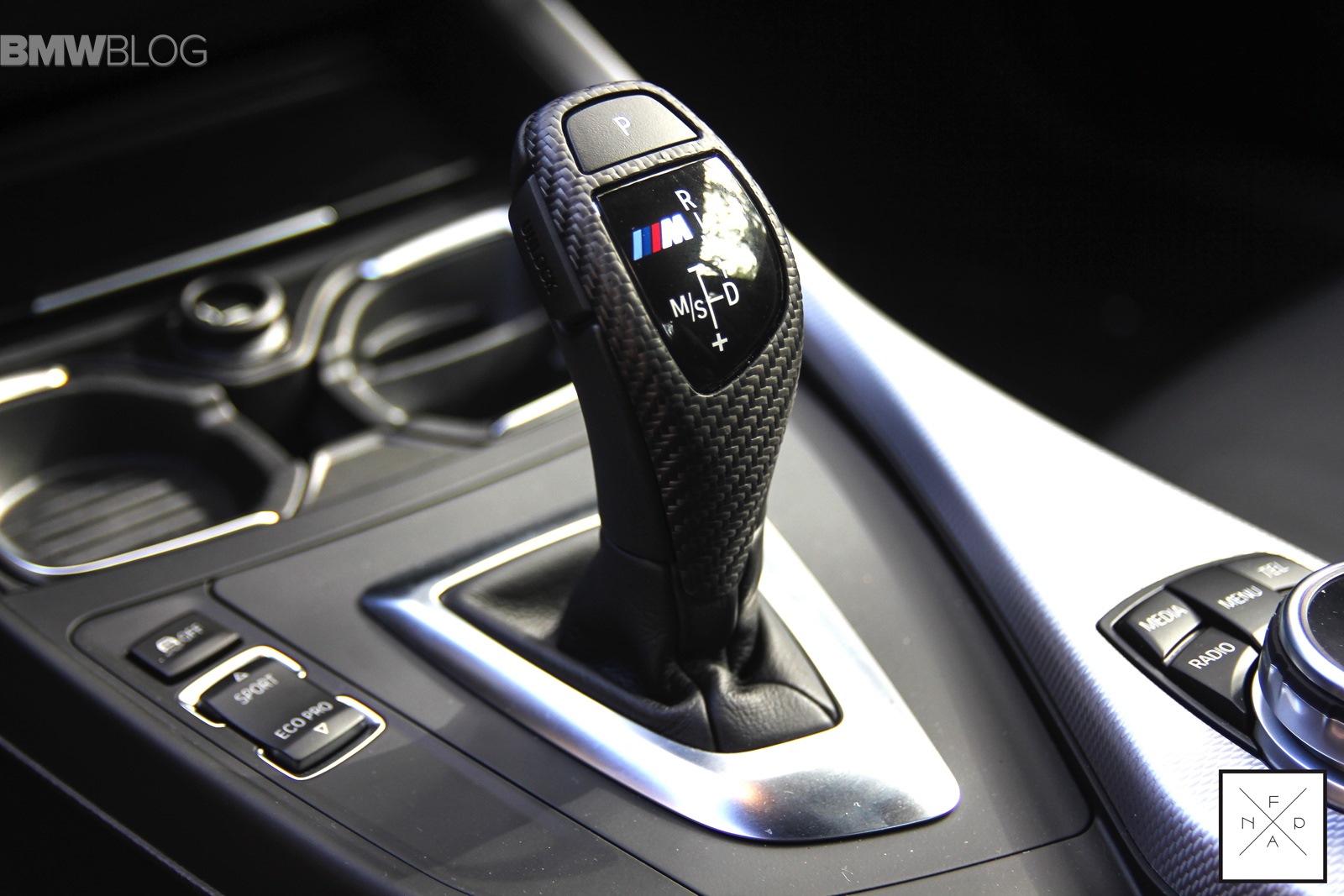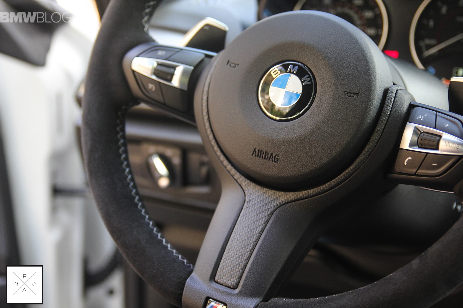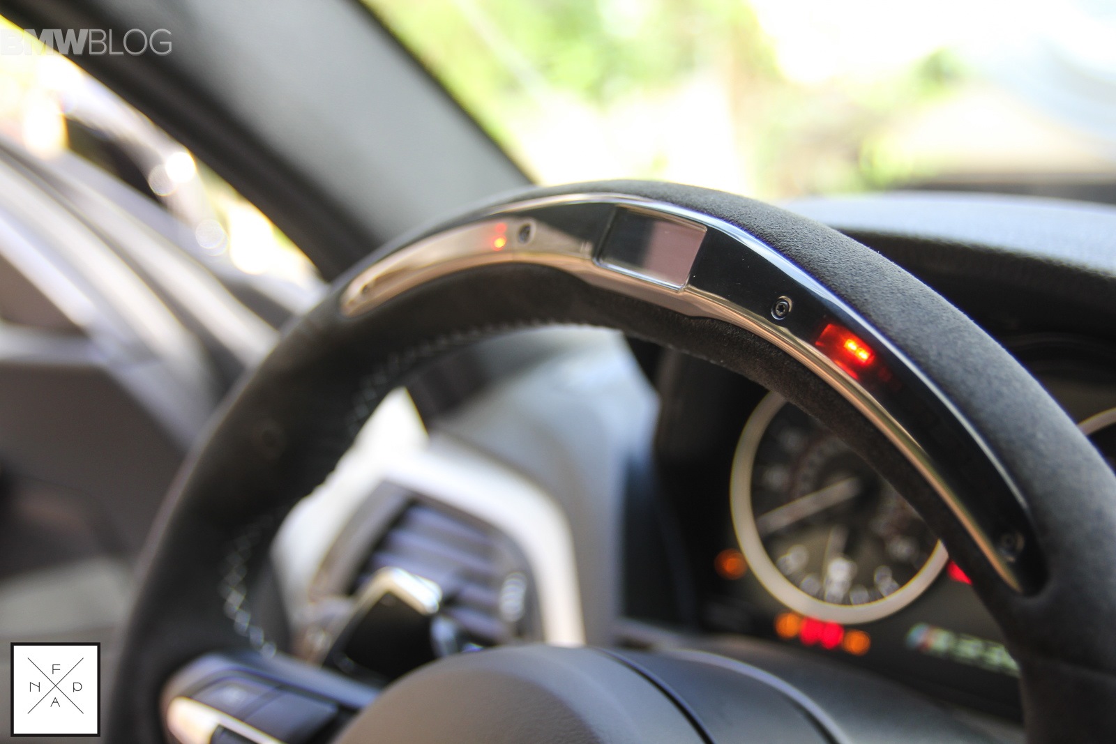 Im Innenraum sorgt vor allem das Alcantara-Lenkrad mit Display im Lenkradkranz für eine deutliche Abgrenzung von der Serie, auch die Carbon-Elemente am Wählhebel der Achtgang-Automatik und dem Griff der Handbremse stammen aus dem Performance-Programm von BMW.
