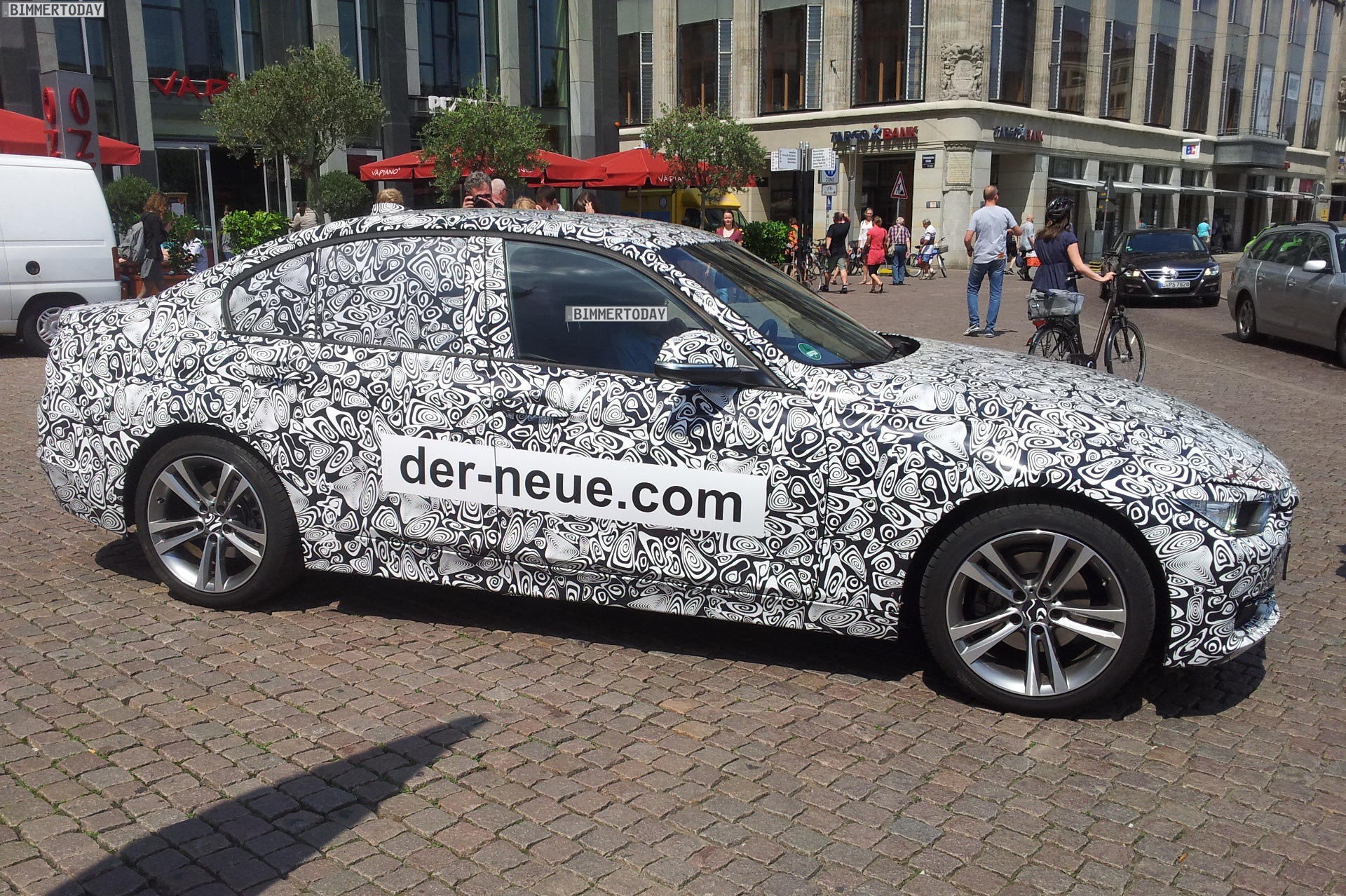 Wer derzeit aufmerksam durch deutsche Großstädte läuft, kann mit etwas Glück interessante Erlkönige zu Gesicht bekommen. Einer unserer Leser hat einen Prototypen erwischt, der zunächst an das für 2015 geplante BMW 3er Facelift denken ließ – offensichtlich handelt es sich bei dem stark getarnten Fahrzeug um einen aktuellen BMW 3er F30, die Modellpflege steht vor der Tür und das Werk Leipzig ist nicht weit entfernt.