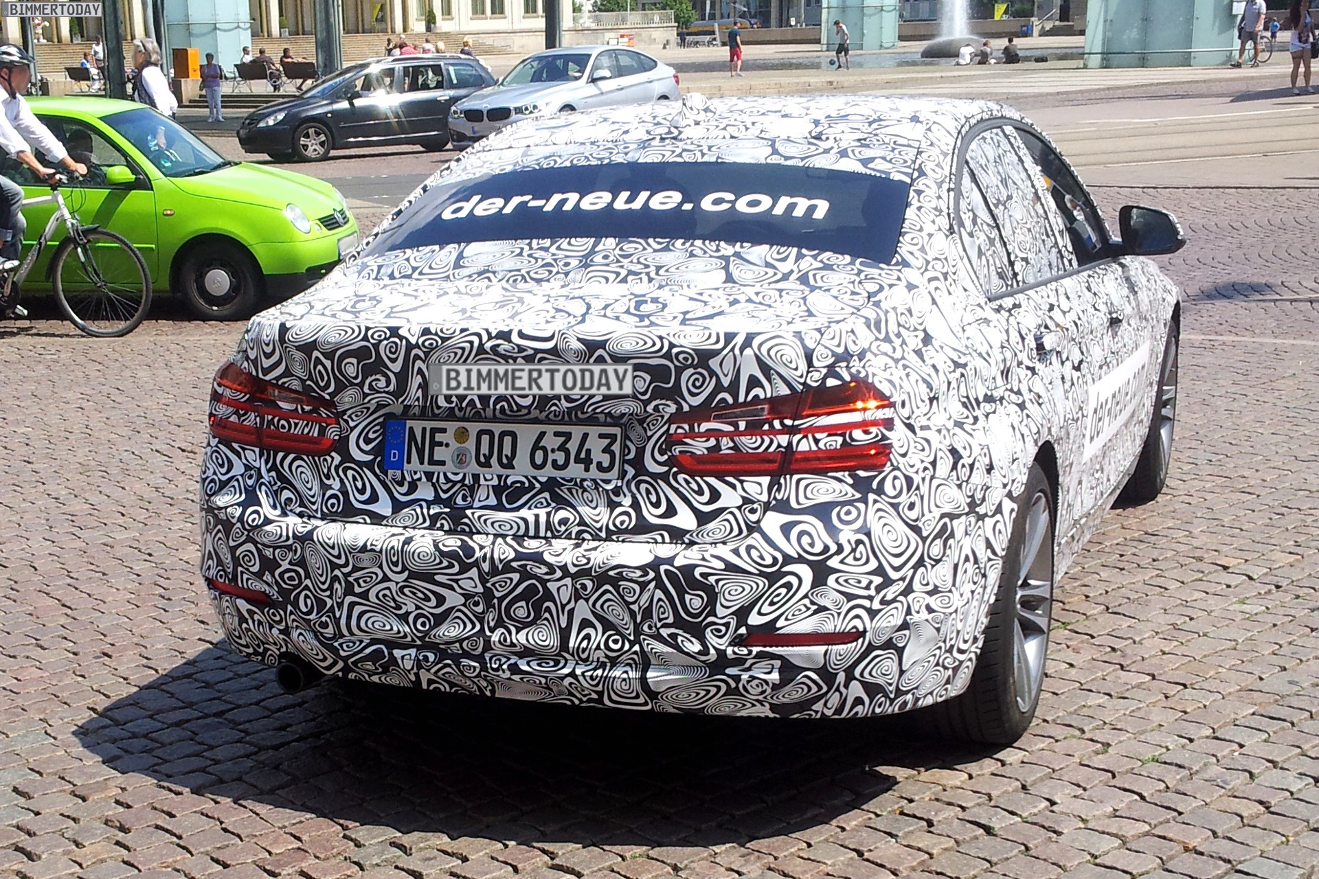 Andererseits: Seit wann tragen BMW-Prototypen das Kennzeichen der Stadt Neuss? Und wieso sollte der BMW 3er F30 LCI mit einer Web-Adresse auf dem Fahrzeug unterwegs sein, die mysteriös auf “Den Neuen” hinweist? Außerdem lassen sich auch bei genauester Betrachtung keine Details finden, die sich vom aktuellen F30 unterscheiden. Auf Nachfrage wurde uns schließlich auch von BMW versichert, dass man in München nichts mit der Aktion zu tun habe.