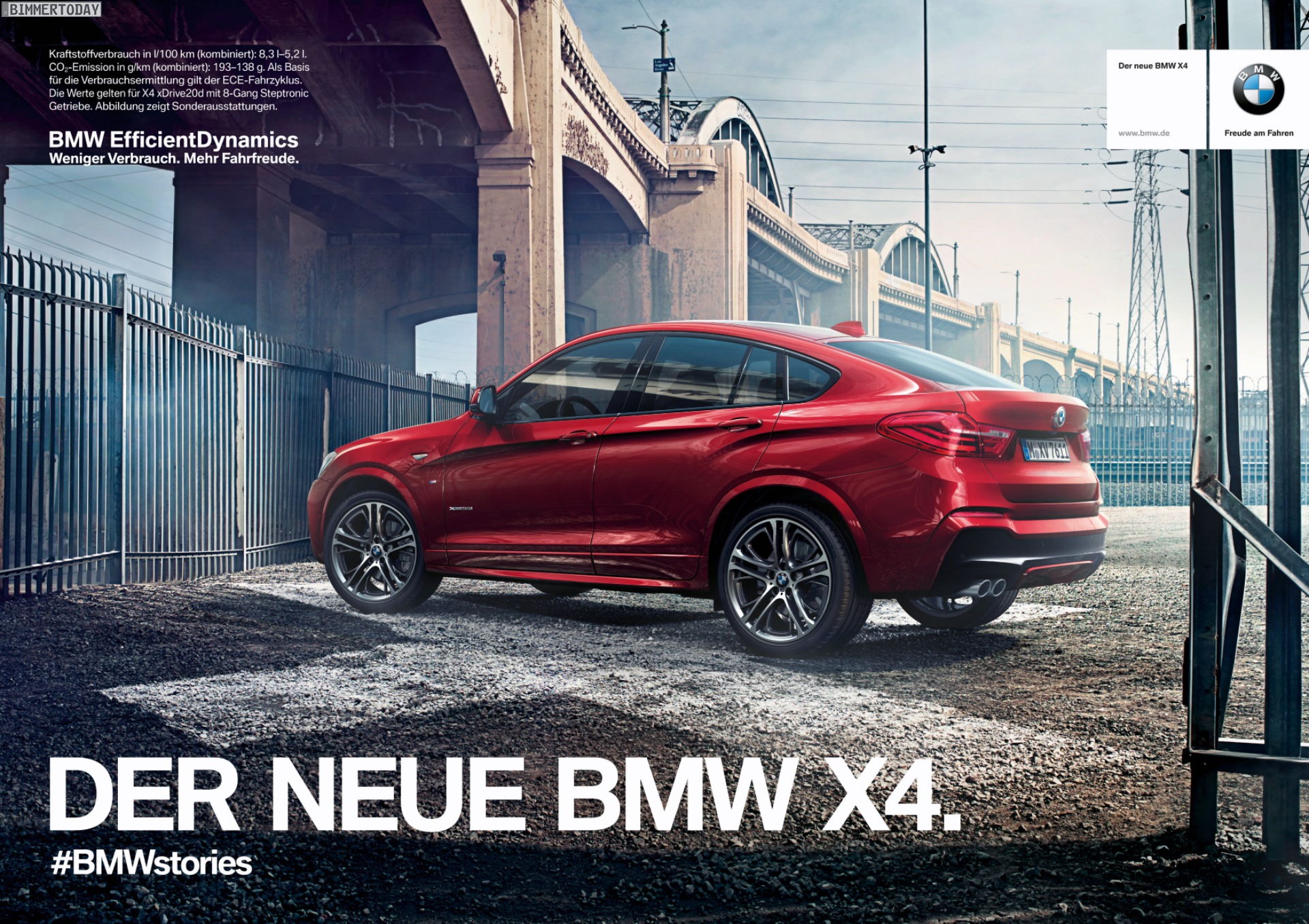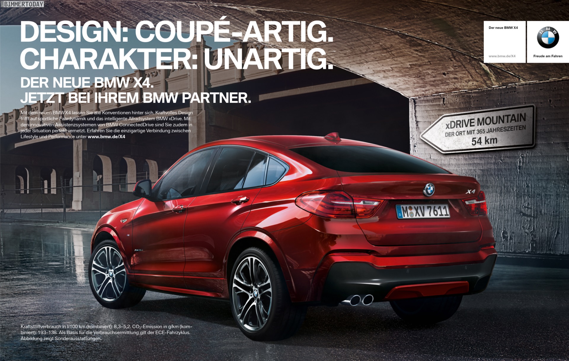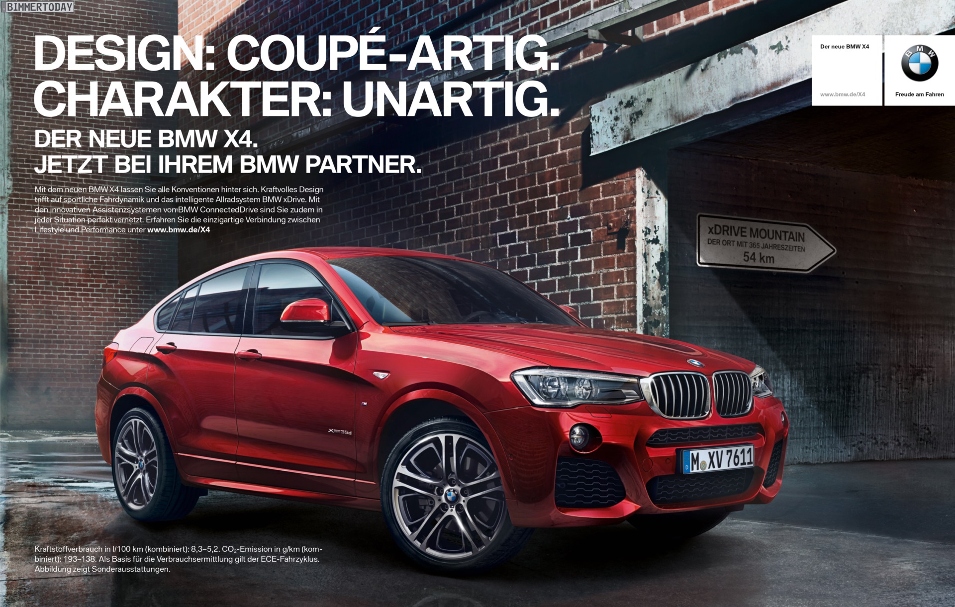 Kurz vor dem Marktstart hat BMW auch die offizielle Werbe-Kampagne für den neuen BMW X4 F26 vorgestellt, die ersten Anzeigen in großen Zeitungen sind bereits seit ein paar Tagen zu sehen. Im zentralen Claim “Design: Coupé-artig – Charakter: unartig” spielt die Werbung auf das in dieser Klasse einzigartige Design und die sich daraus ergebende Positionierung des Fahrzeugs abseits der grauen Masse an.
