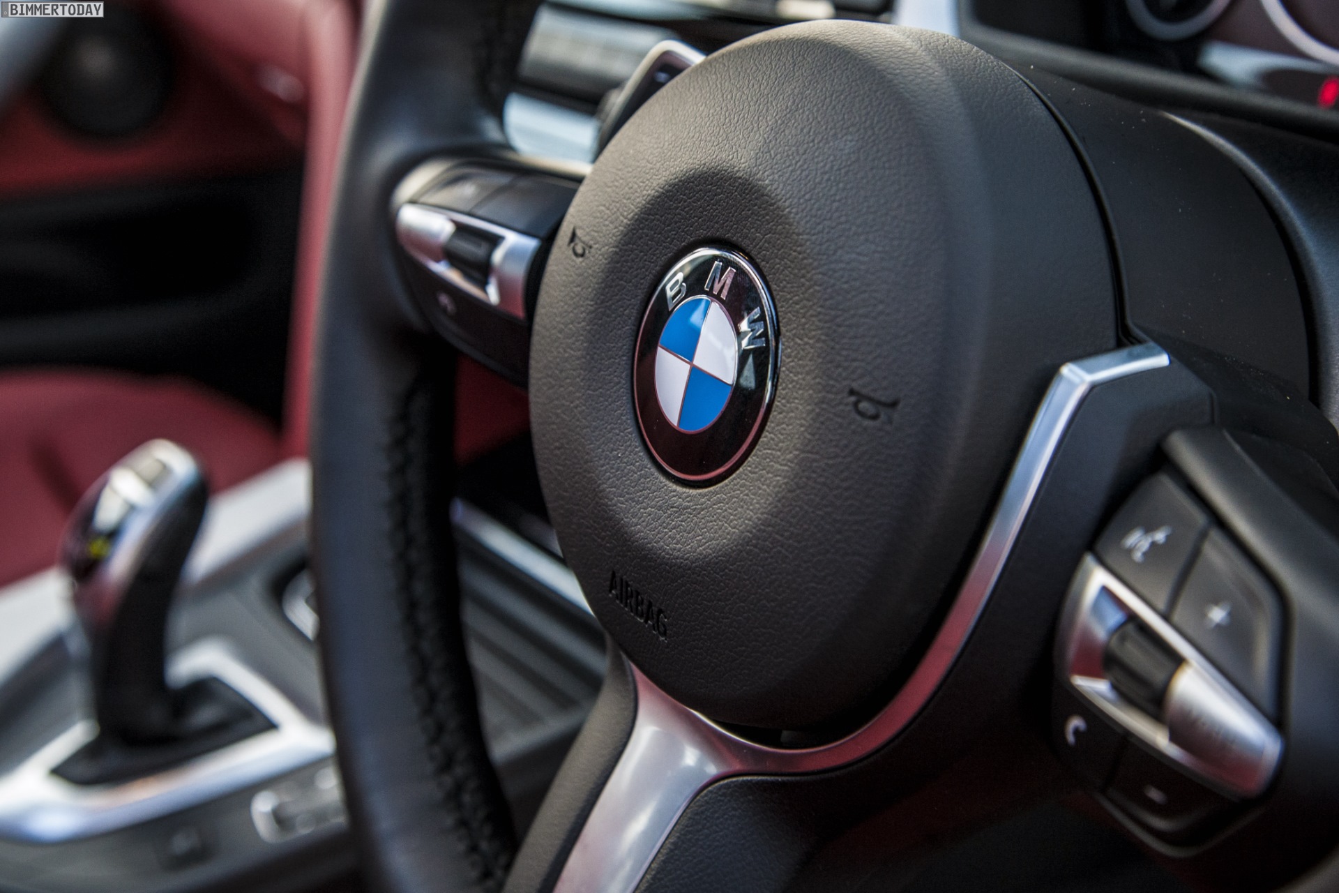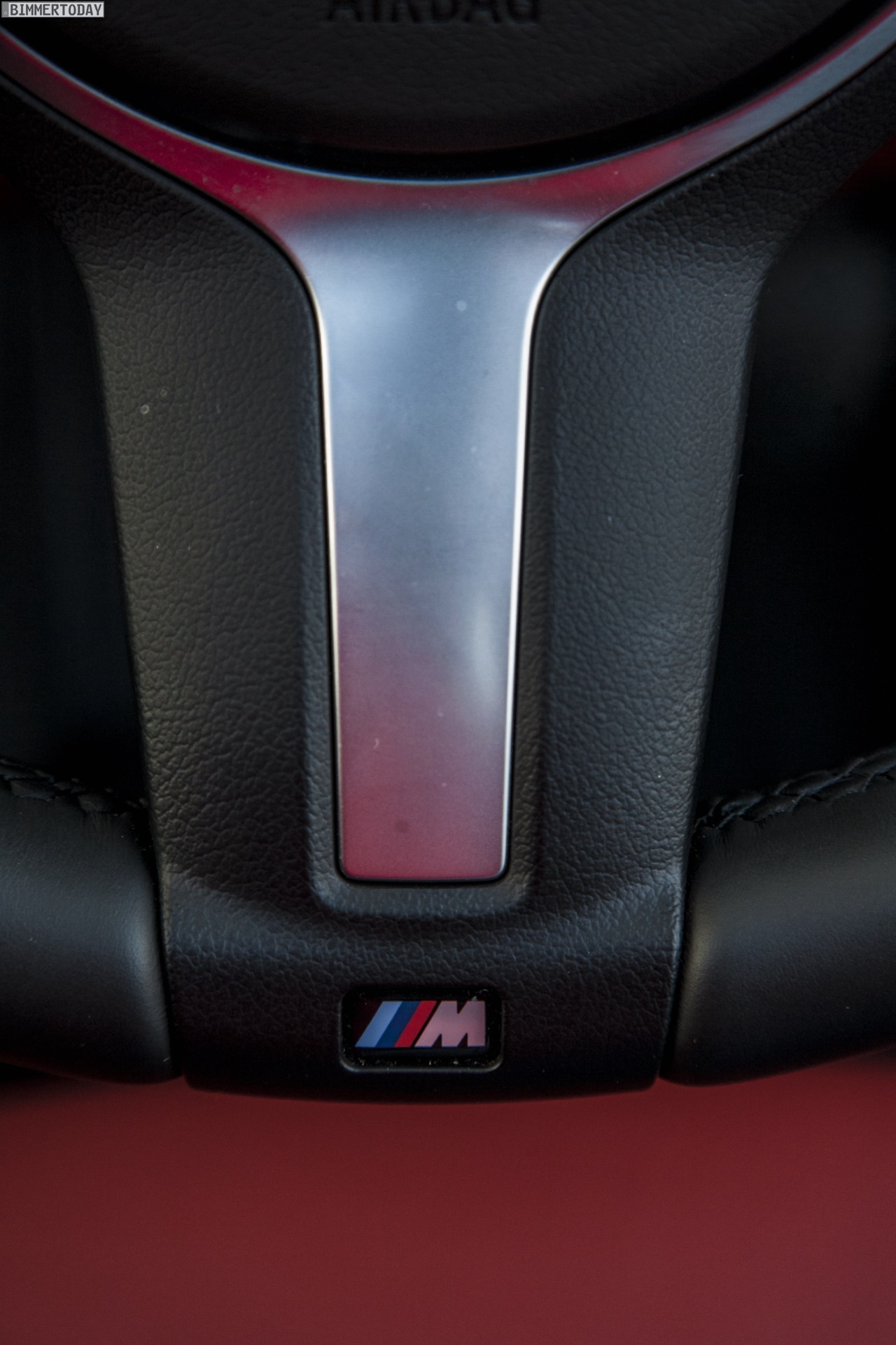 Im Innenraum trägt das gezeigte Modell die Lederausstattung Dakota in Korallrot, das Lenkrad ist für den Linksverkehr-Markt Südafrika selbstverständlich auf der rechten Seite montiert.