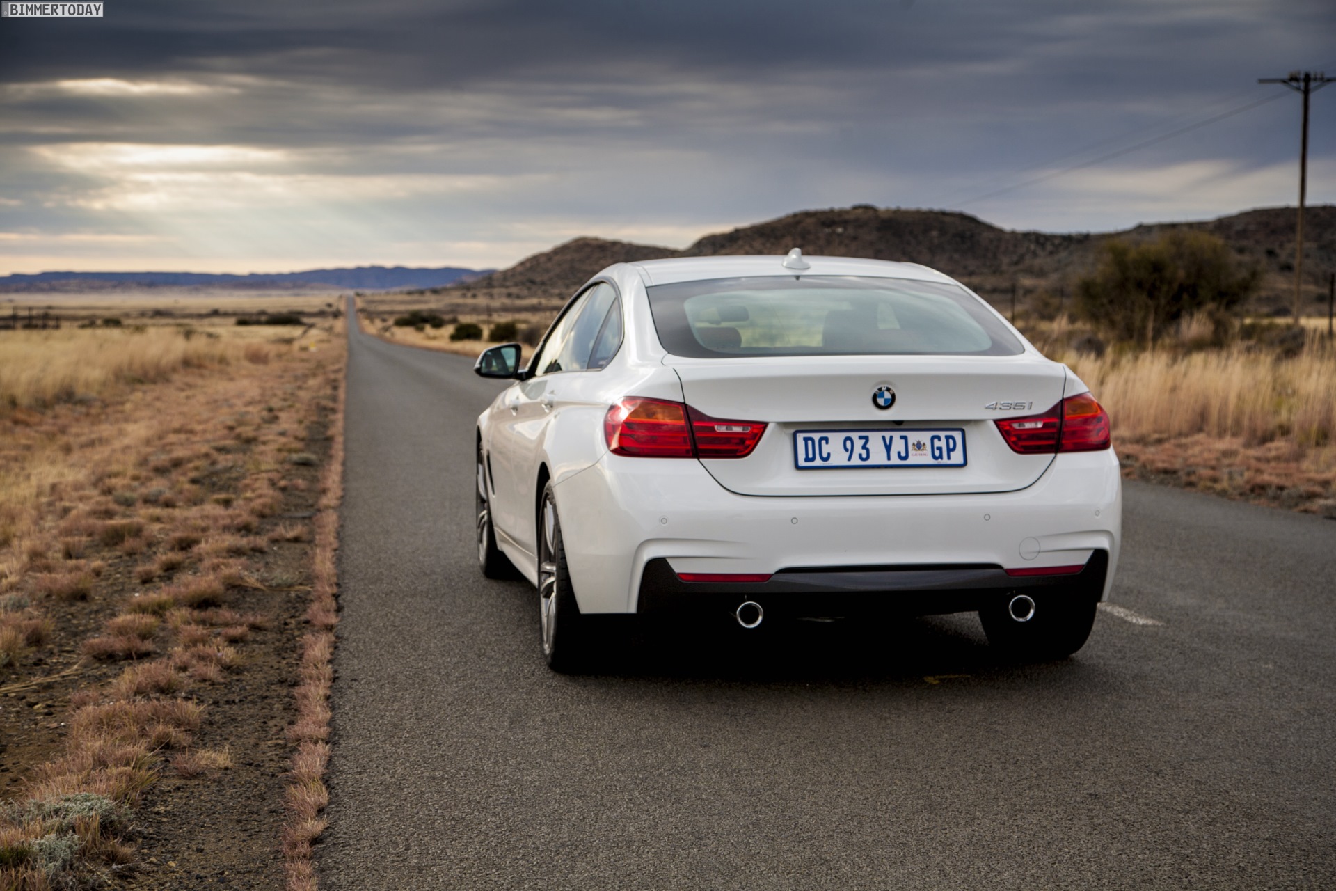 Als Foto-Modell haben sich die Afrikaner für einen BMW 435i F36 entschieden, schließlich bietet dieser mit seiner Endrohr-Konfiguration am Heck auch optische Vorzüge gegenüber allen übrigen Motorisierungen. In Südafrika wird das BMW 4er Gran Coupé außerdem als 420i, 428i und als 420d angeboten, es stehen also deutlich weniger Modelle zur Wahl als bei uns. Auch das Thema xDrive spielt dort zumindest zum Marktstart keine Rolle.