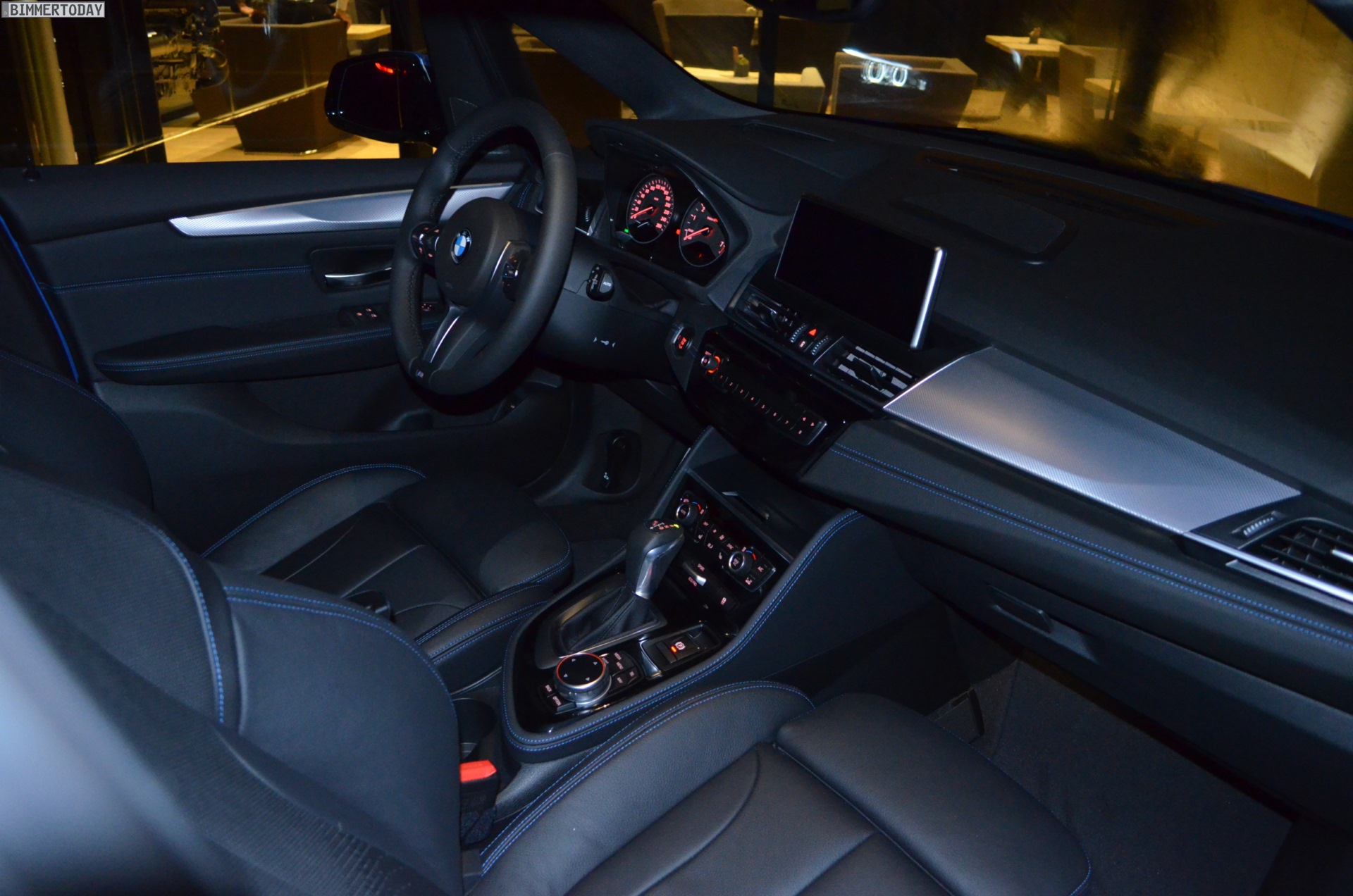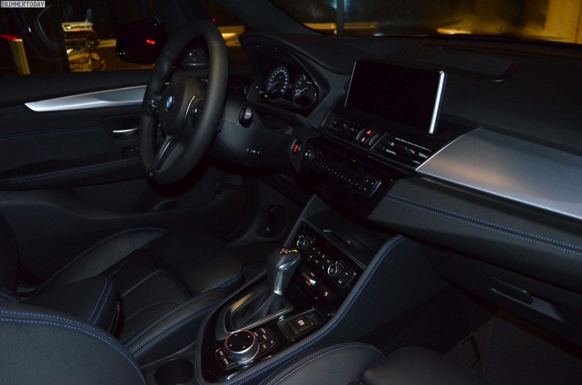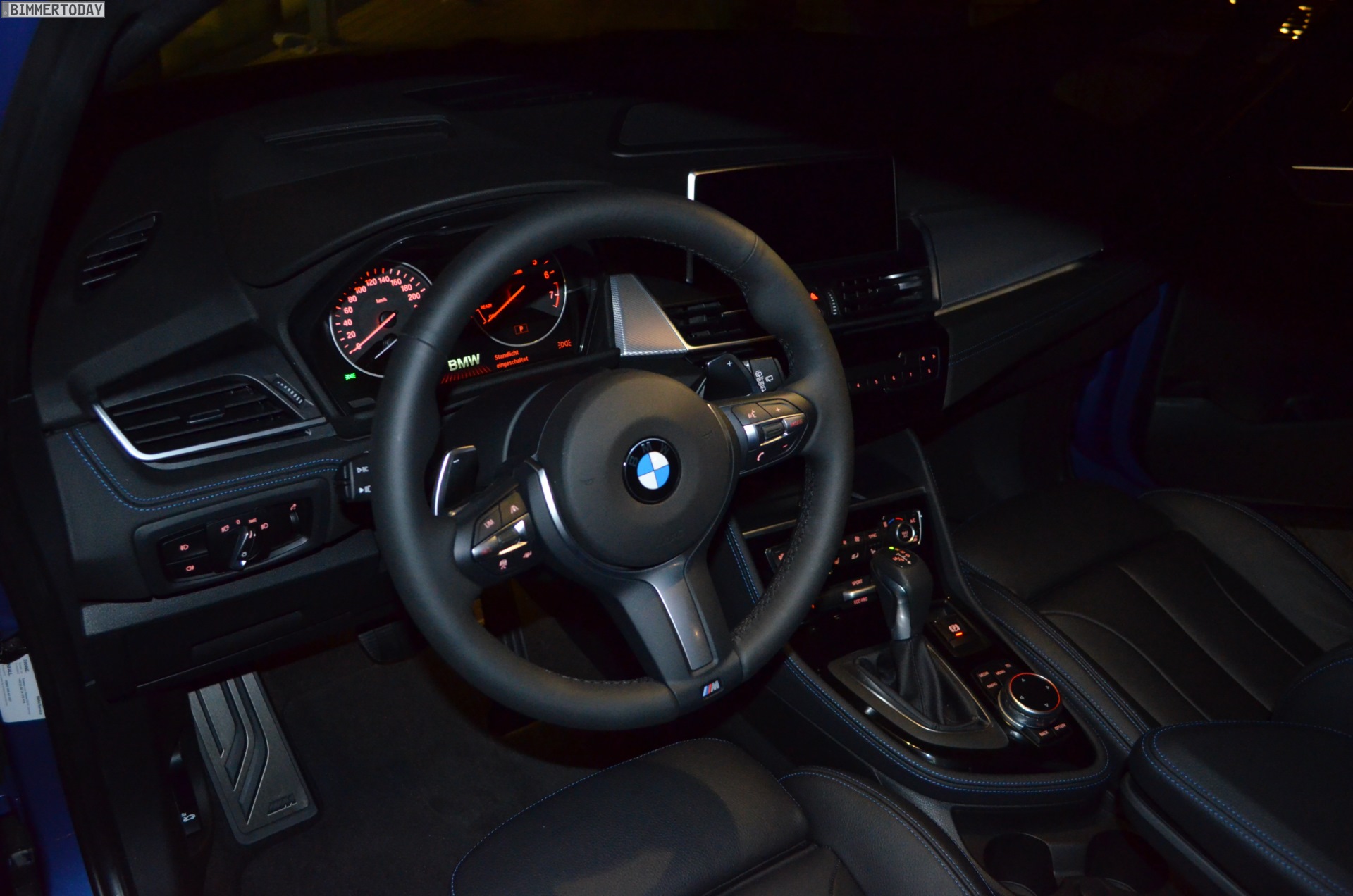 Dank M Sportpaket verfügt der 2er-Van rundum über dynamischer gezeichnete Schürzen sowie passende Seitenschweller und Felgen. Auch im Innenraum sorgt das M Paket für sportlicheres Flair und bringt unter anderem ein filigran gezeichnetes Sportlenkrad, Aluminium Hexagon-Interieurleisten sowie Sportsitze mit Alcantara-Bezug und blauen Akzenten ins Spiel.