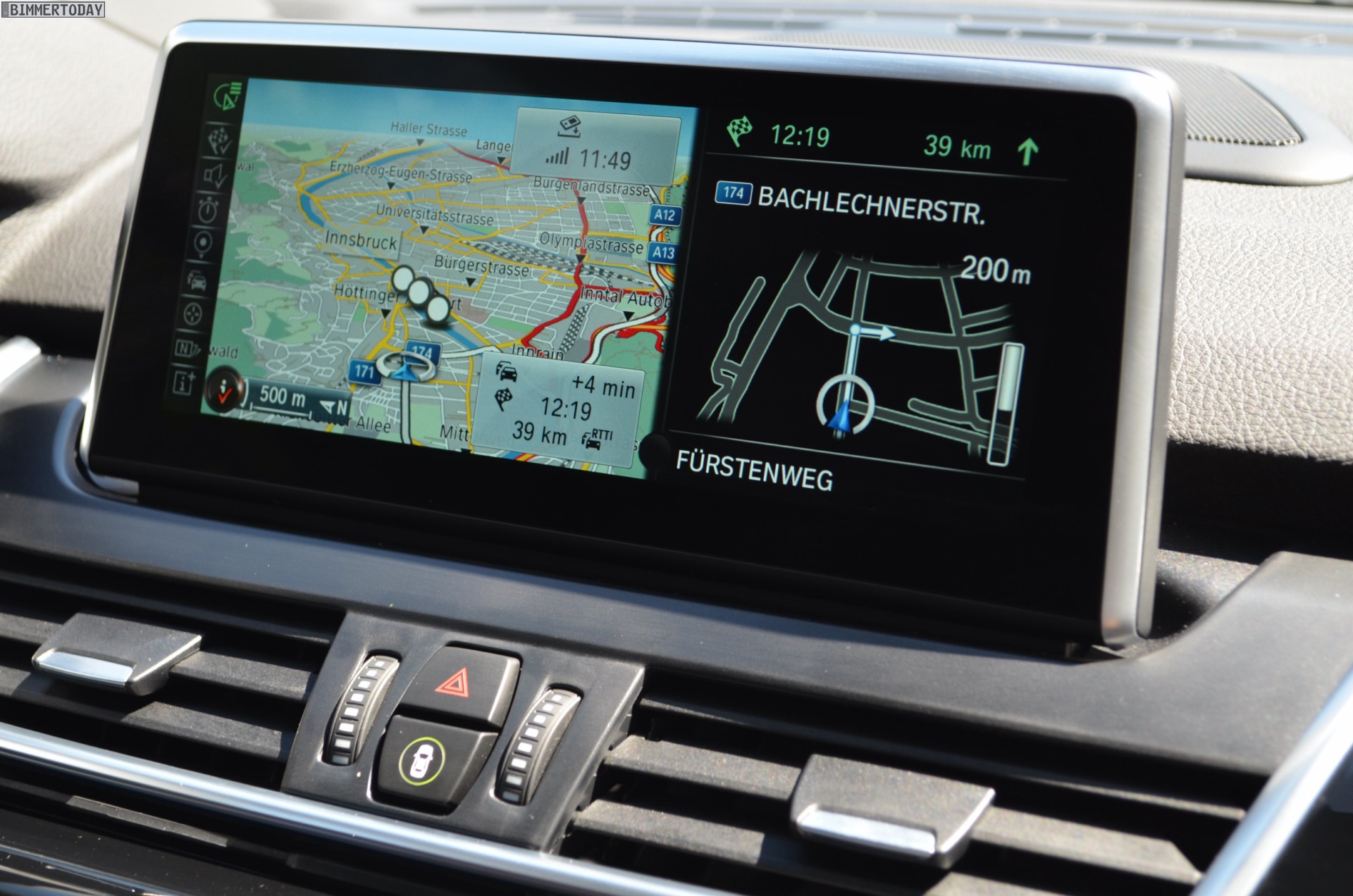Abgesehen von der hohen Sitzposition fühlen sich BMW-Fahrer allerdings sofort heimisch. Tacho, Drehzahlmesser und Lenkrad wirken äußerst vertraut, neben dem Lenkrad thront das 8,8 Zoll große und im Wettbewerbsumfeld konkurrenzlos gute Infotainment-Display, auf dem sich praktisch das komplette BMW ConnectedDrive-Angebot nutzen lässt – angefangen vom uneingeschränkten Internet-Zugang bis hin zum telefonischen Concierge-Service. Mit seiner hohen Auflösung, der hochwertigen Chrom-Umrandung und der intuitiven Bedienung per iDrive Touch-Controller setzt das System Maßstäbe unter den Kompakt-Vans und muss sich auch hinter so manchem Oberklasse-System anderer Hersteller keineswegs verstecken.
